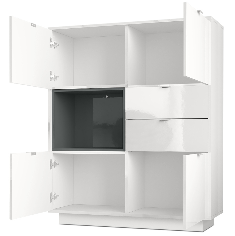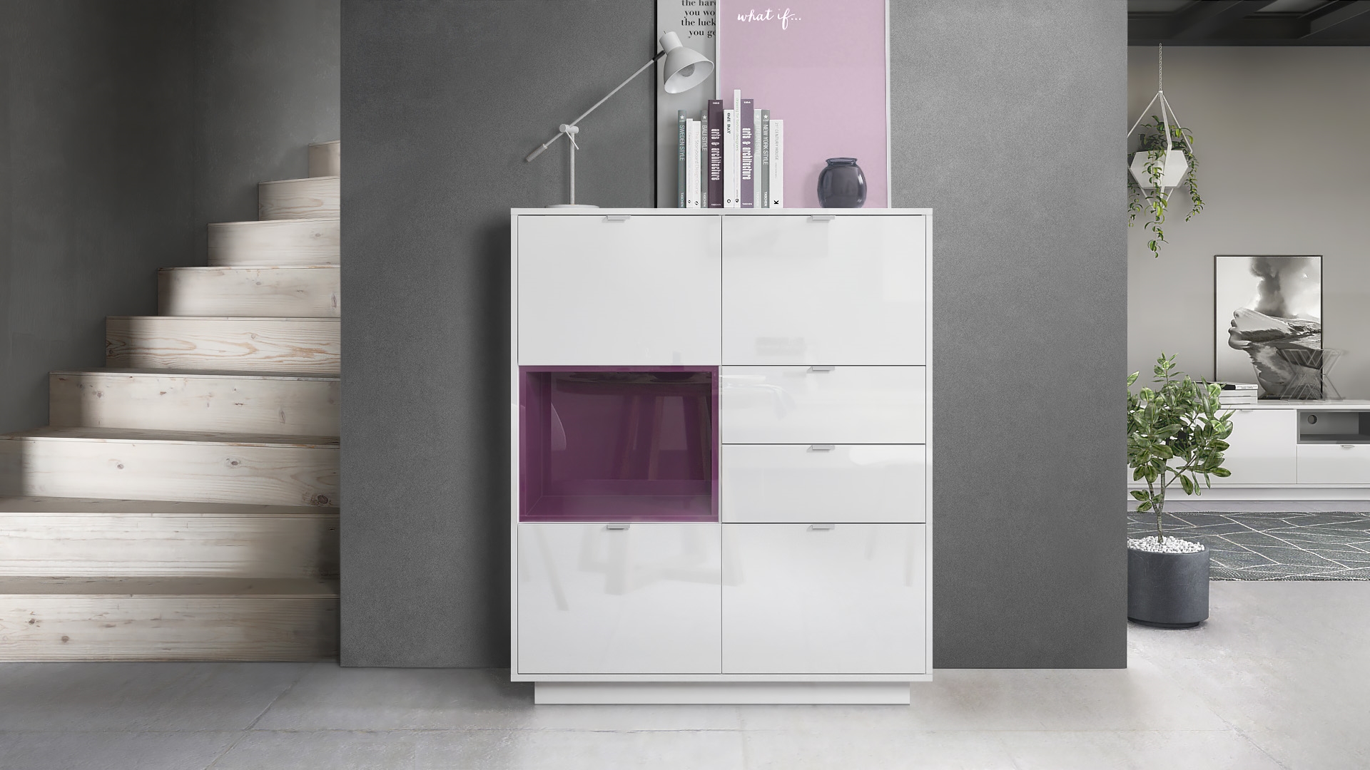 Produktinformationen "Highboard Metro mit 4 Türen, 2 Schubladen und 1 offenem Fach Brombeer Hochglanz (103 x 123 x 37,5 cm)"