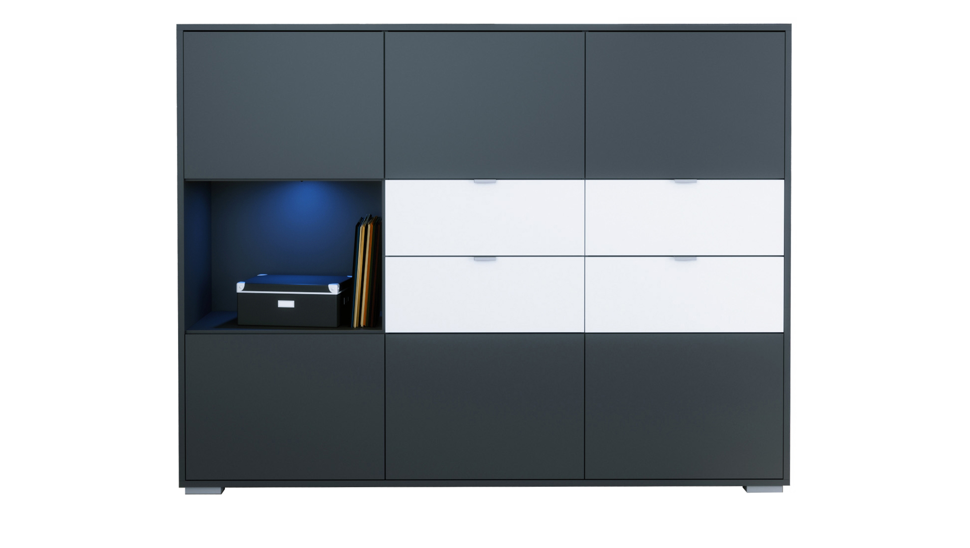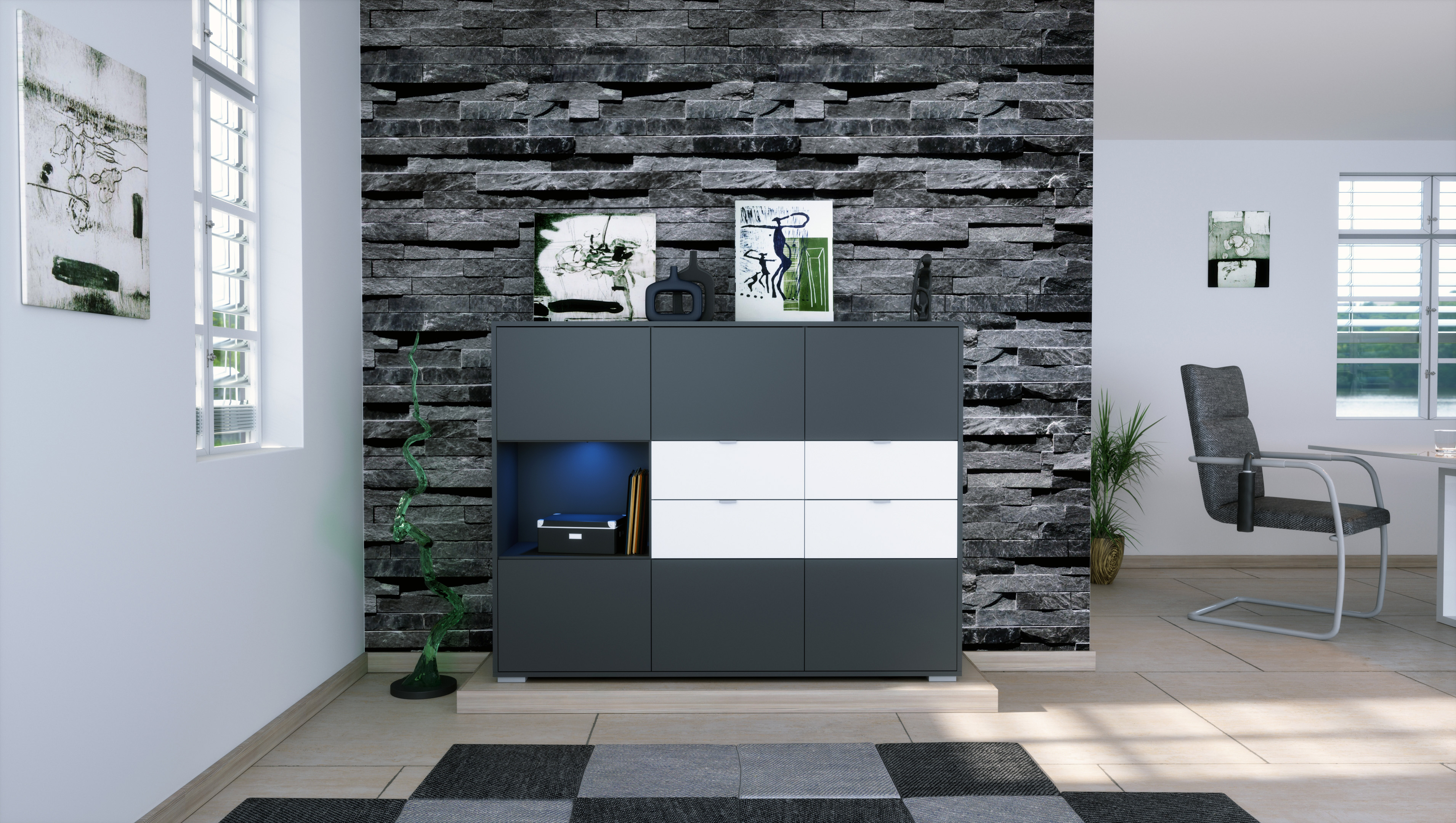 Produktinformationen "Highboard Milano V2 mit LED 4 Schubladen Weiß matt, inkl. LED,Made in Germany Korpus Anthrazit matt (152,5 x 118 x 37 cm) "