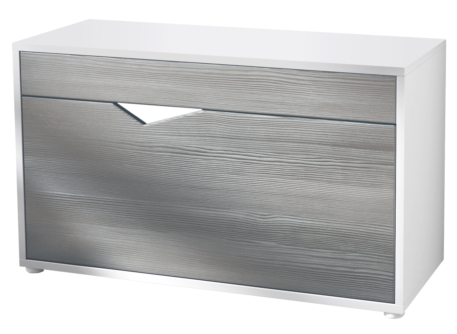 Dank ihres minimalistischen und modernen Designs passt die Kolmio-Schuhbank perfekt in zeitgemäß eingerichtete Wohnungen. Ein besonderes Highlight ist die dreieckige Griffmulde in der Front, die das Öffnen und Schließen der Bank leicht und stilvoll macht.