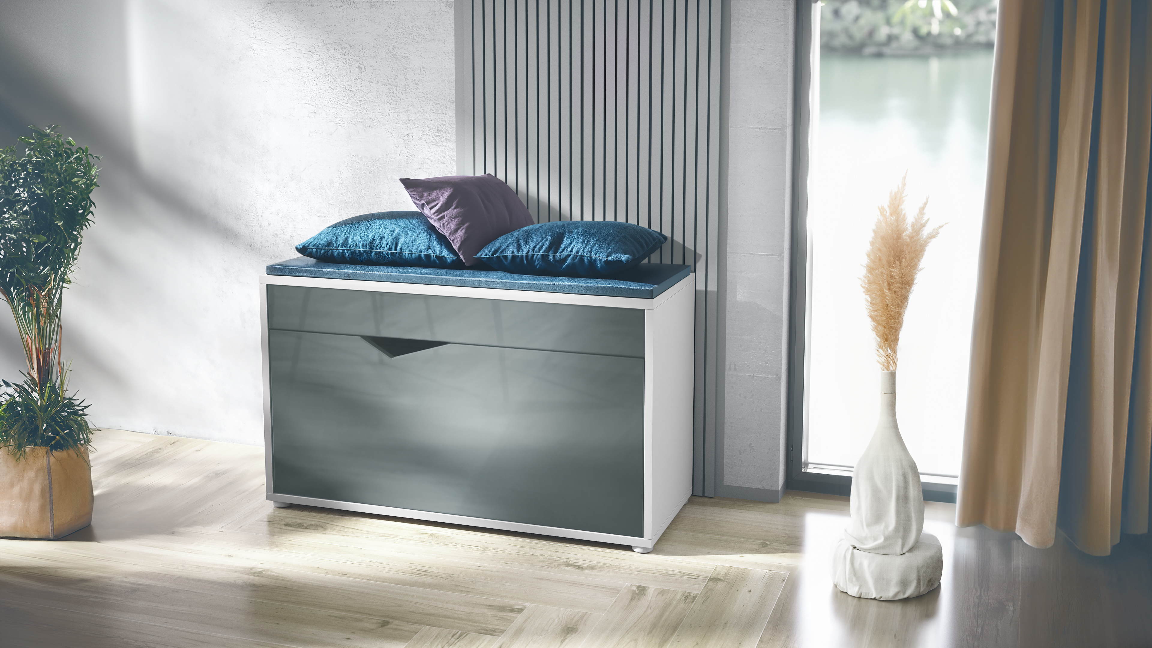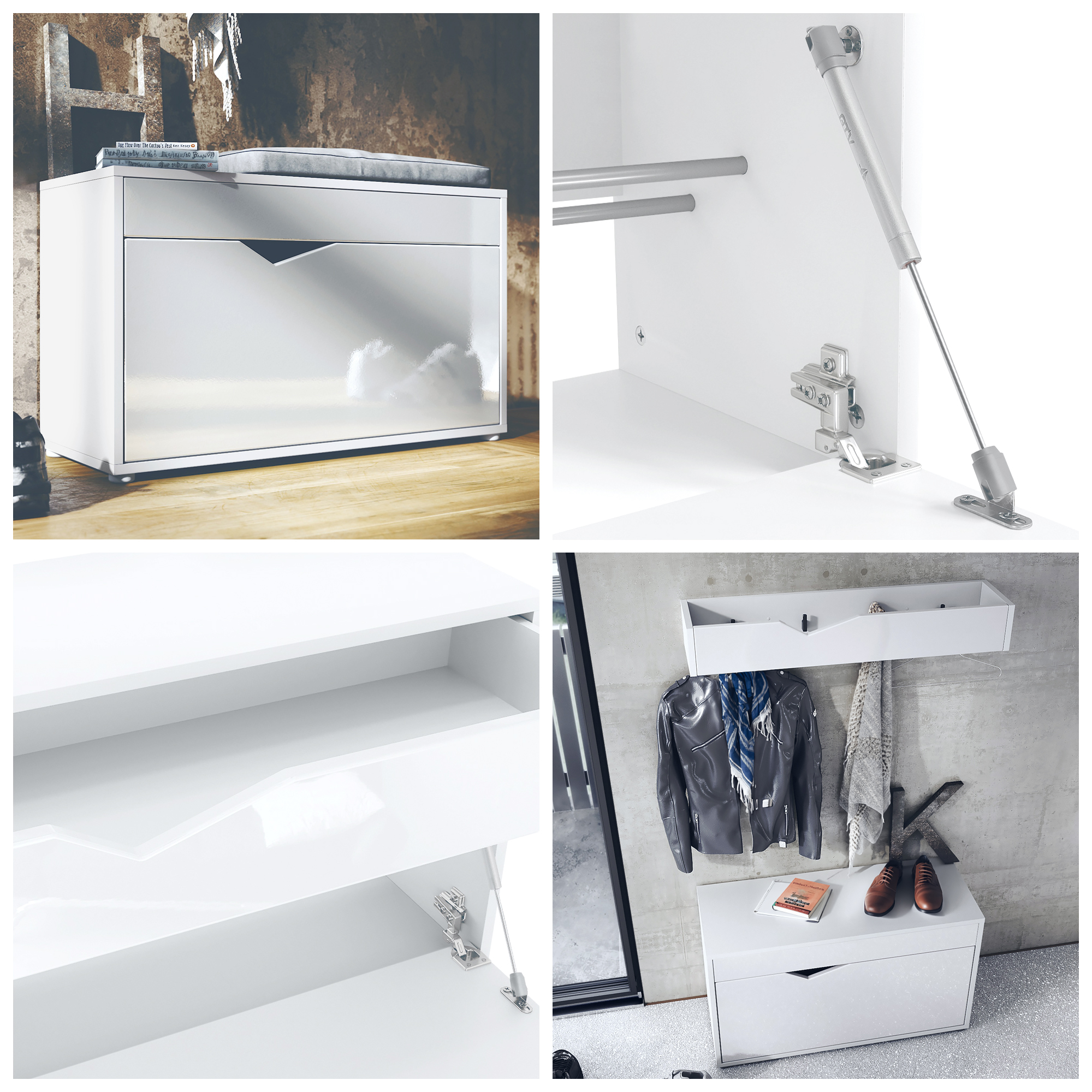 Produktinformationen "Kolmio Sitzbank Weiß für 8 Paar Schuhe mit Sitzfläche Weiß matt/Grau Hochglanz (85 x 50 x 33 cm)"