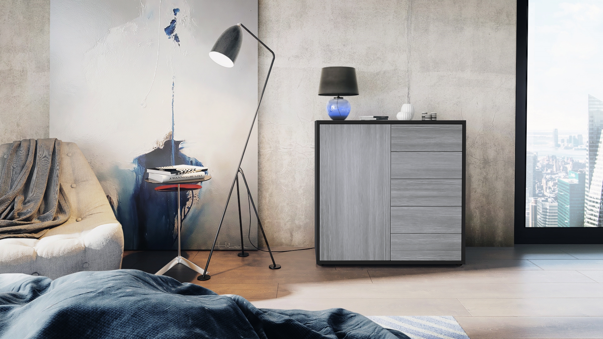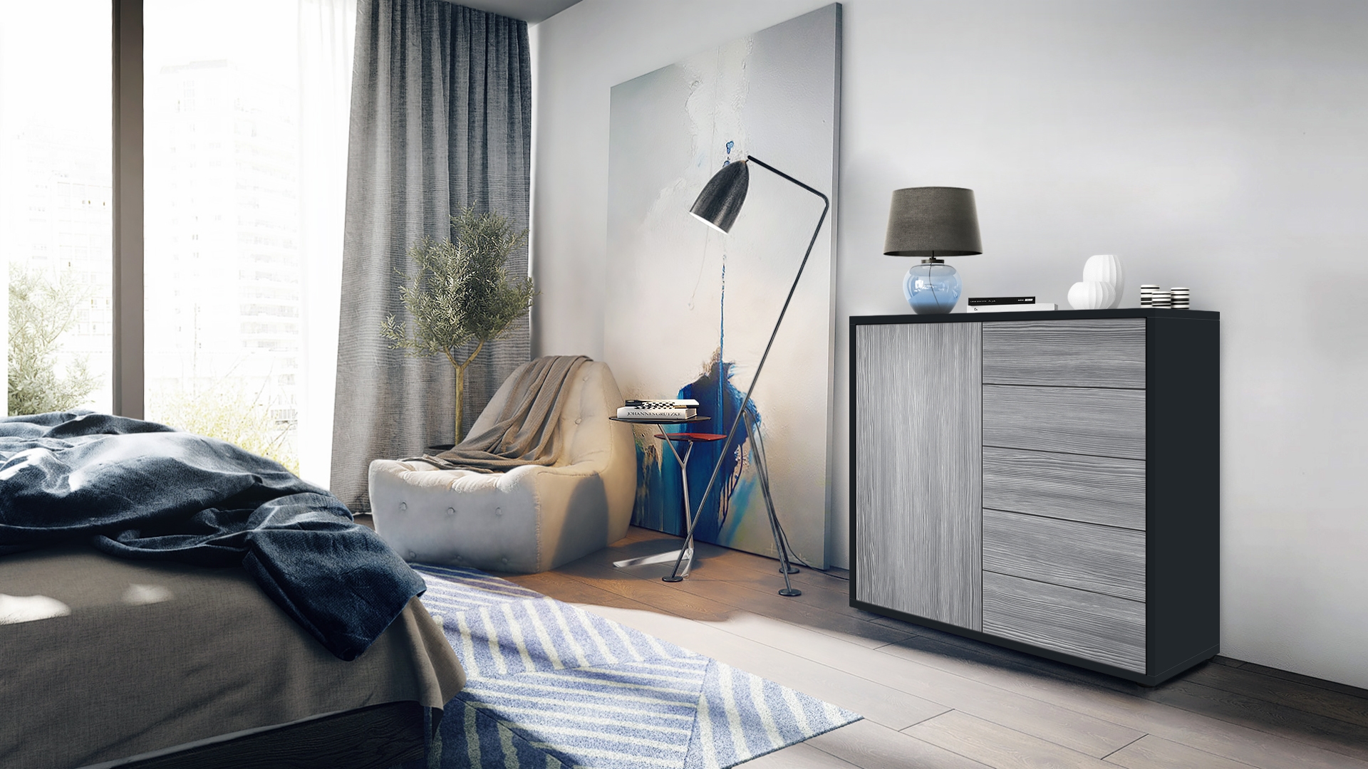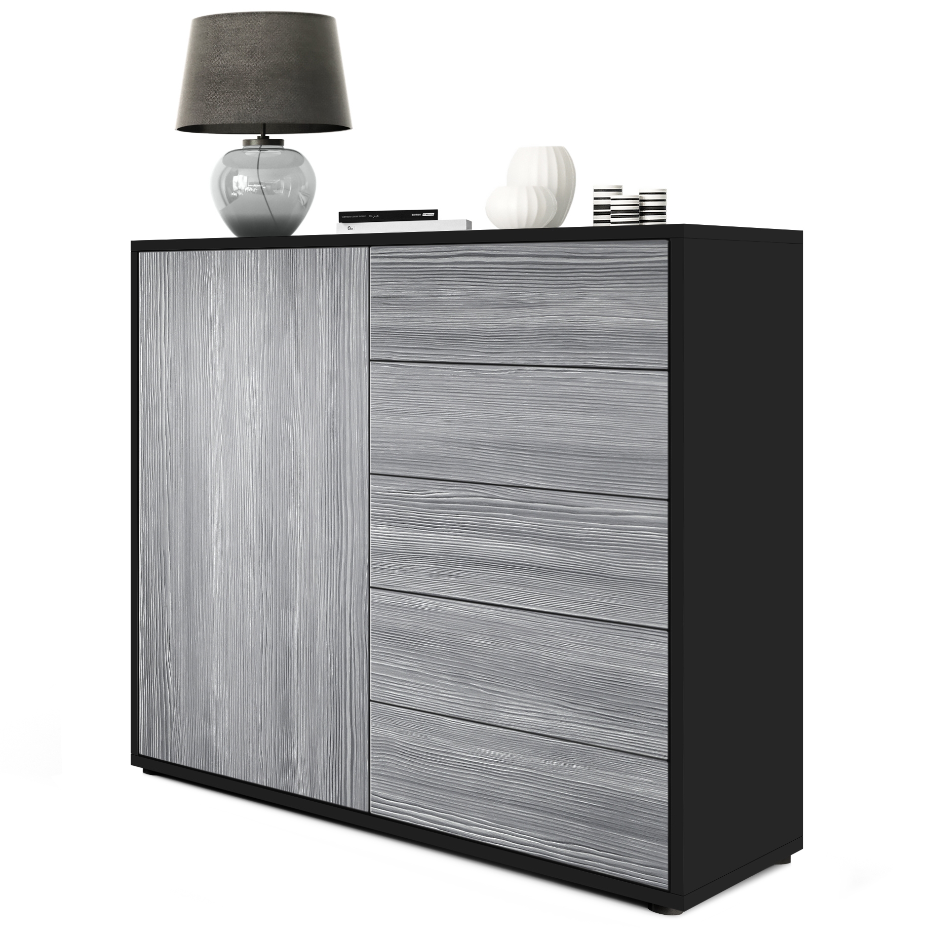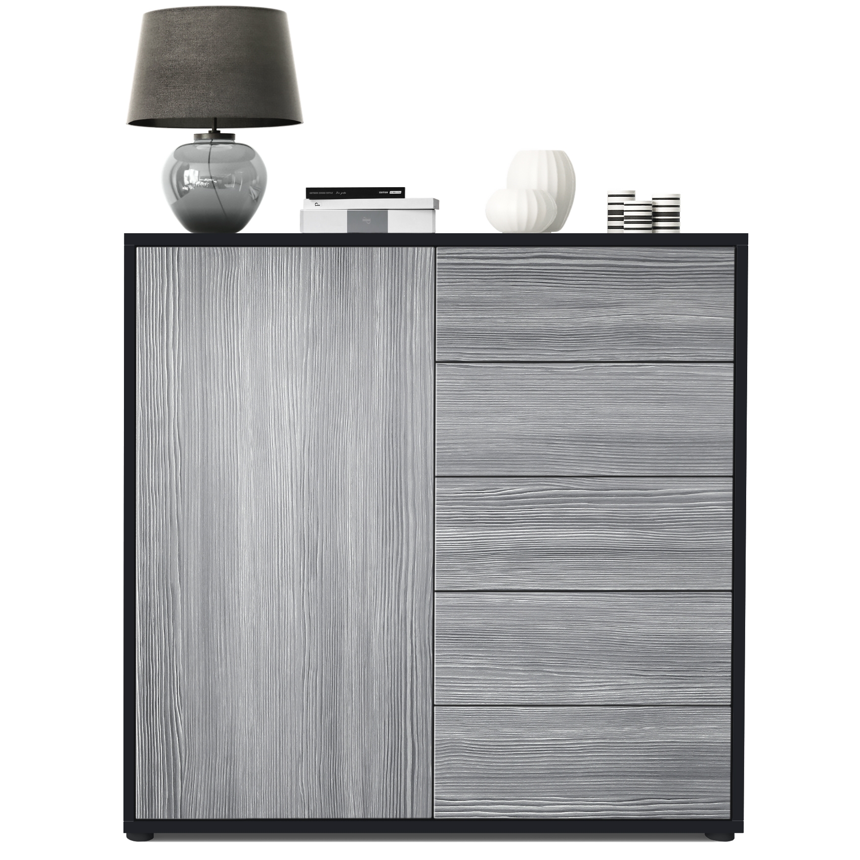 Produktinformationen "Kommode Ben V2 mit 1 Tür und 5 Schubladen Schwarz matt/Avola-Anthrazit (79 x 74 x 36 cm)"