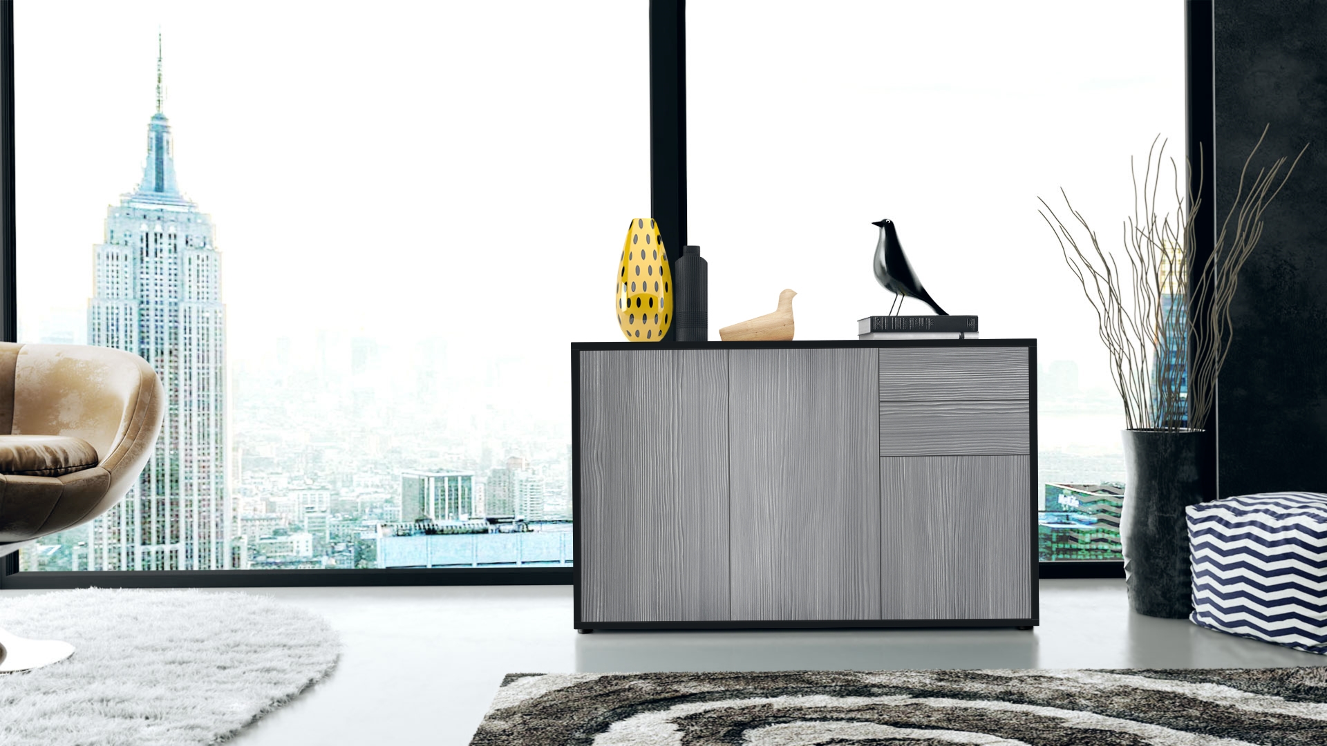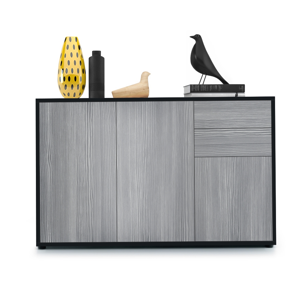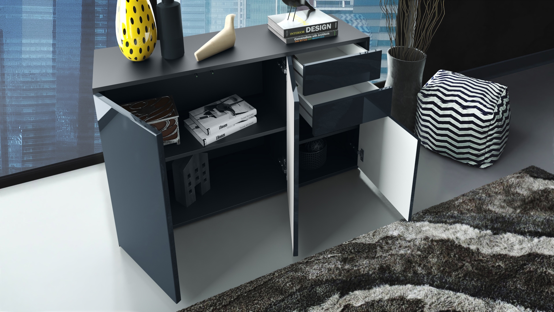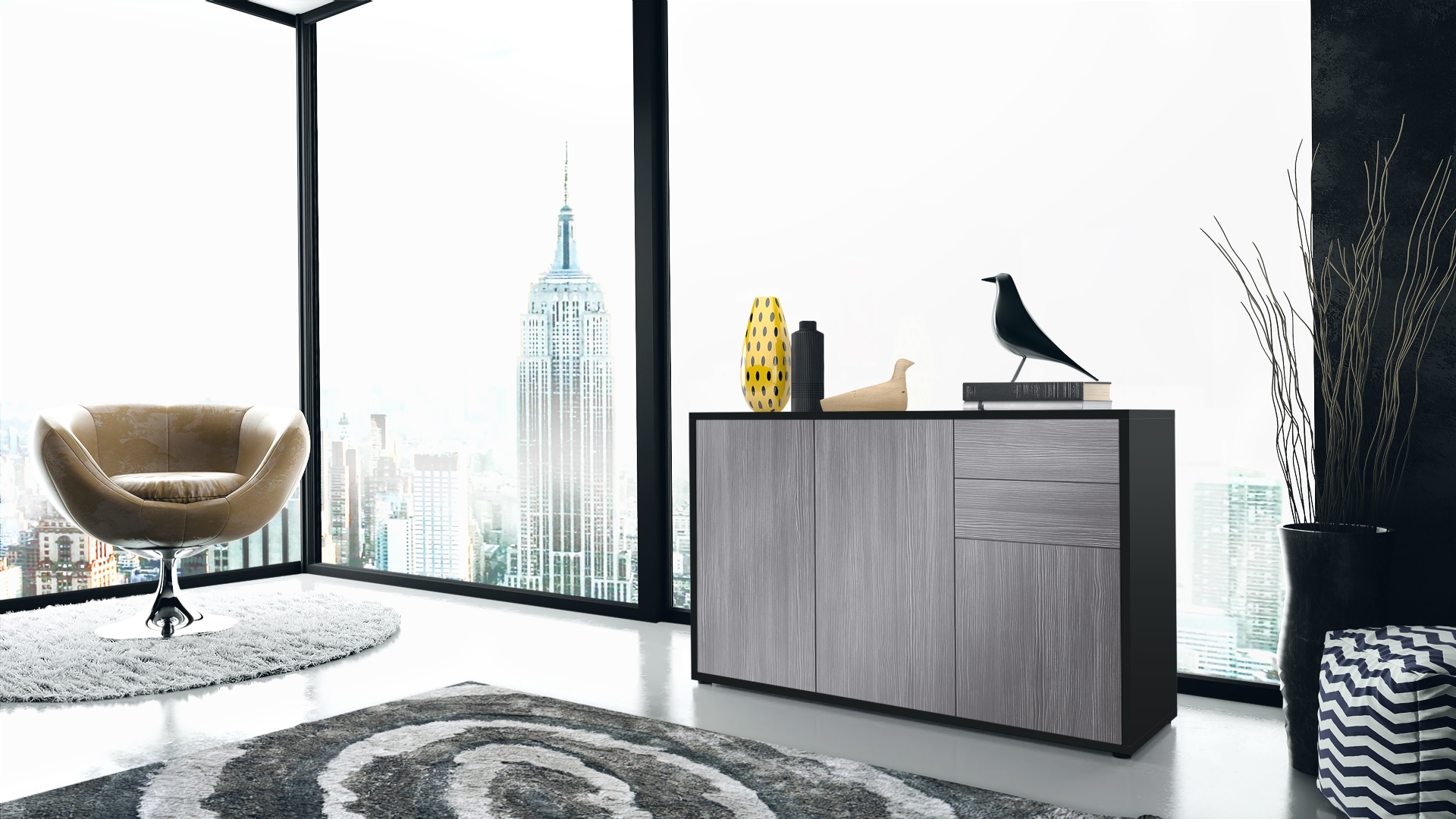 Produktinformationen "Kommode Ben V3 mit 3 Türen und 2 Schubladen Schwarz matt/Avola-Anthrazit (117 x 74 x 36 cm)"