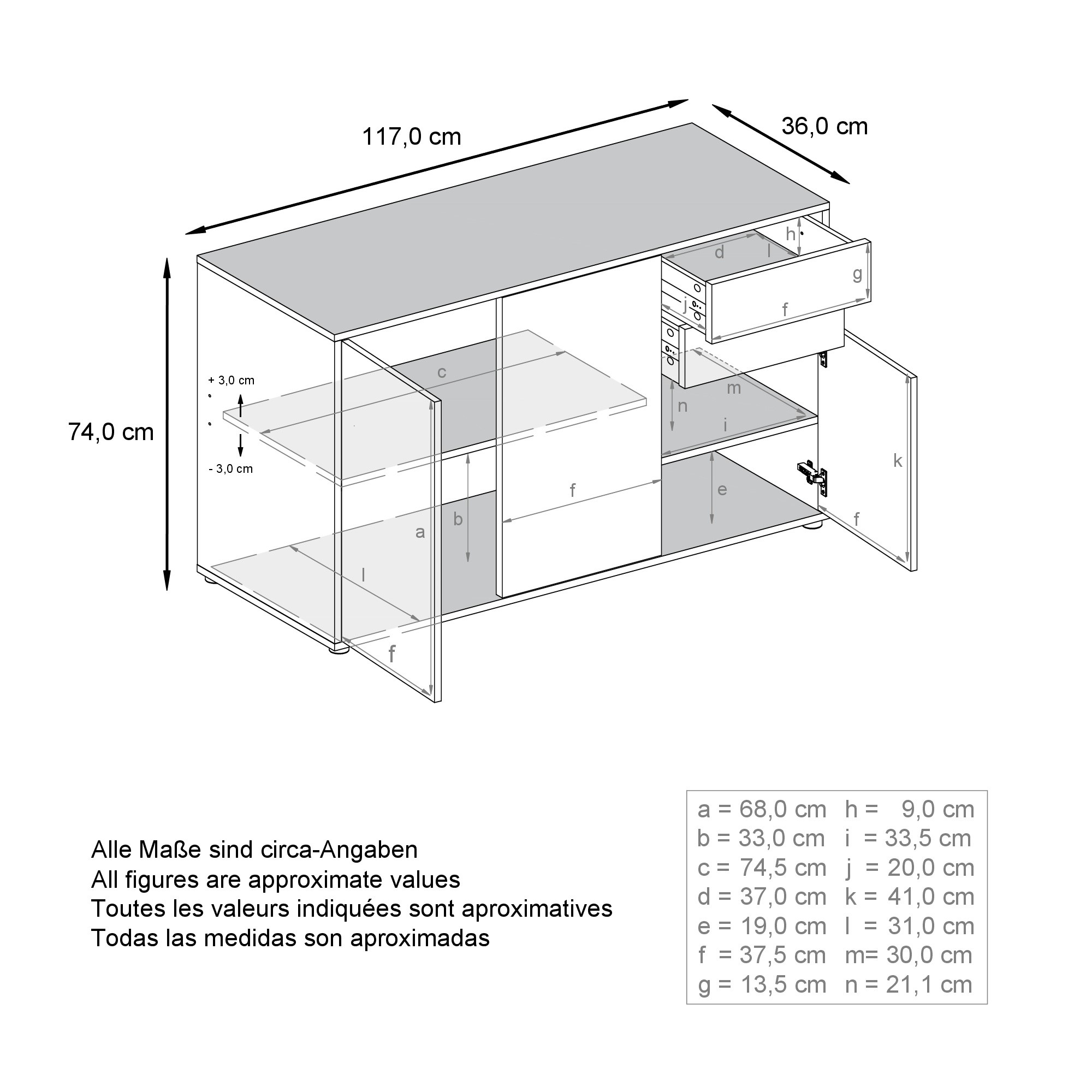 Kommode (BxHxT): 117 x 74 x 36 cm