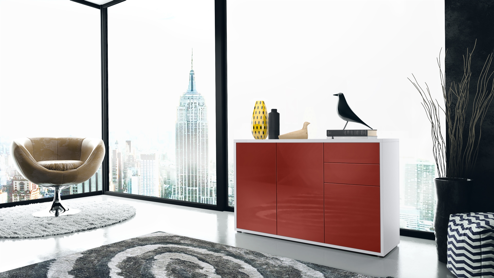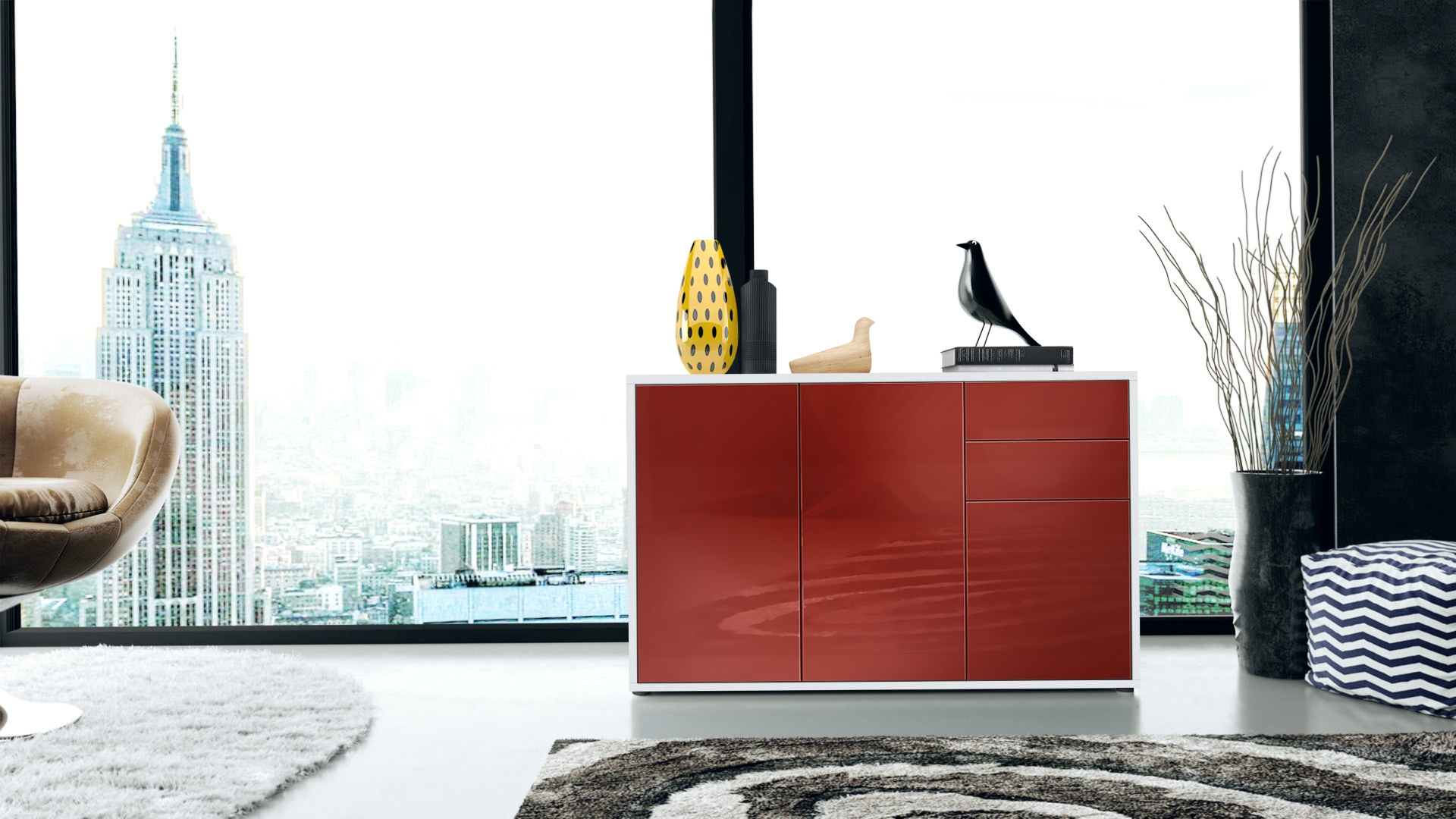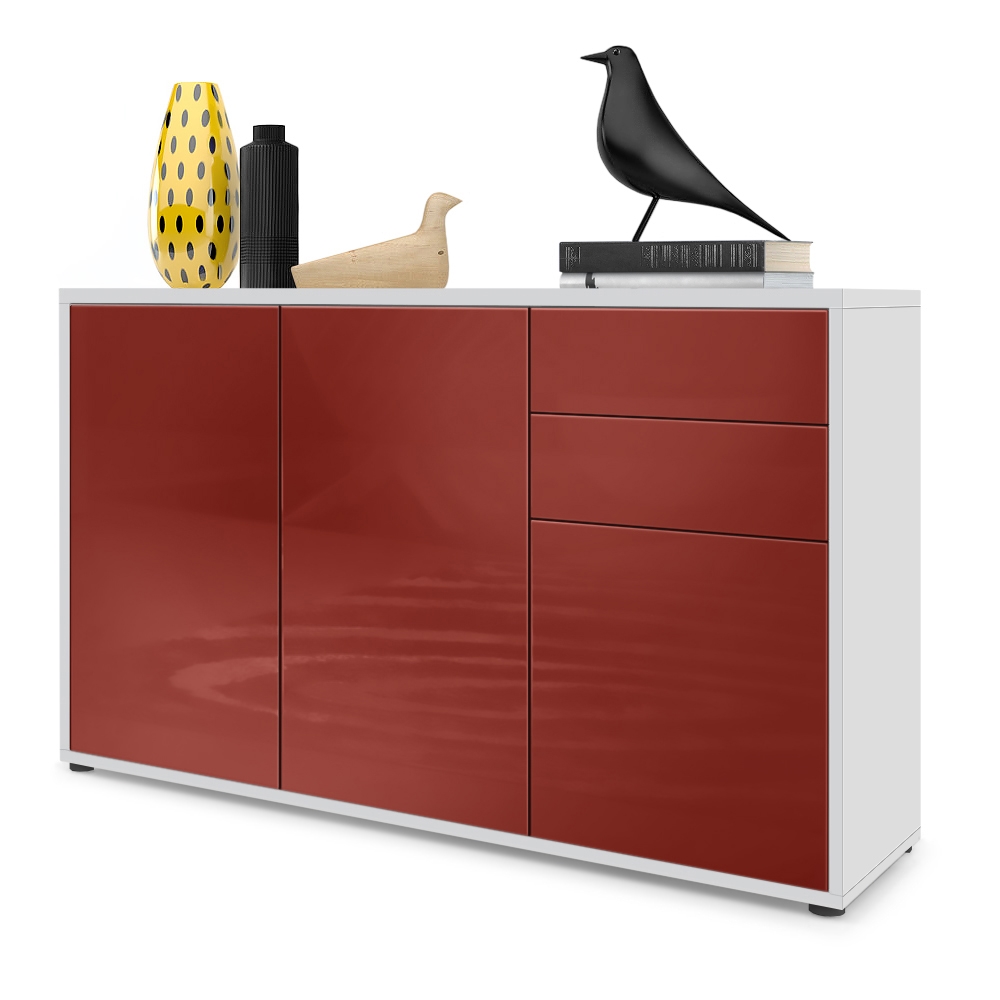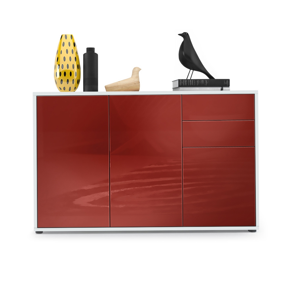 Produktinformationen "Kommode Ben V3 mit 3 Türen und 2 Schubladen Weiß matt/Bordeaux Hochglanz (117 x 74 x 36 cm)"