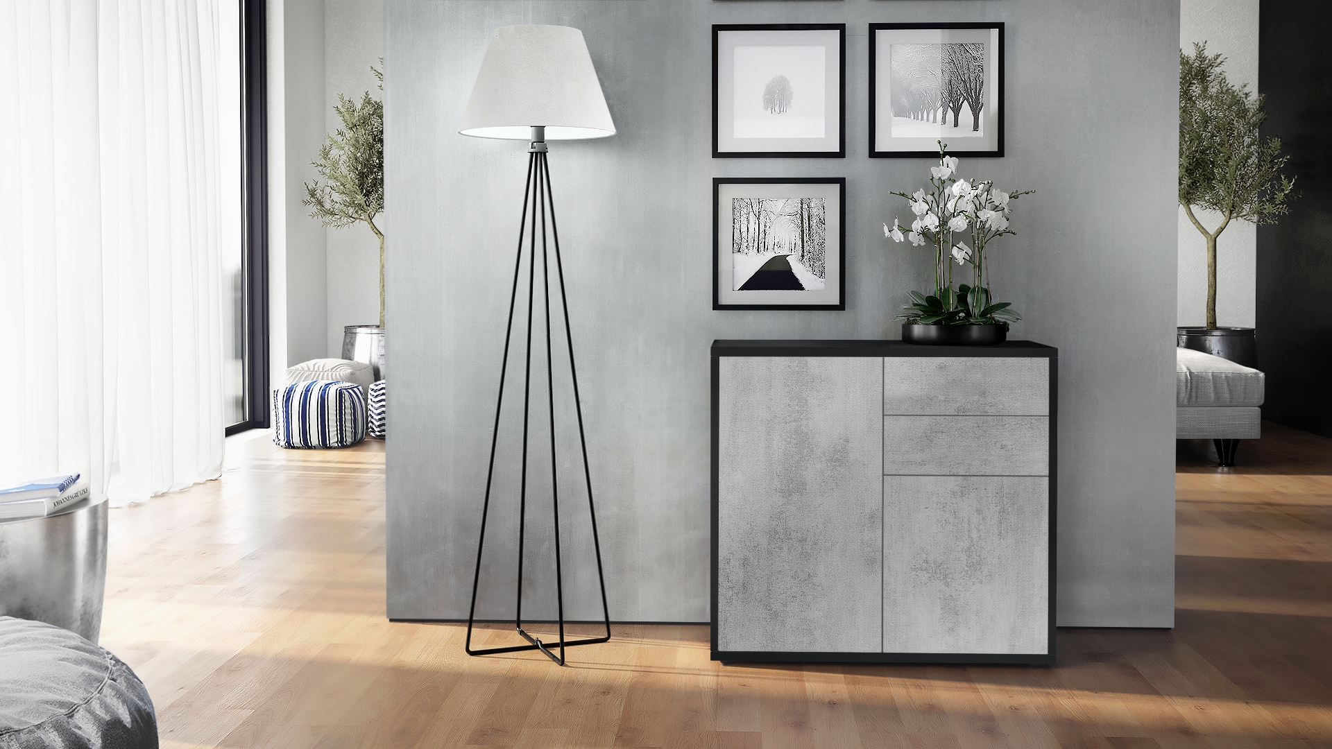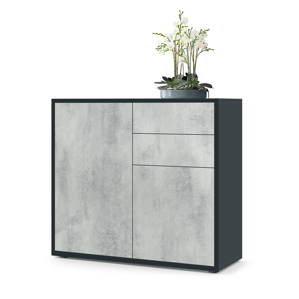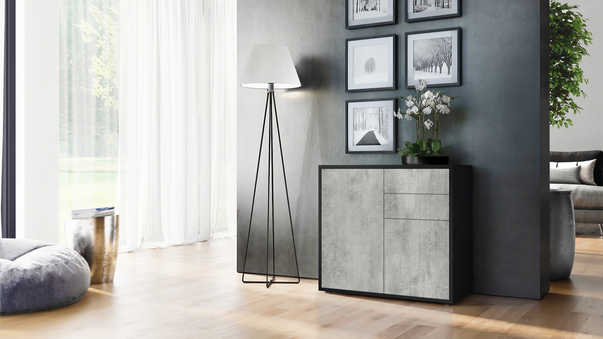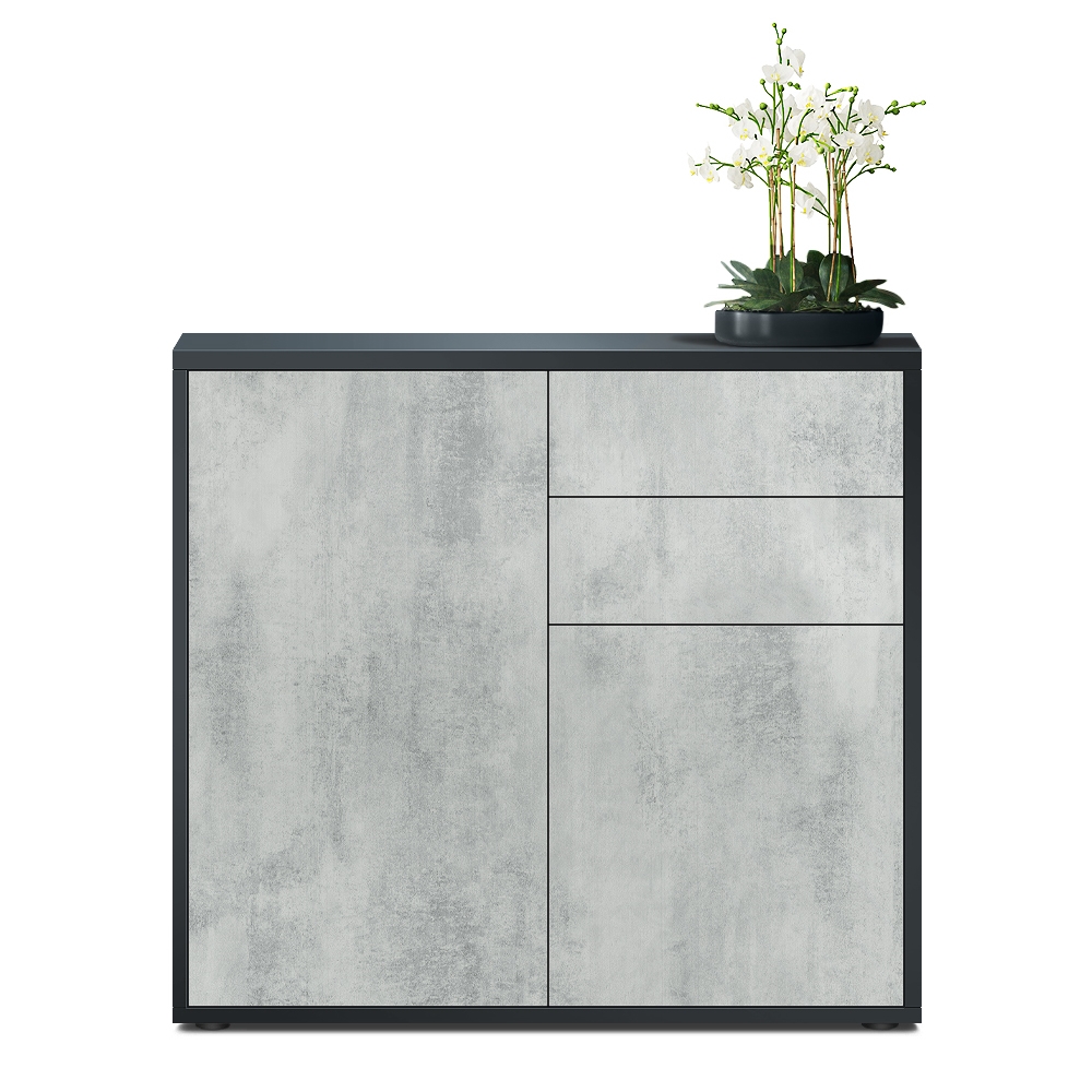 Produktinformationen "Kommode Ben mit 2 Türen und 2 Schubladen Schwarz matt/Beton Oxid-Optik (79 x 74 x 36 cm)"