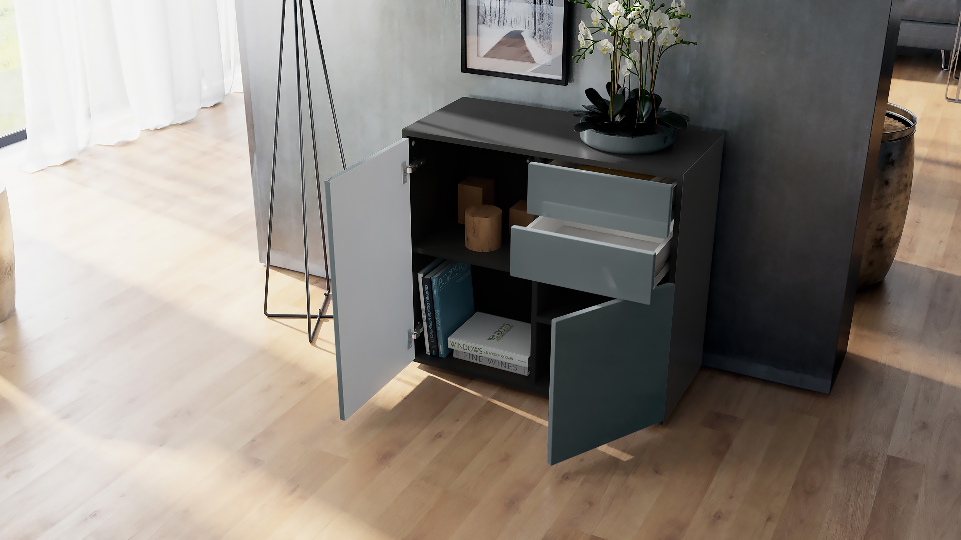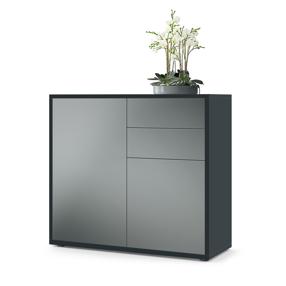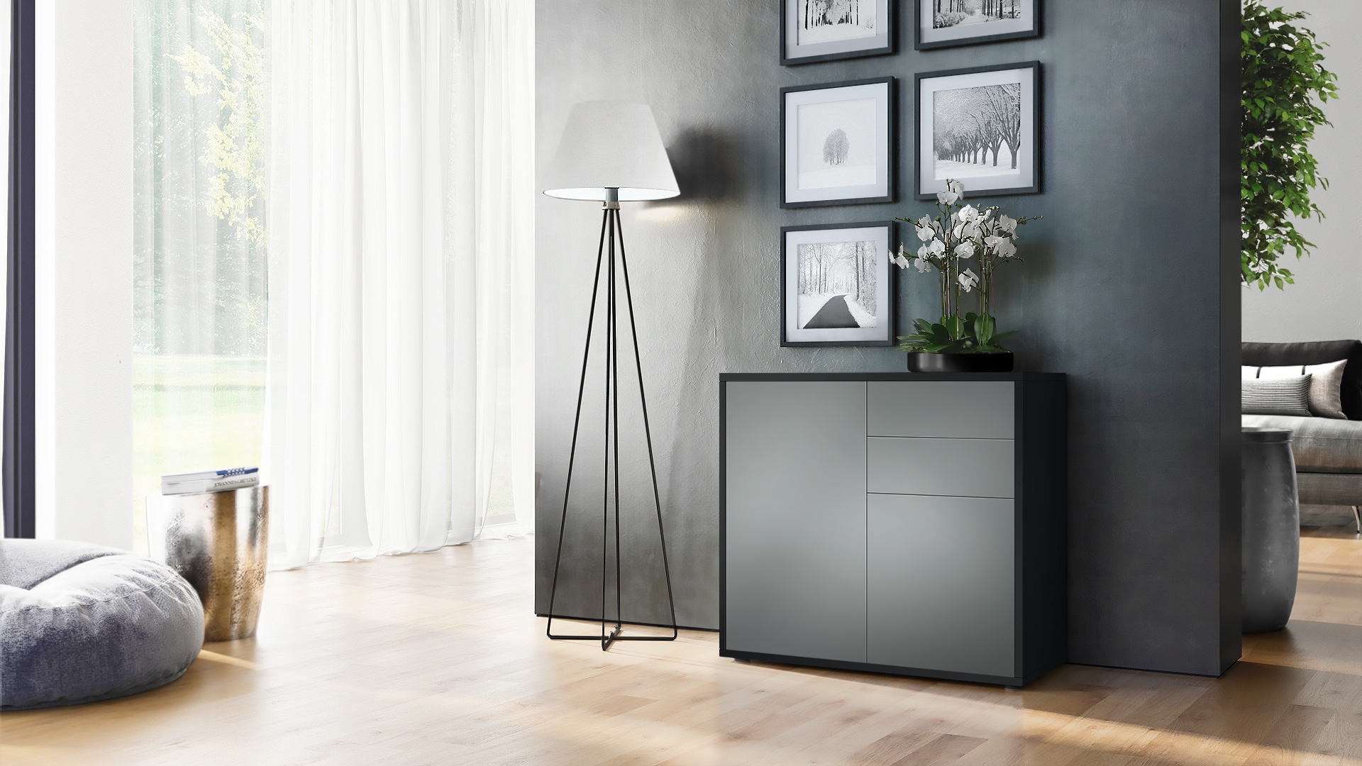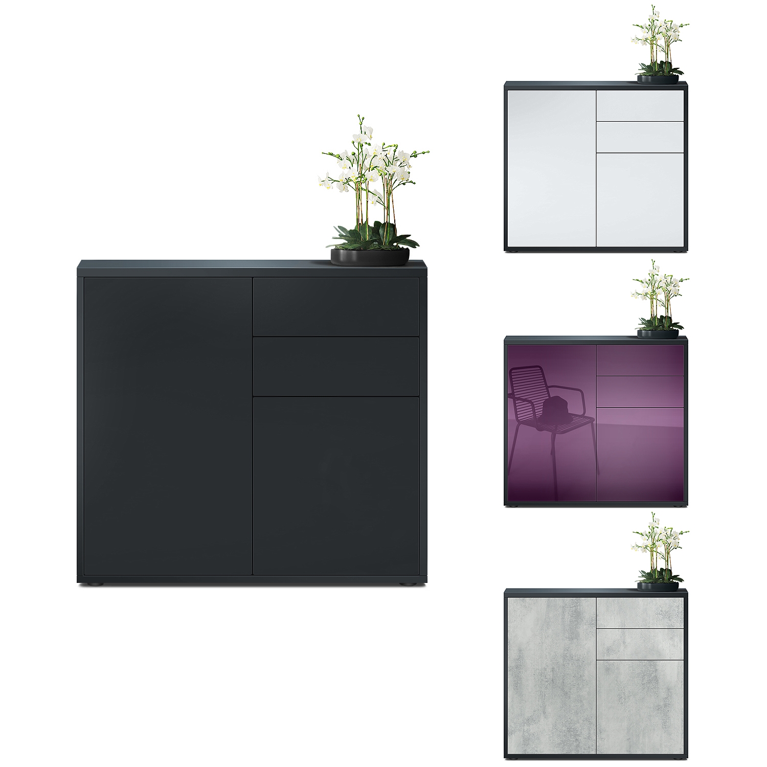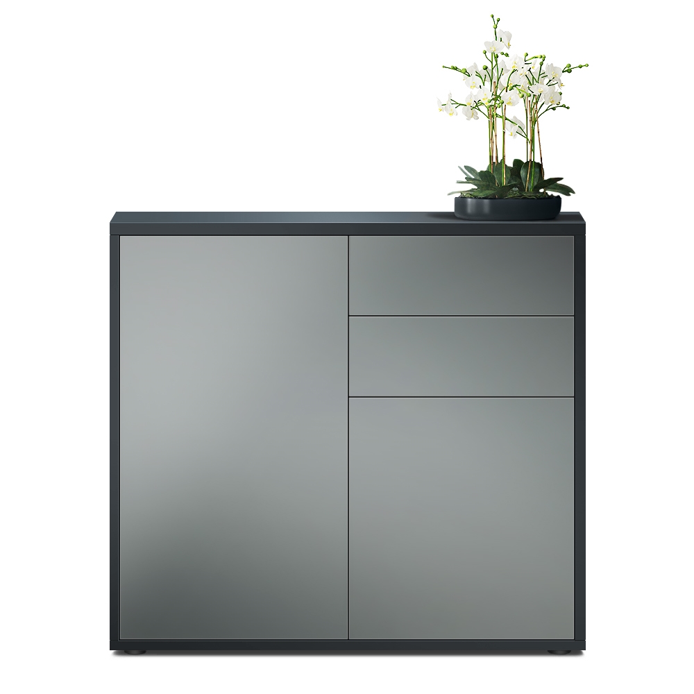 Produktinformationen "Kommode Ben mit 2 Türen und 2 Schubladen Schwarz matt/Graphit Seidenmatt (79 x 74 x 36 cm)"