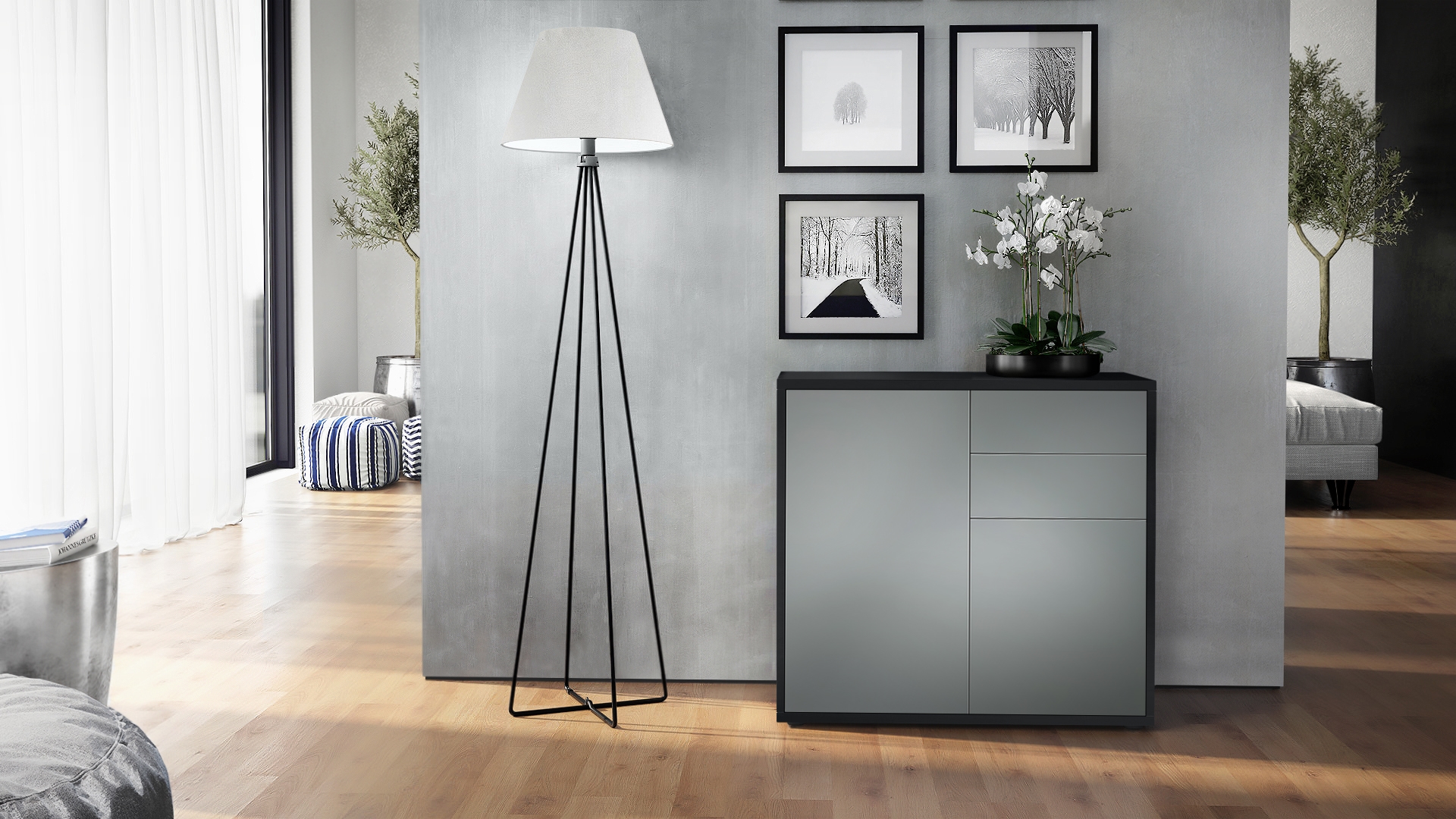 Durch das schlichte, moderne Design lässt sich die Kommode mit vielen verschiedenen Einrichtungsstilen kombinieren und sowohl als Wohnzimmerschrank, Kommode im Schlafzimmer oder als TV-Sideboard einsetzen. Für eine besondere Eleganz sorgen die Fronten der Türen- und Schubladenkommode, erhältlich in vielen verschiedenen Farbvarianten, die Ihnen eine Vielzahl an Kombinationsmöglichkeiten bieten. Durch die Oberflächenbeschichtung erhalten Sie ein besonders pflegeleichtes Produkt. Für die Reinigung können Sie auf Chemie verzichten - es reicht ein leicht angefeuchtetes Tuch, um die wasserfeste Oberfläche angemessen zu reinigen.