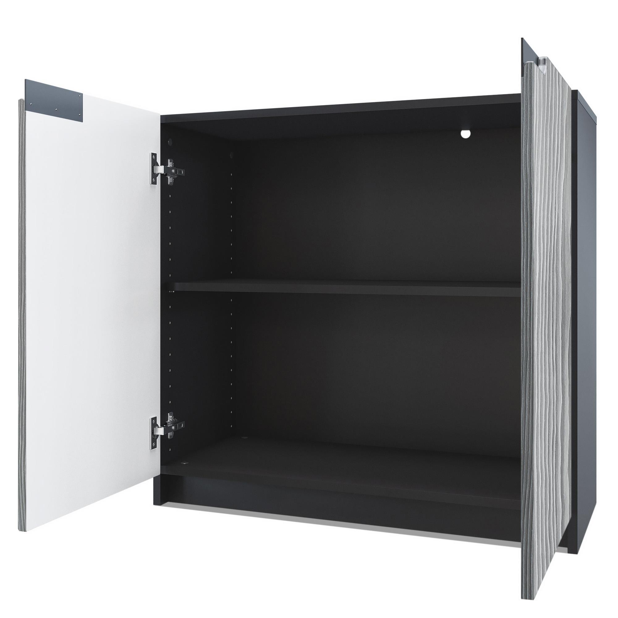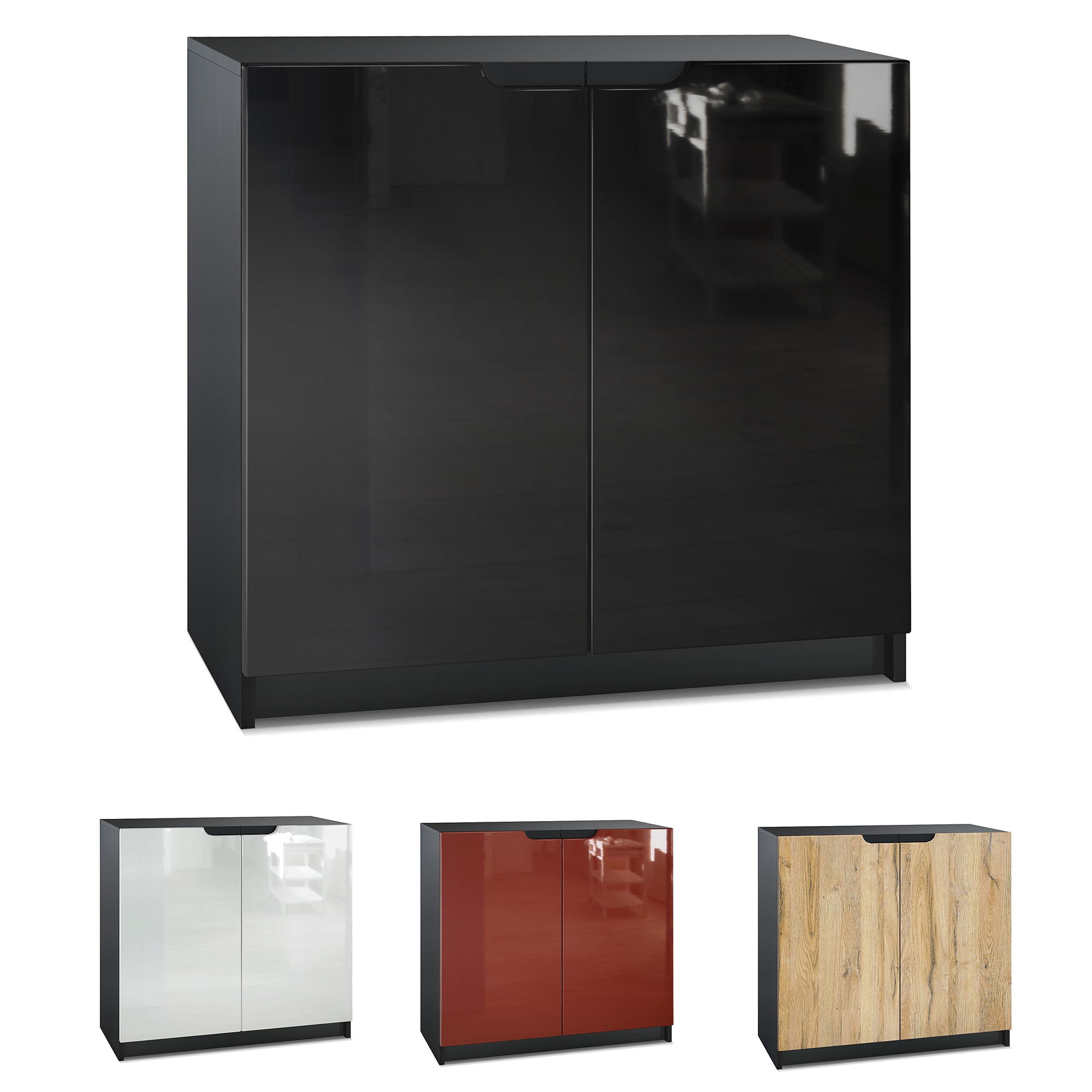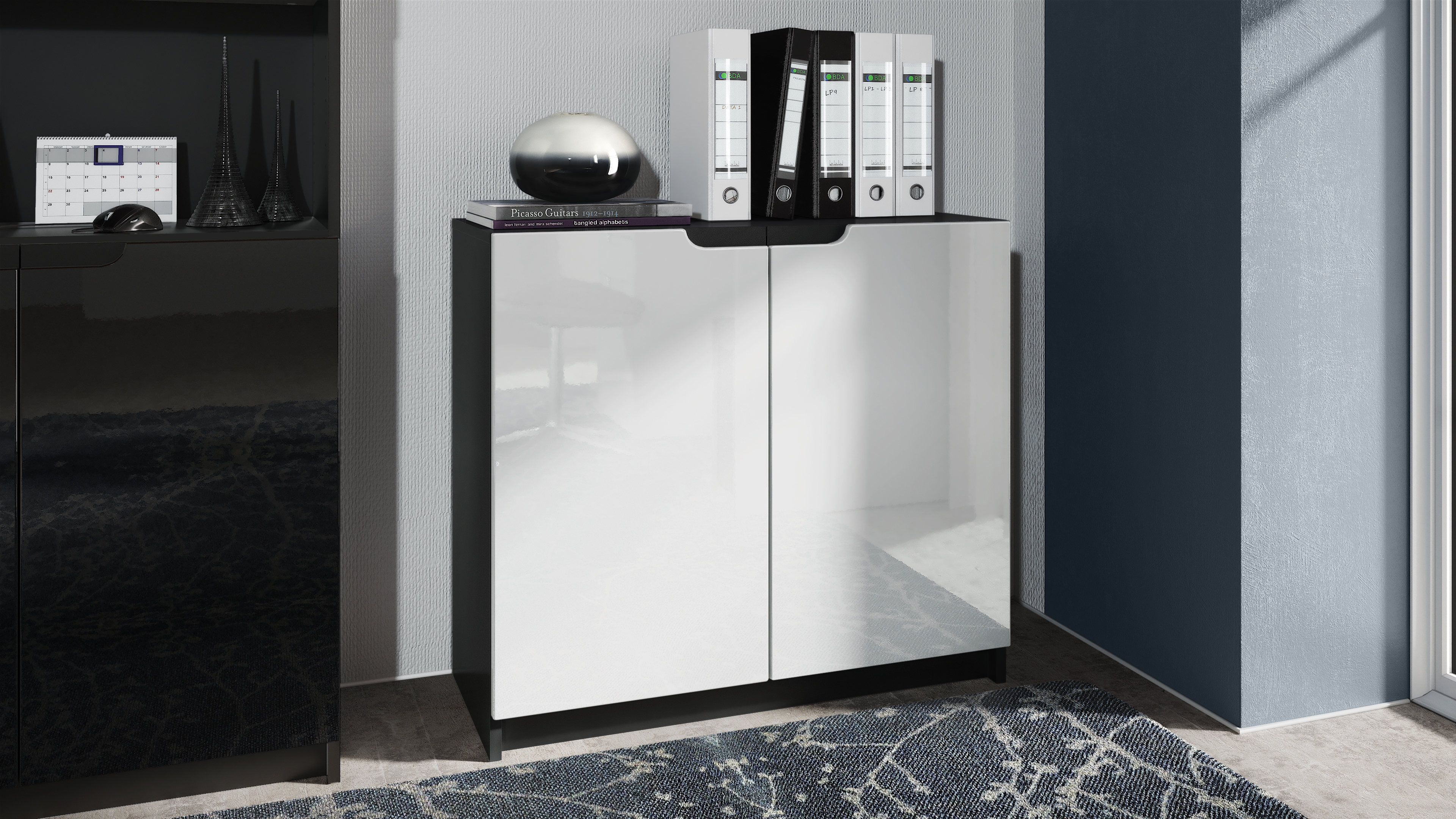 Produktinformationen "Kommode Logan mit 2 Türen Schwarz matt/Weiß Hochglanz (82 x 78 x 37 cm)"
