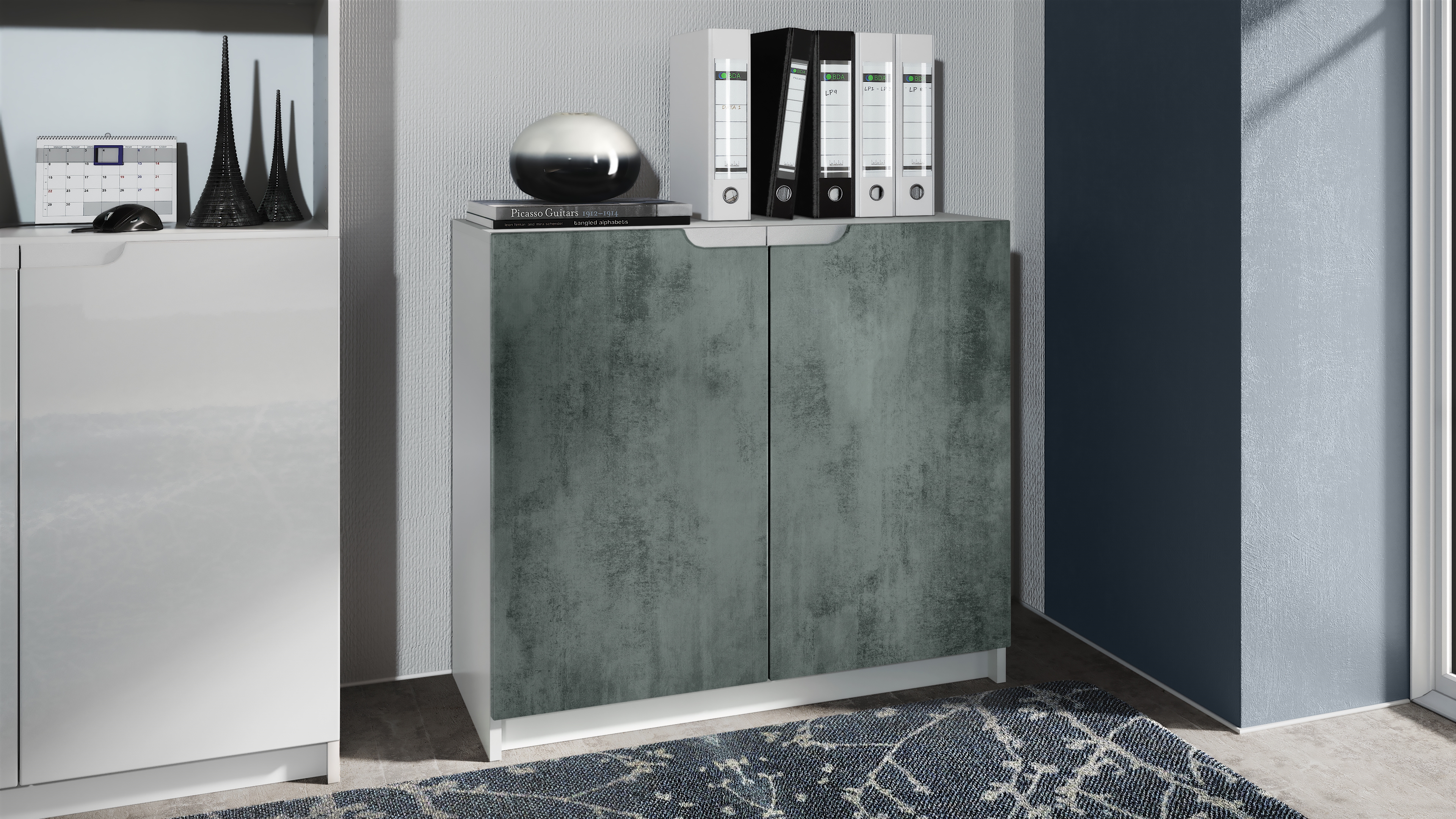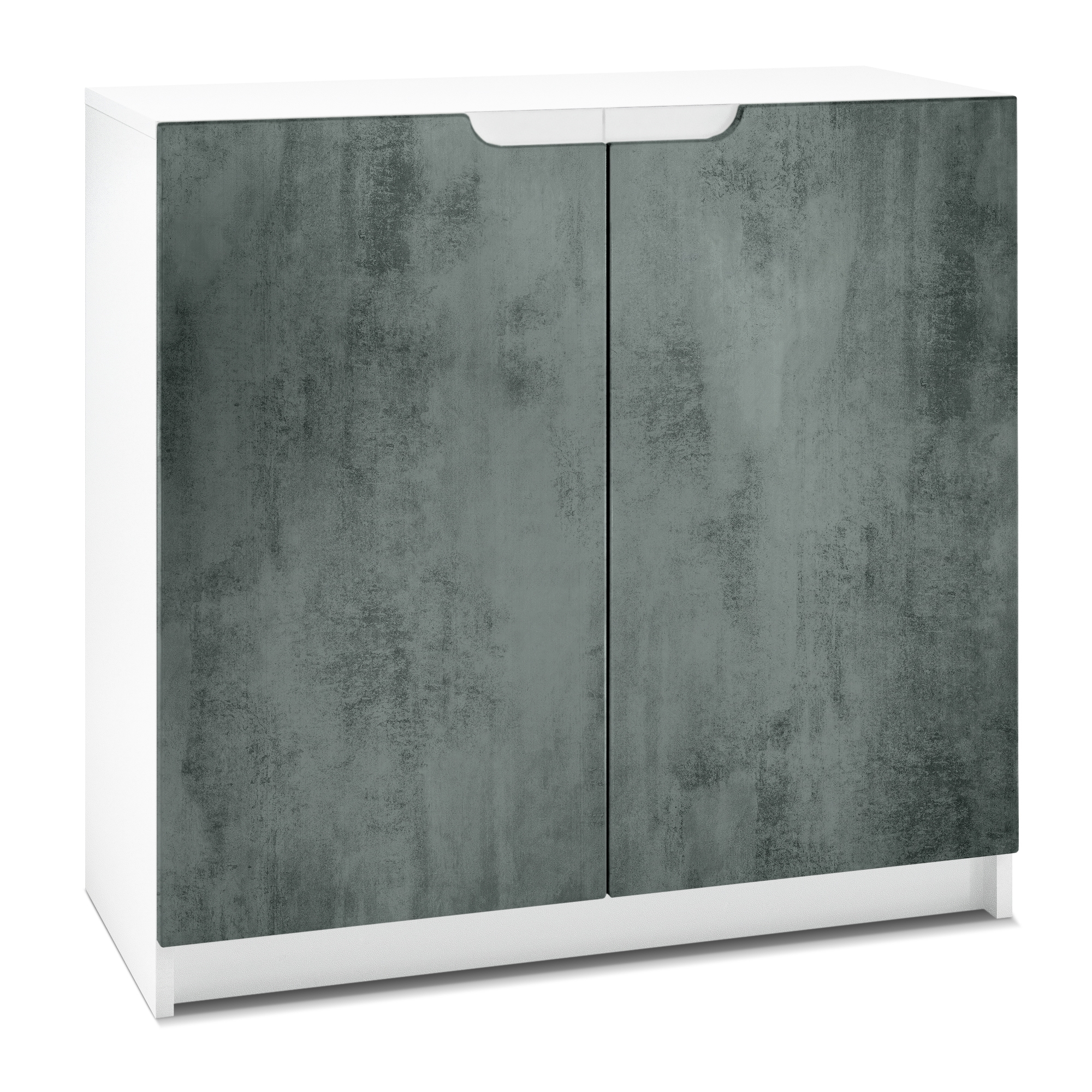 Produktinformationen "Kommode Logan mit 2 Türen Weiß matt/Beton dunkel Optik (82 x 78 x 37 cm)"