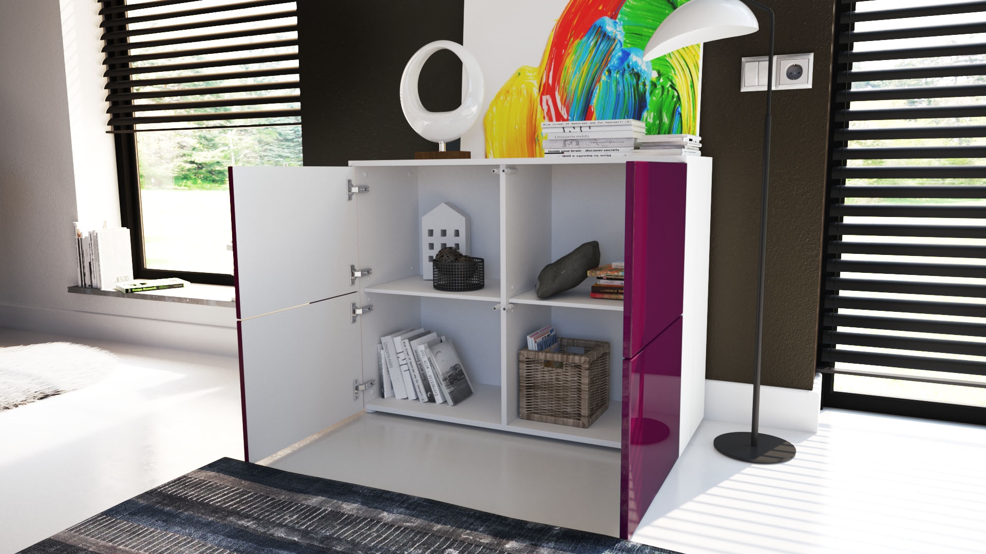 Durch das schlichte, moderne Design lässt sich die Kommode mit vielen verschiedenen Einrichtungsstilen kombinieren und sowohl als Wohnzimmerschrank, Kommode im Schlafzimmer oder als TV-Sideboard einsetzen. Für eine besondere Eleganz sorgen die Fronten der Kommode, erhältlich in vielen verschiedenen Farbvarianten, die Ihnen eine Vielzahl an Kombinationsmöglichkeiten bieten. Durch die Oberflächenbeschichtung erhalten Sie ein besonders pflegeleichtes Produkt. Für die Reinigung können Sie auf Chemie verzichten - es reicht ein leicht angefeuchtetes Tuch, um die wasserfeste Oberfläche angemessen zu reinigen.