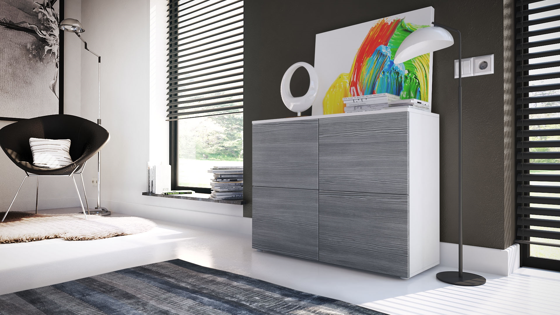 Produktinformationen "Kommode Rova mit 4 Türen Weiß matt/Avola-Antrazit (92 x 72 x 35 cm)"