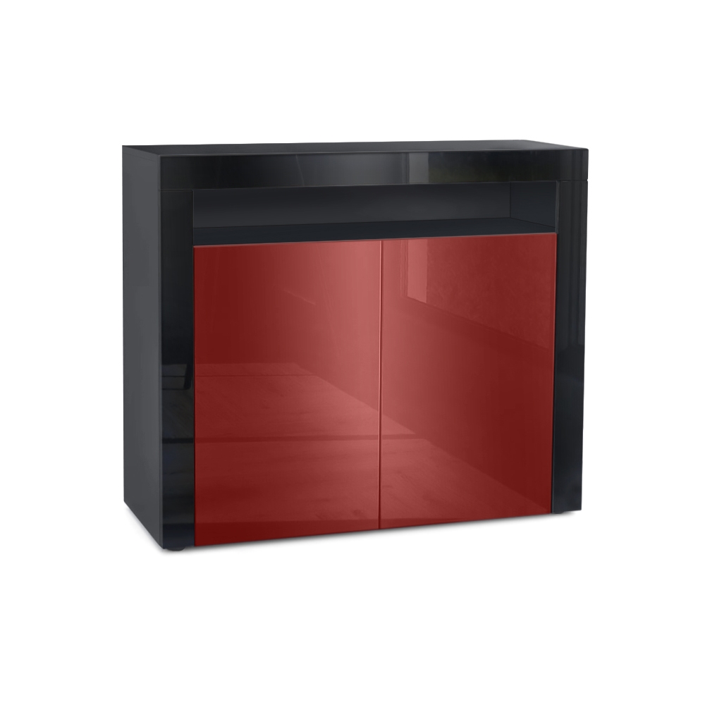 Produktinformationen "Kommode Valencia Sideboard mit 2 Türen und 1 offenem Fach Schwarz matt/Bordeaux Hochglanz/Schwarz Hochglanz (108 x 92 x 40 cm)"