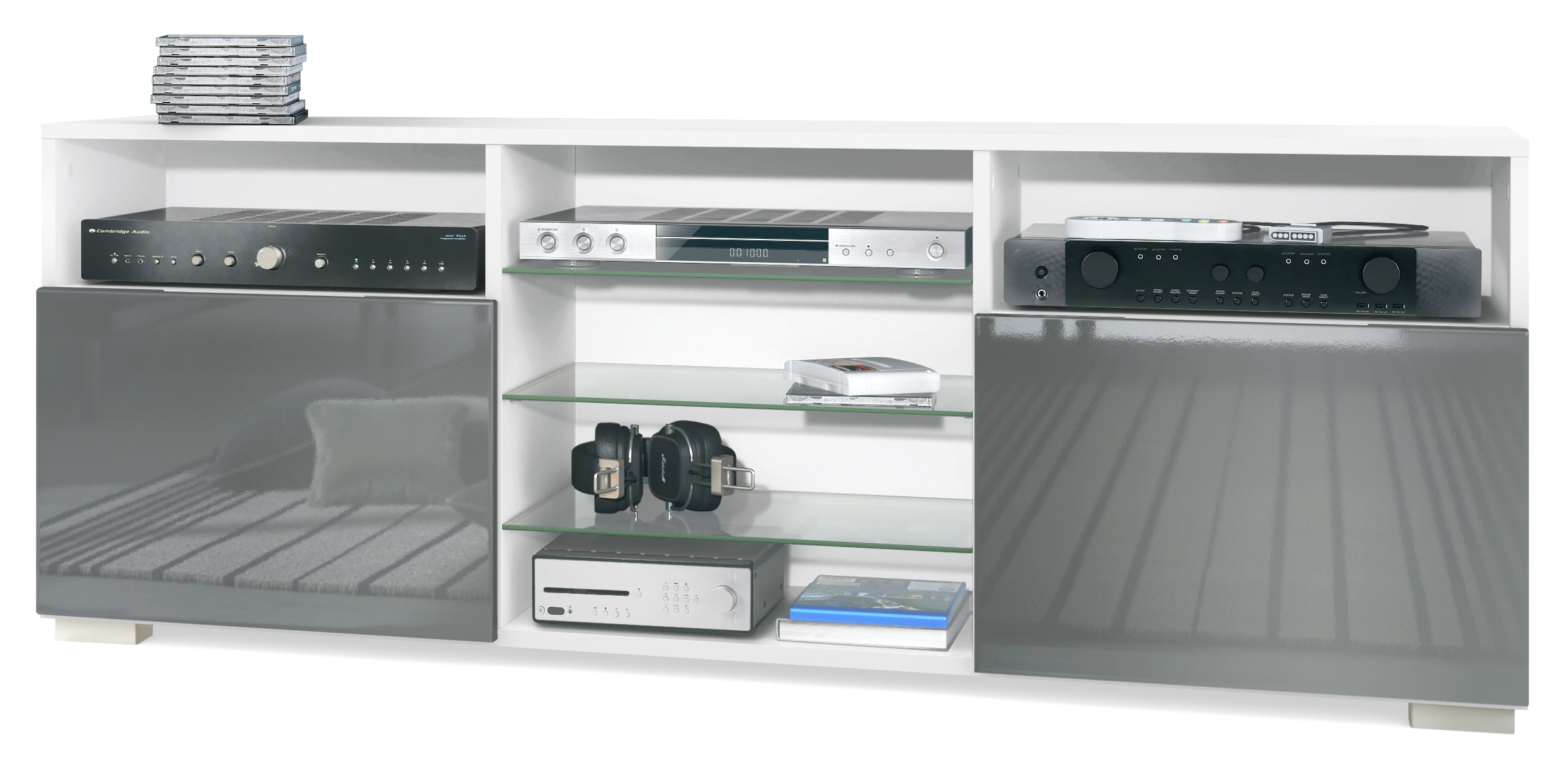 Produktinformationen "Lowboard Granada mit 2 Türen und 6 offenen Fächern Weiß matt, Grau Hochglanz"