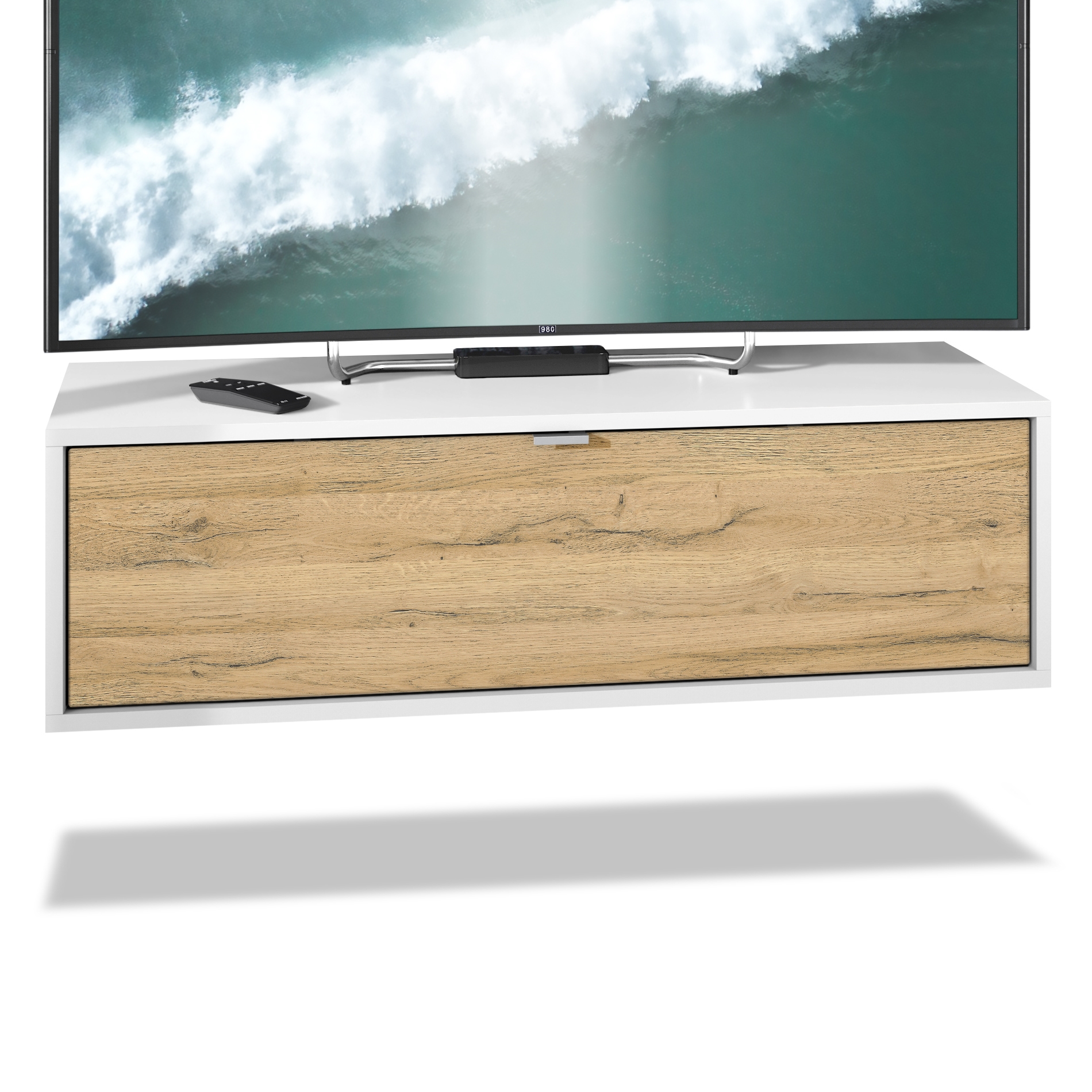 Produktinformationen "Lowboard Lana 1000 mit Klappe Weiß matt/Eiche Natur (100 x 29 x 37 cm)"