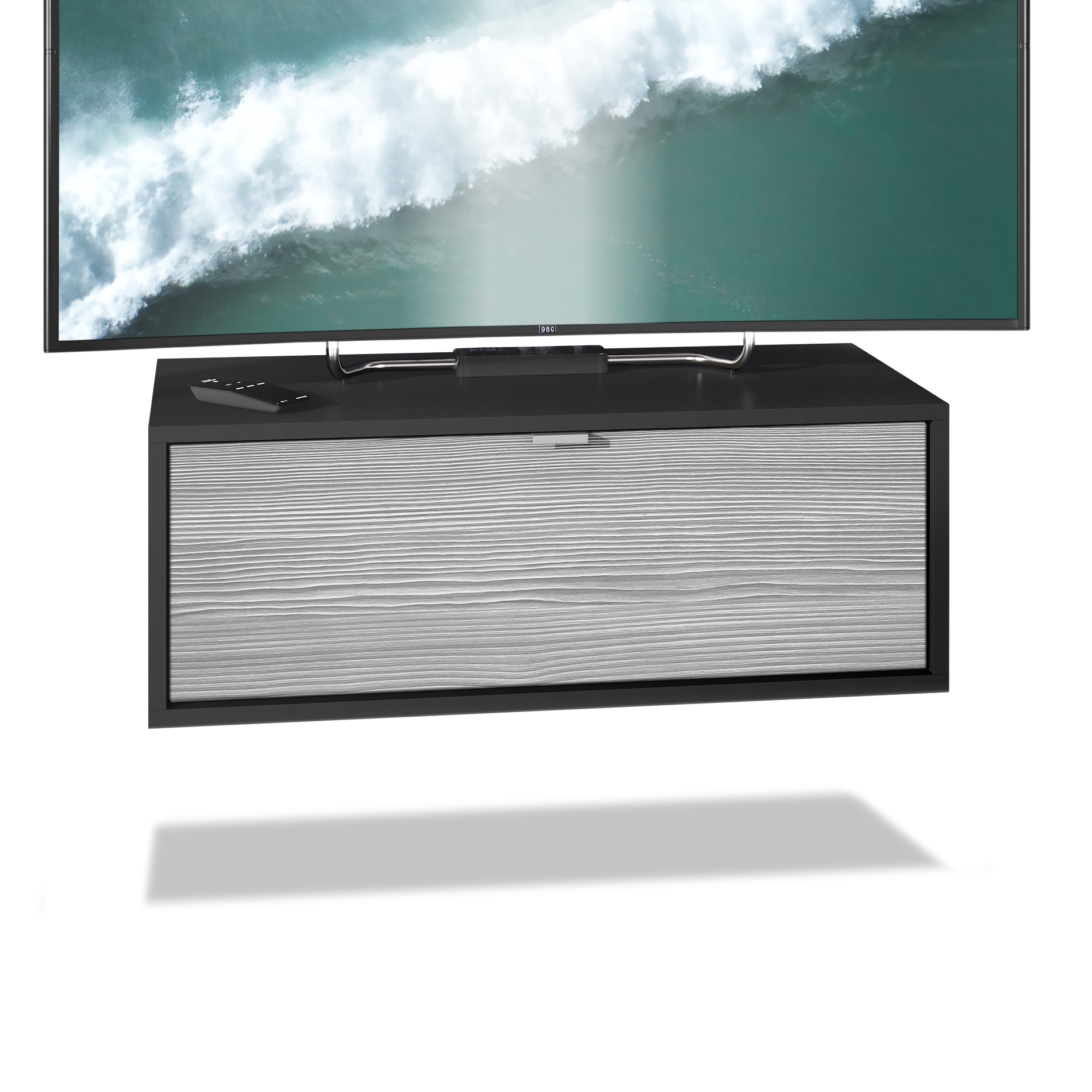 Der Korpus des TV Boards hat die Farbe Schwarz matt. Um dem Möbelstück einen futuristischen Stil zu verleihen, wird es hängend an der Wand befestigt. So kann man es nahezu überall im Haus anbringen. Dies ist gerade dann praktisch, wenn auf dem Boden nicht genügend Platz für stehende Möbel verfügbar ist.