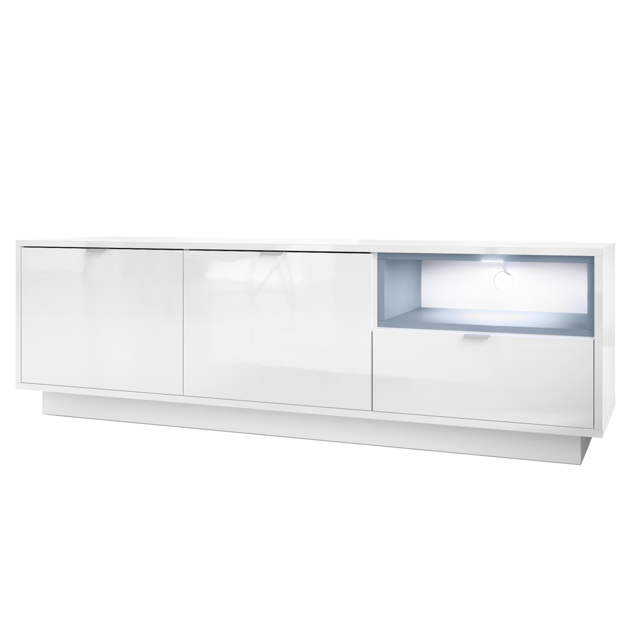 Produktinformationen "Lowboard Metro mit 2 Türen, Schublade und offenem Fach Weiß Hochglanz/Denim matt inkl. LED-Beleuchtung (153 x 48 x 37 cm)"