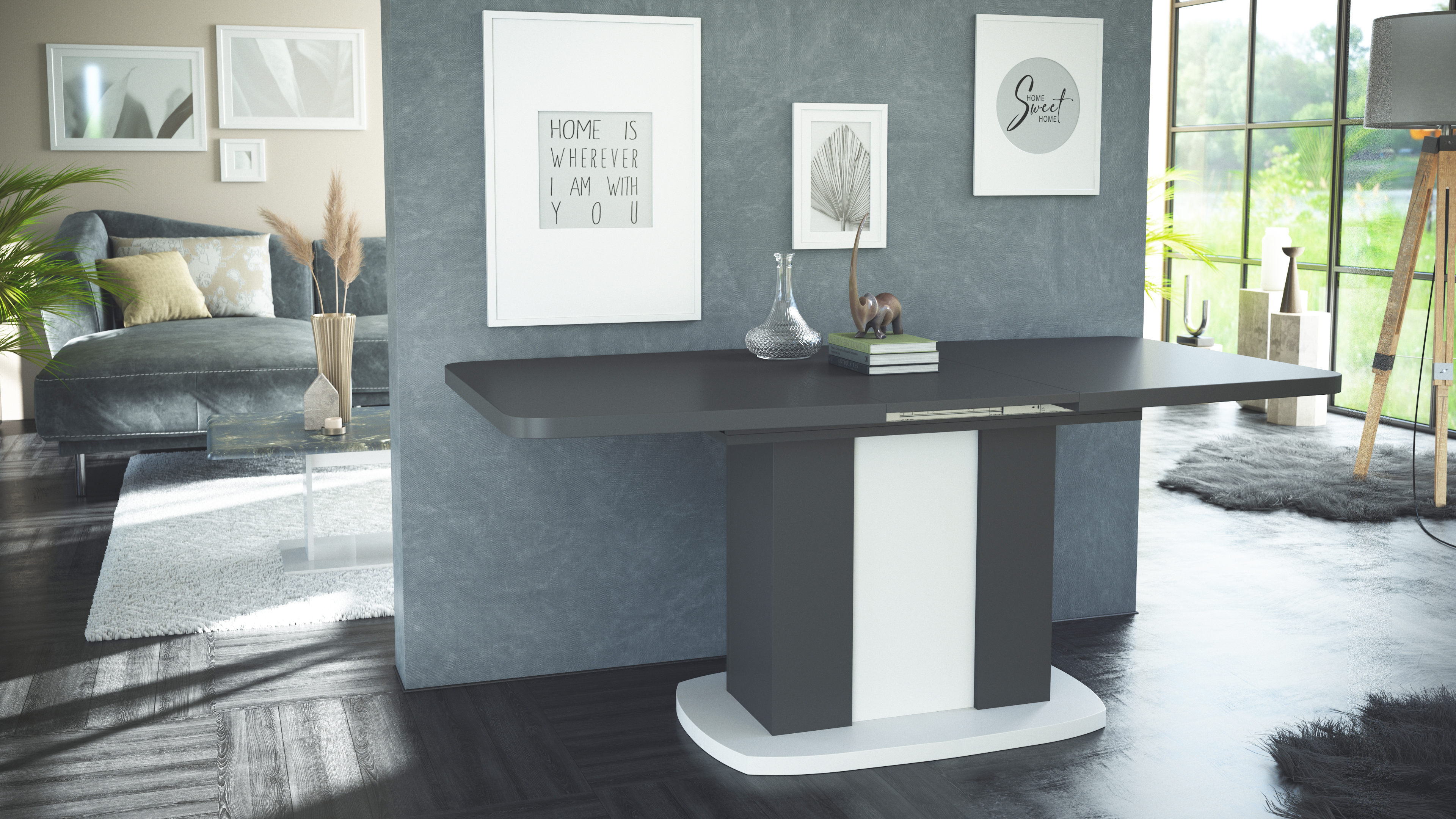 Produktinformationen "Maya Esstisch Abgerundet ausziehbar 140 - 180 / 160 - 200 x 75 x 90 cm in Weiß / Beton, Weiß / Anthrazit, Anthrazit / Weiß verfügbar"