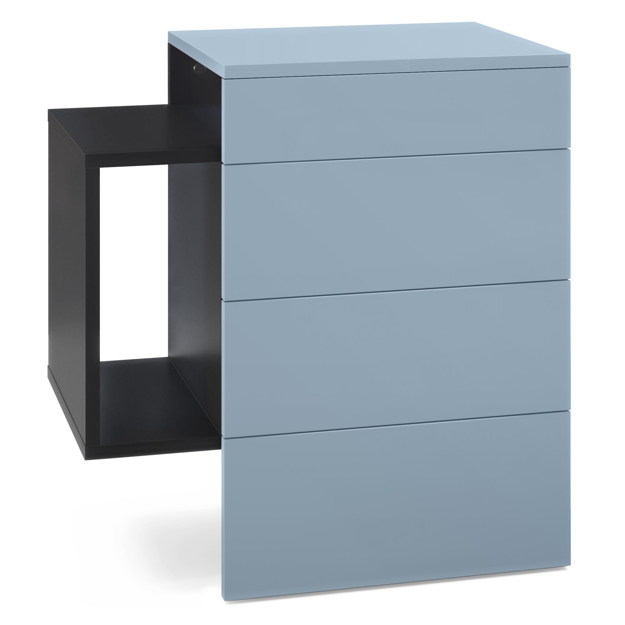 Nachttisch Queens und 1 seitlichem Fach zur Wandmontage Schwarz matt/Denim matt (60 x 63 x 36 cm)