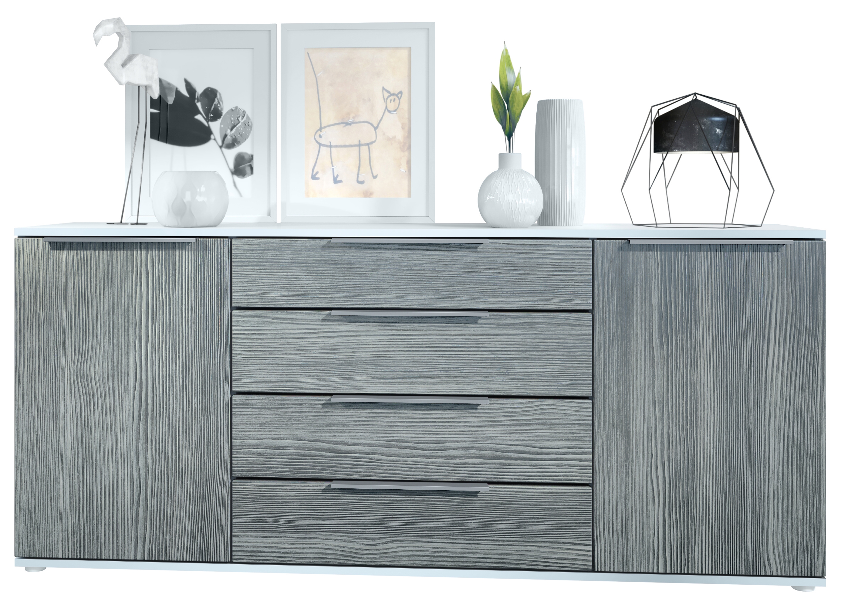 Produktinformationen "Porto V2 Sideboard mit 2 Türen und 4 Schubladen Weiß matt/Avola-Anthrazit (166,5 x 72,5 x 35 cm)"