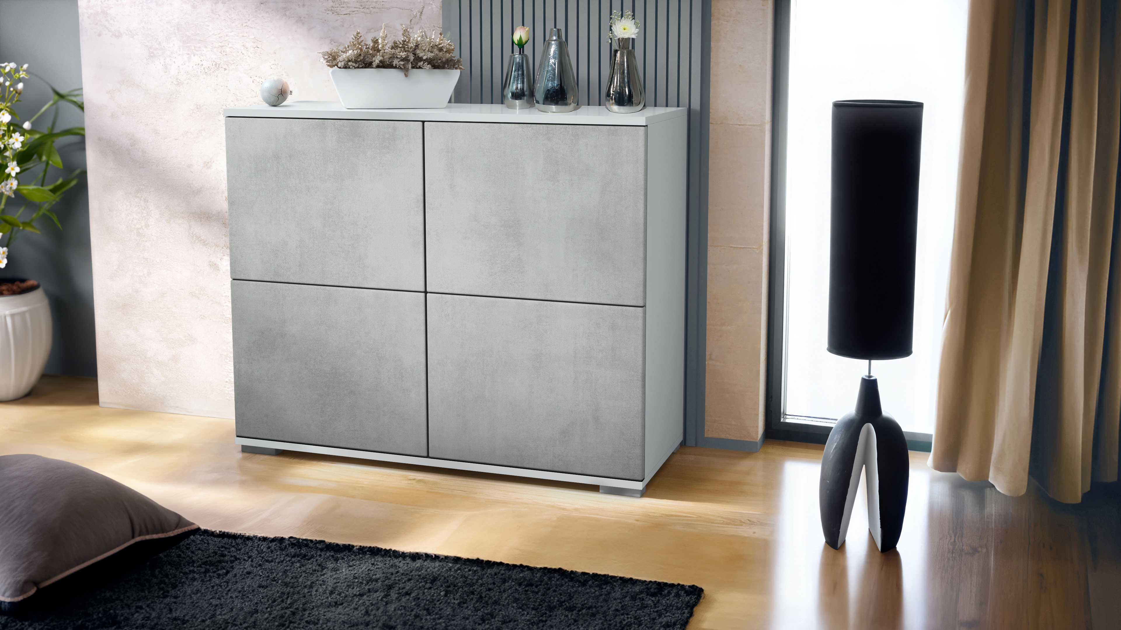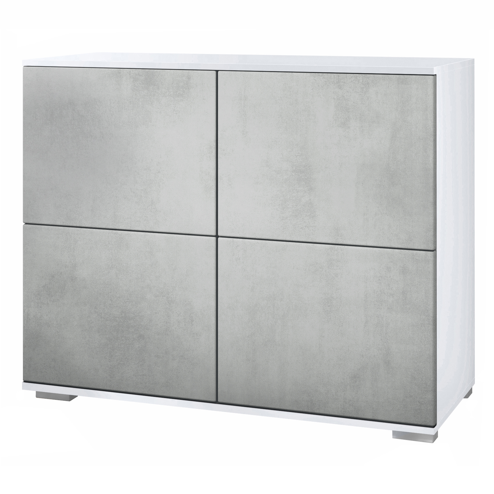 Produktinformationen "Rova V3 Kommode Weiß mit 4 Push-to-Open Türen Weiß matt / Beton Oxid Optik (92,5 x 75.5 x 35)"