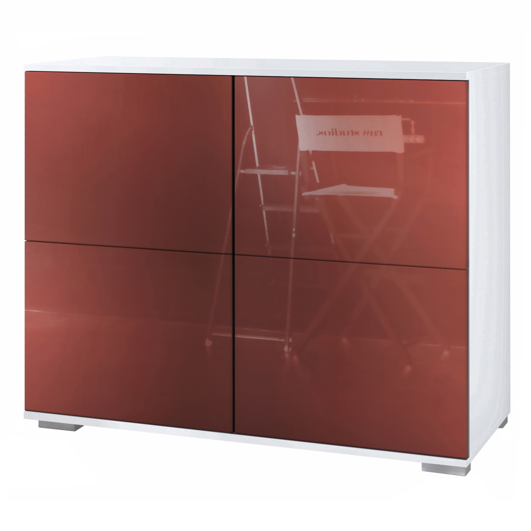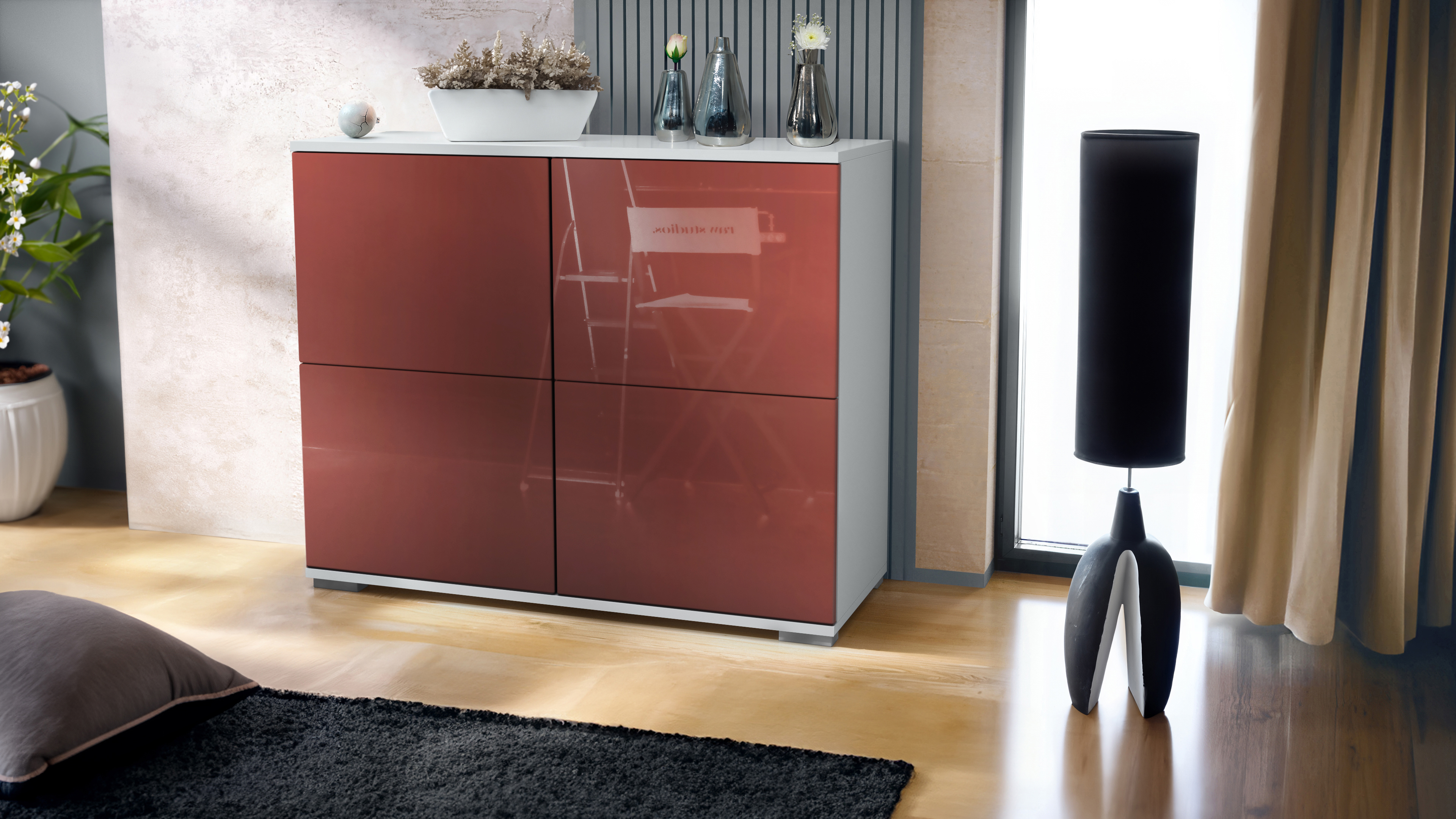 Produktinformationen "Rova V3 Kommode Weiß mit 4 Push-to-Open Türen Weiß matt / Bordeaux Hochglanz (92,5 x 75.5 x 35)"