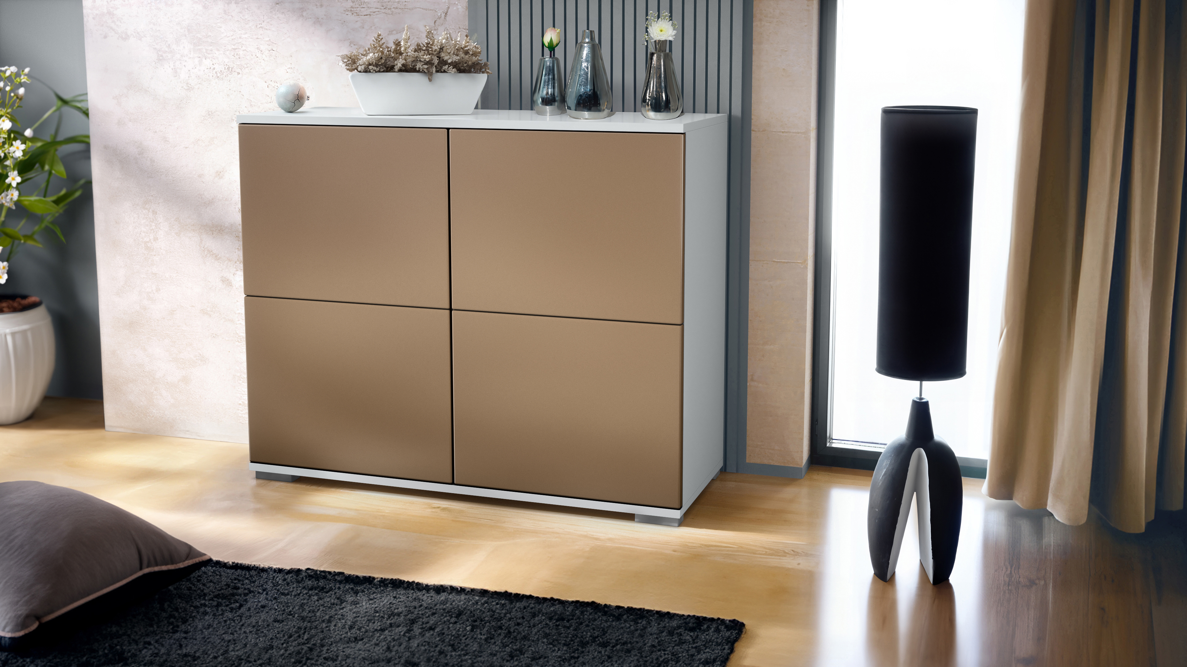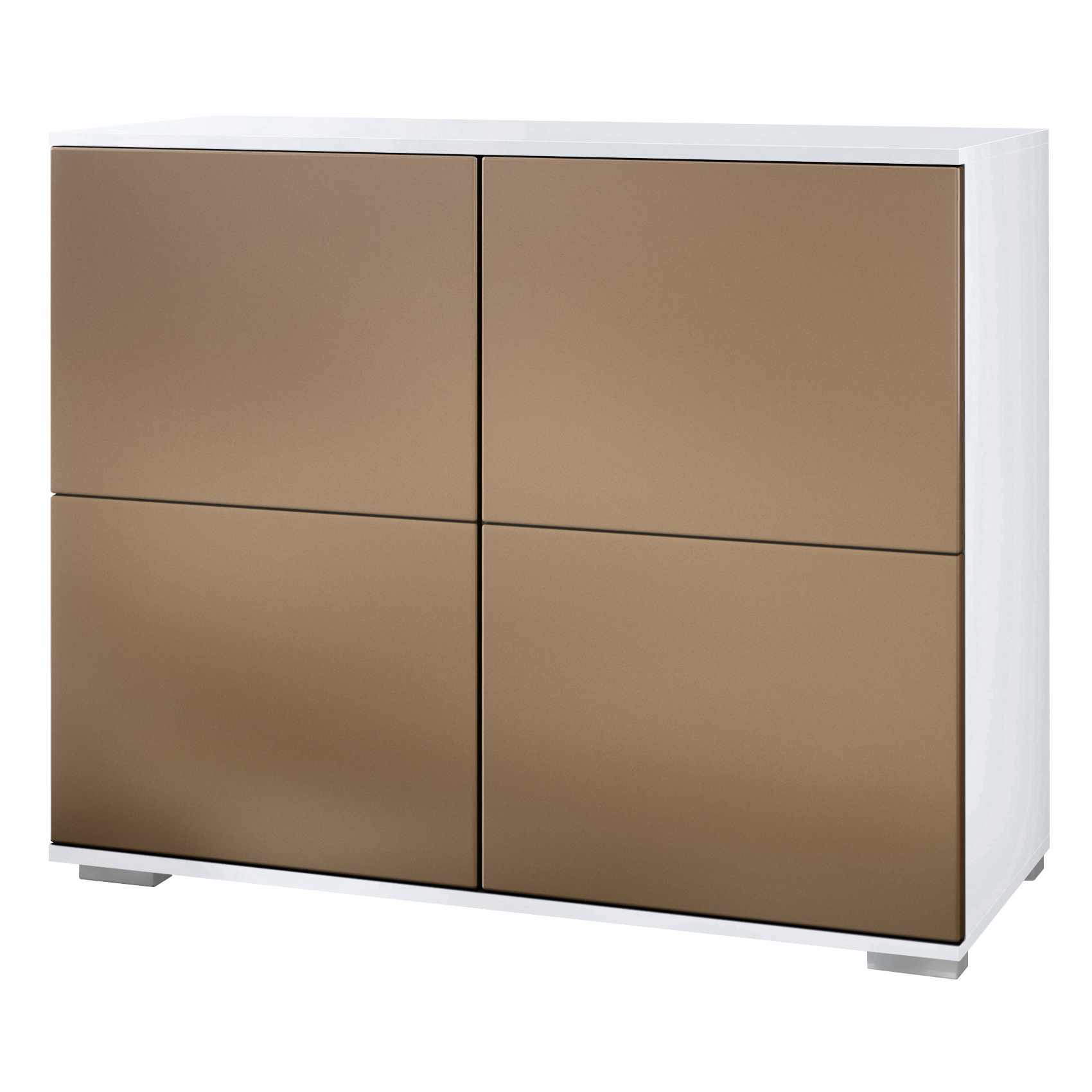 Produktinformationen "Rova V3 Kommode Weiß mit 4 Push-to-Open Türen Weiß matt / Bronze Optik (92,5 x 75.5 x 35)"