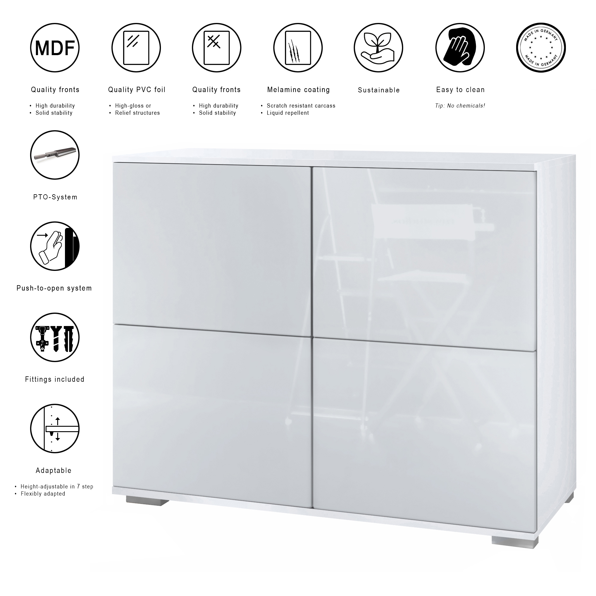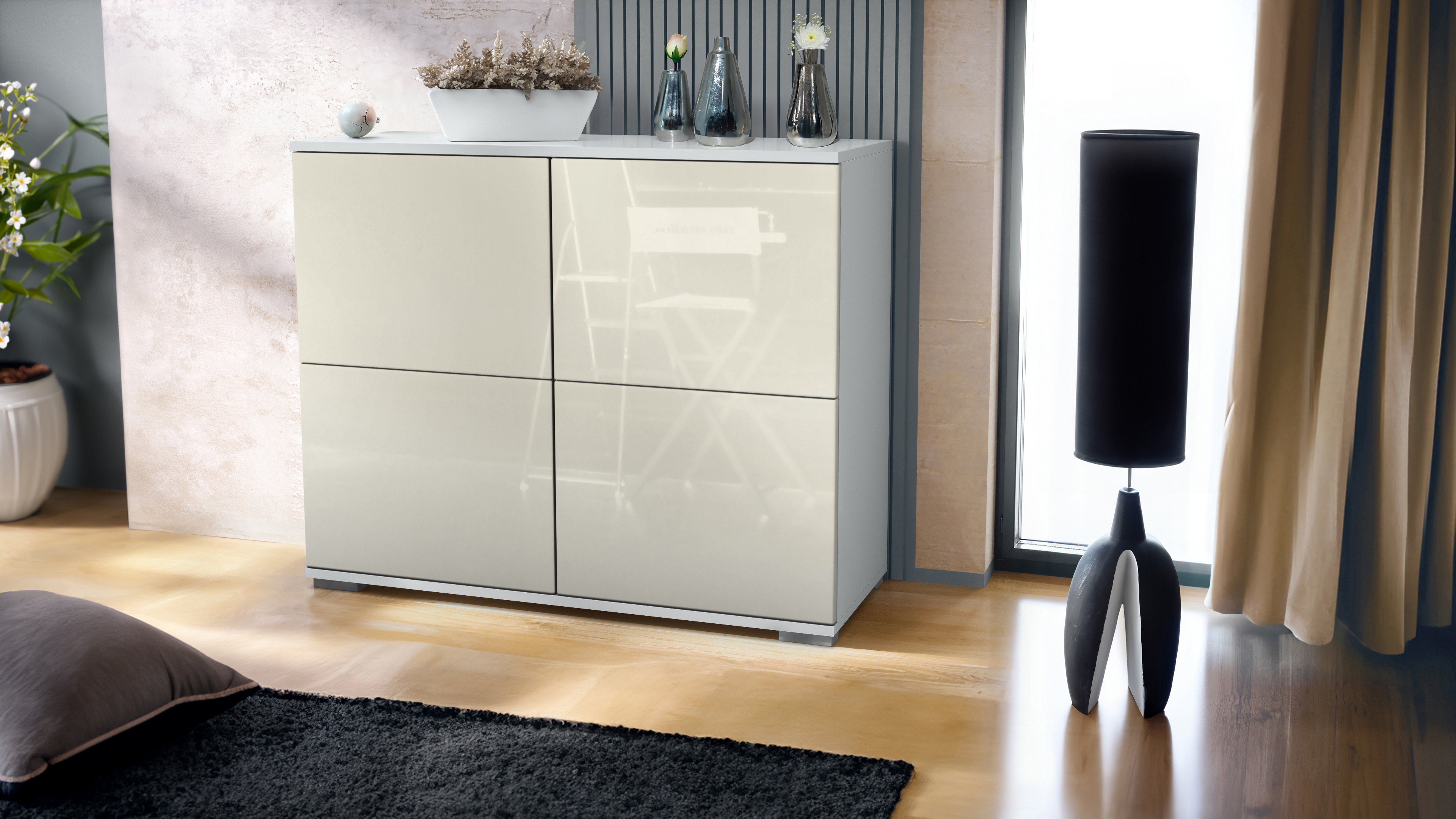 Produktinformationen "Rova V3 Kommode Weiß mit 4 Push-to-Open Türen Weiß matt / Creme Hochglanz (92,5 x 75.5 x 35)"