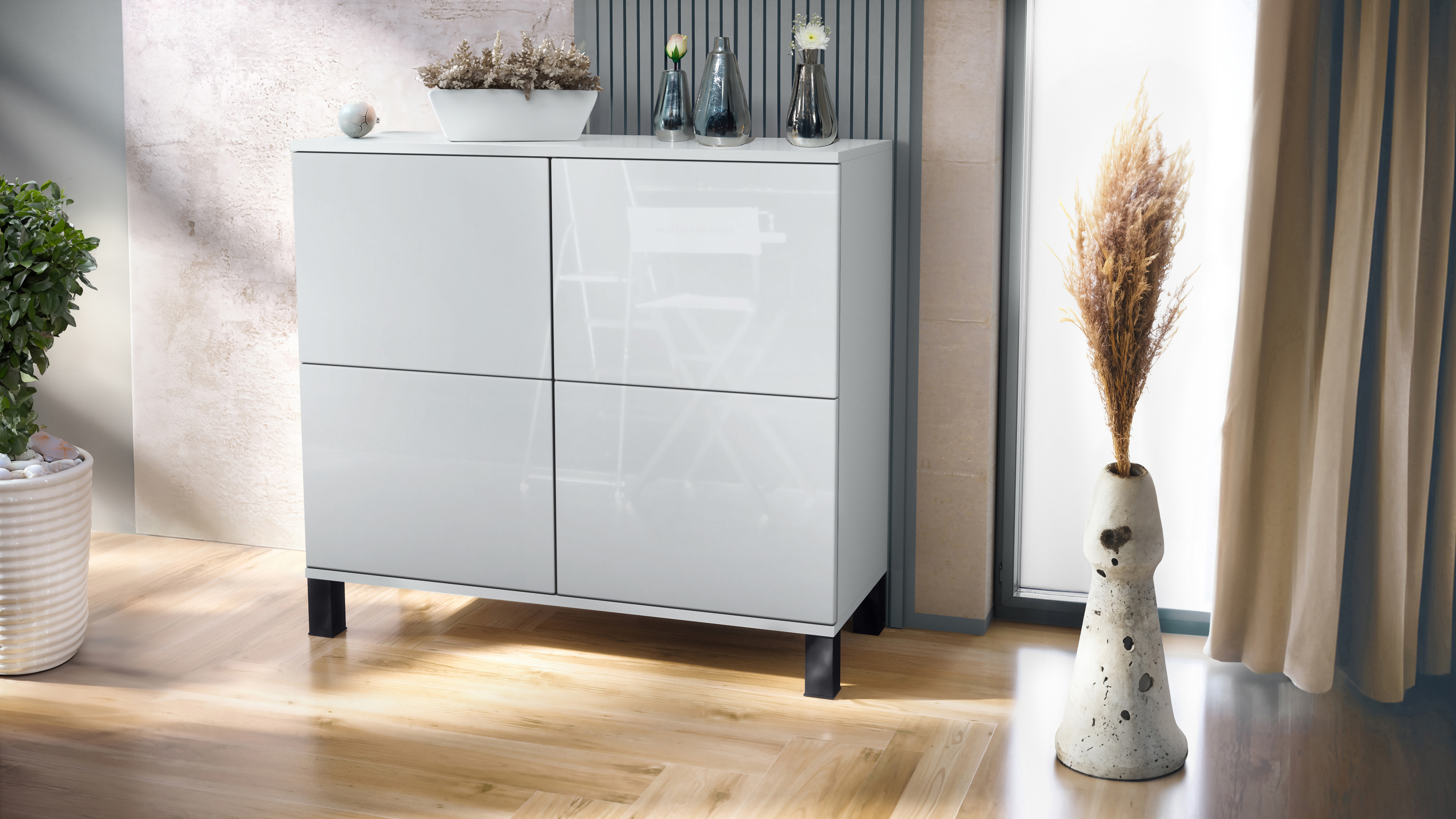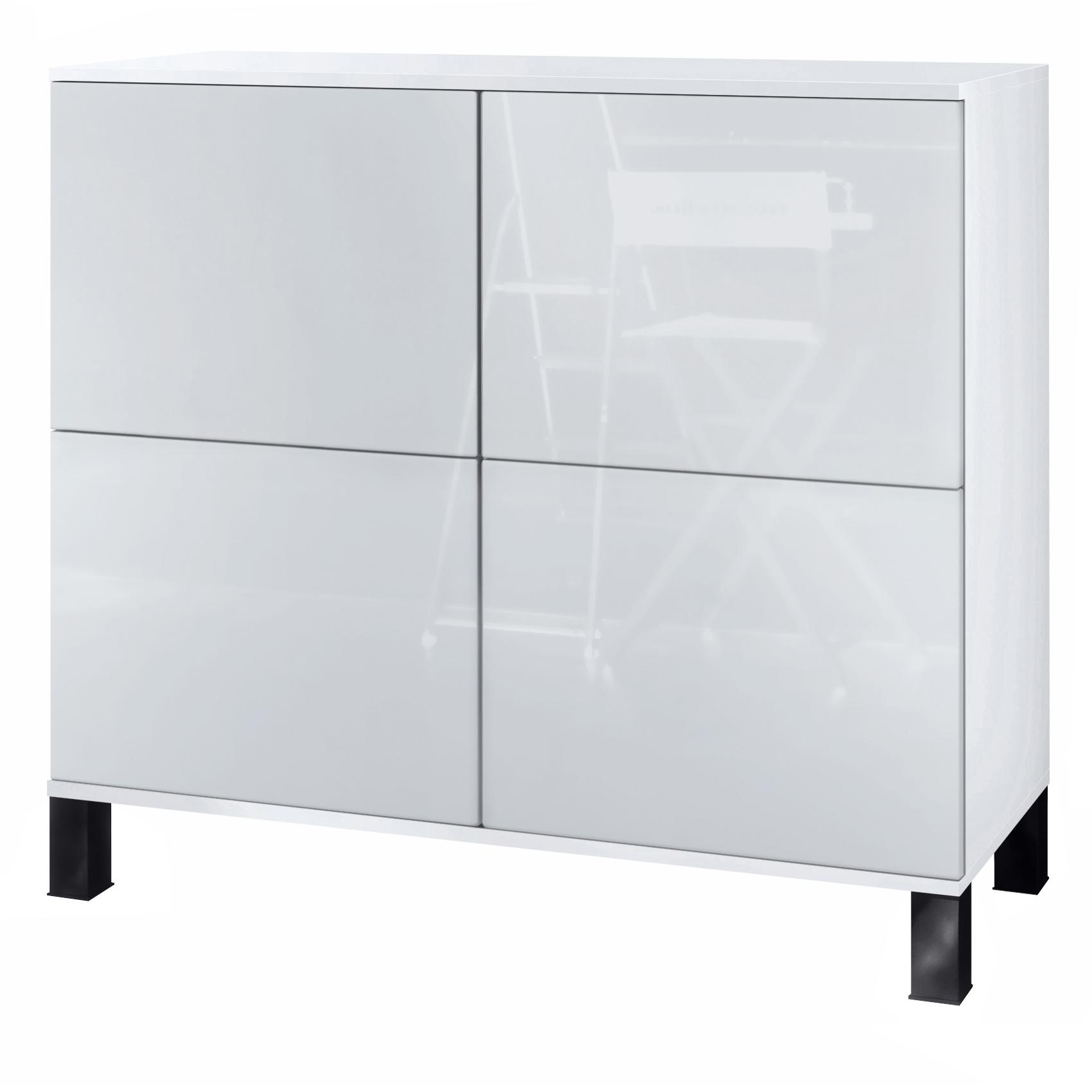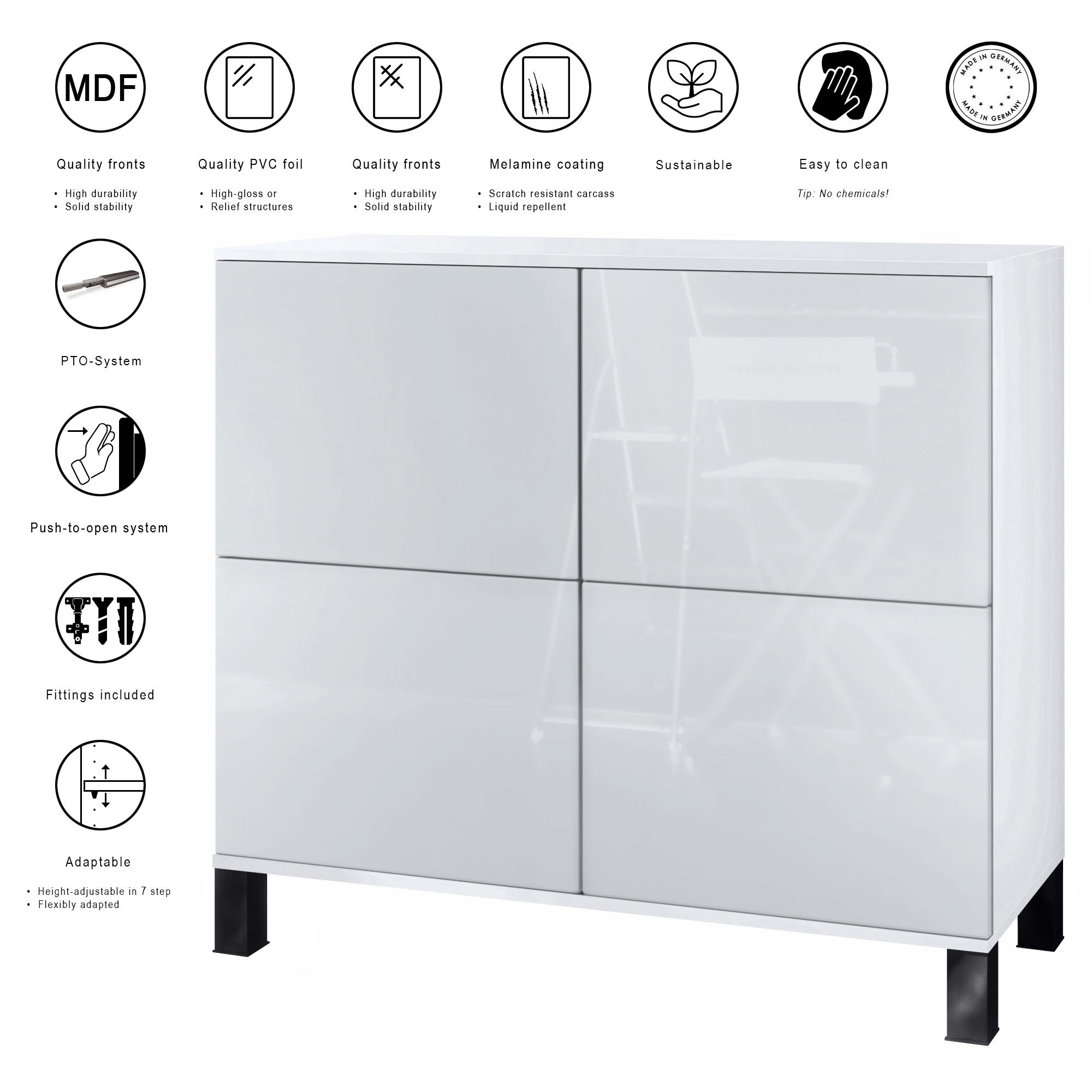 Produktinformationen "Rova V3 Kommode Weiß mit 4 Push-to-Open Türen Weiß matt / Weiß Hochglanz (92,5 x 84.5 x 35)"