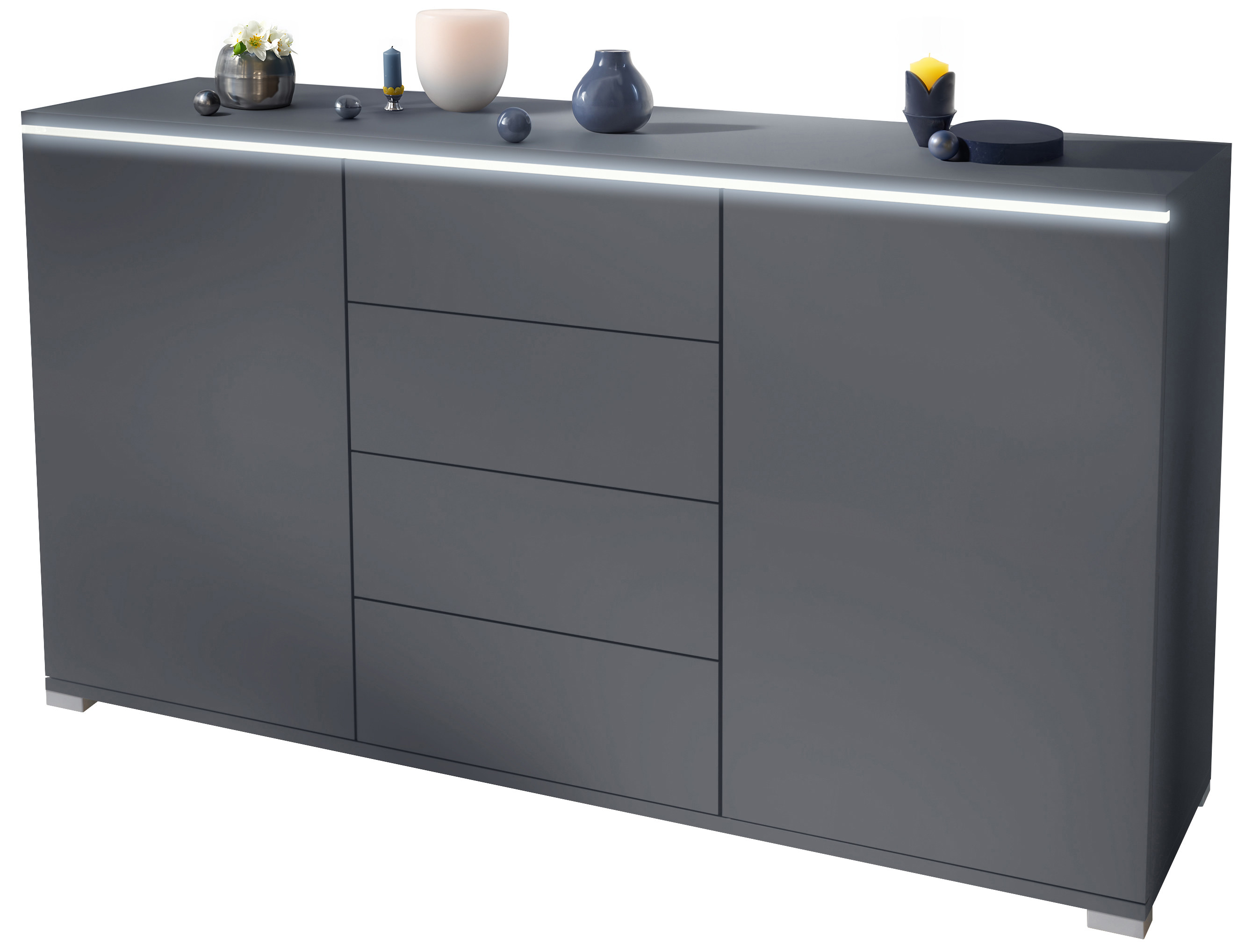 Produktinformationen "Sideboard Faro V1 Anthrazit Schrank mit LED Lichtleiste Anthrazit matt / Anthrazit matt (138,5 x 75,5 x 35)"