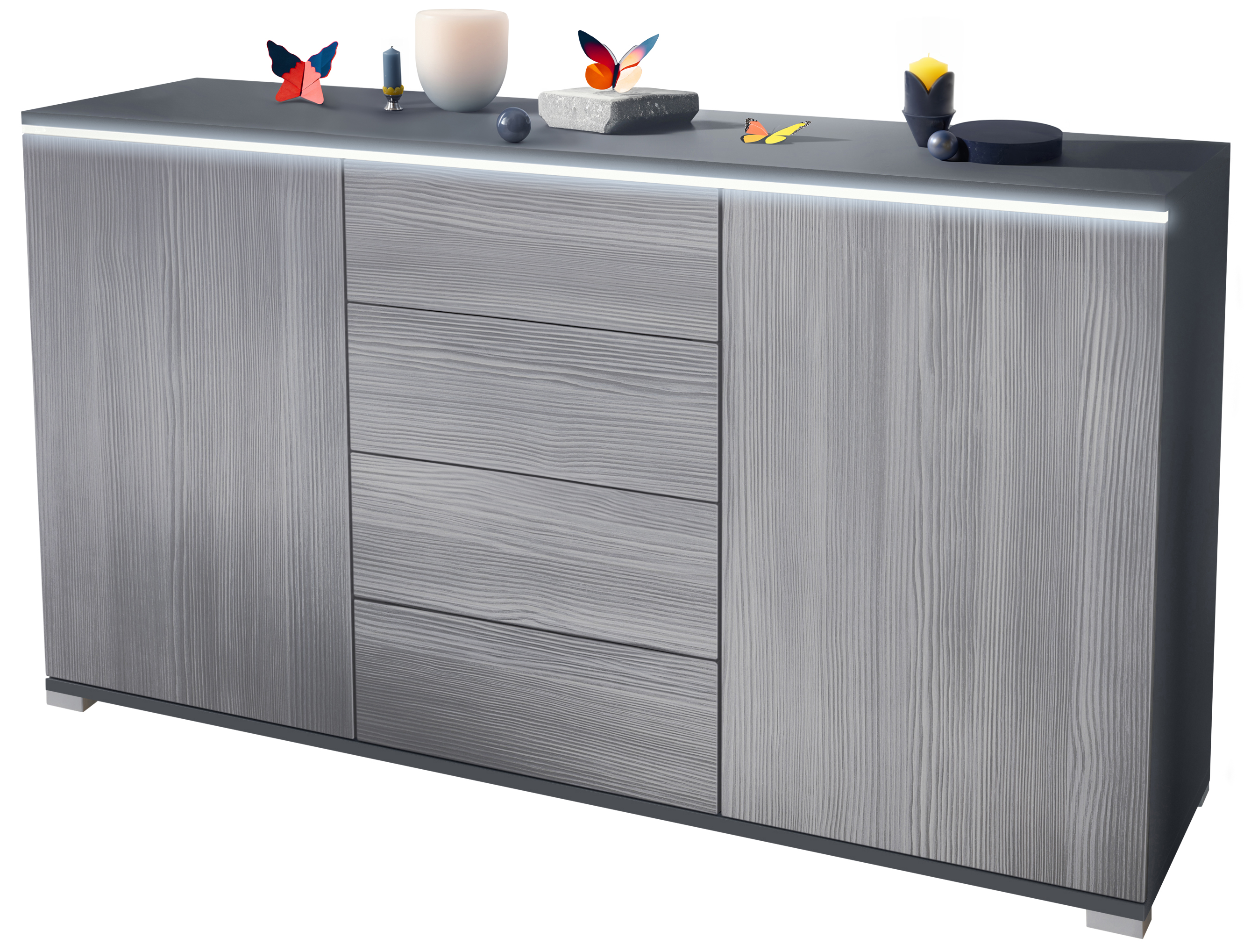 Produktinformationen "Sideboard Faro V1 Anthrazit Schrank mit LED Lichtleiste Anthrazit matt / Avola-Anthrazit (138,5 x 75,5 x 35)"