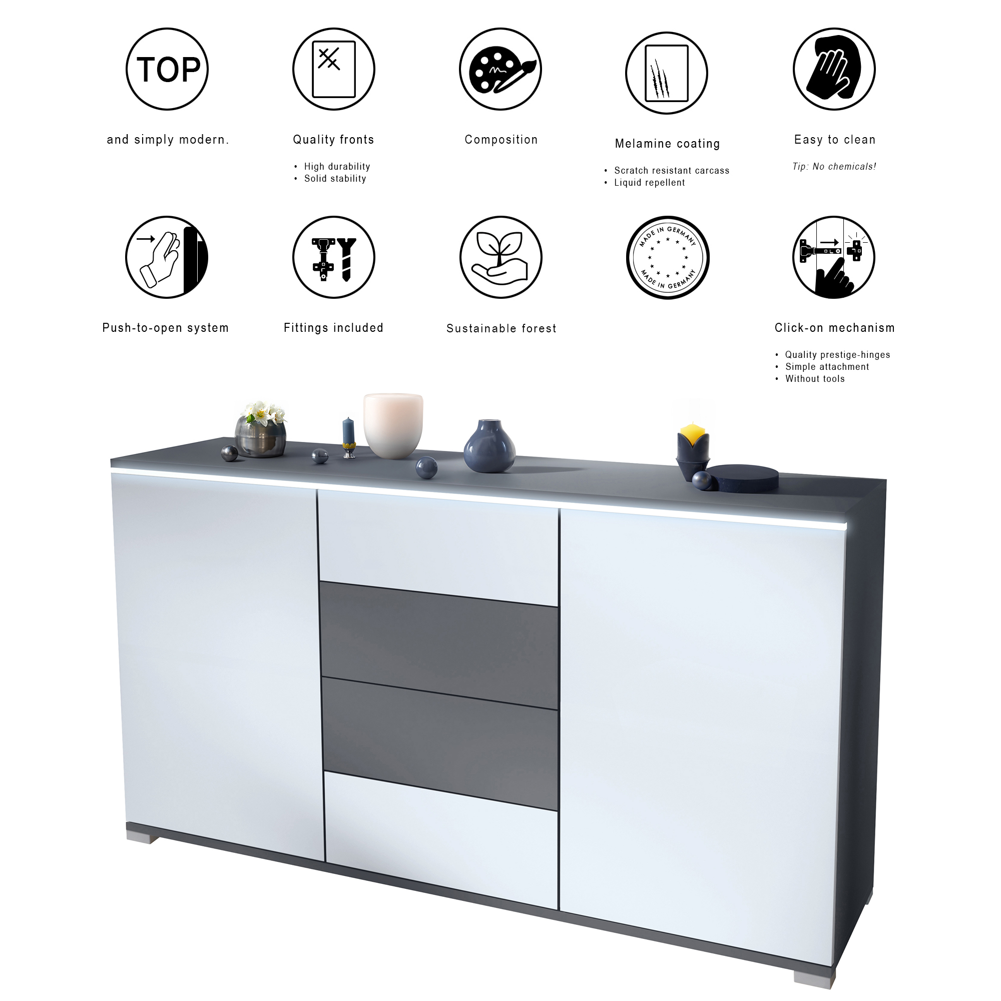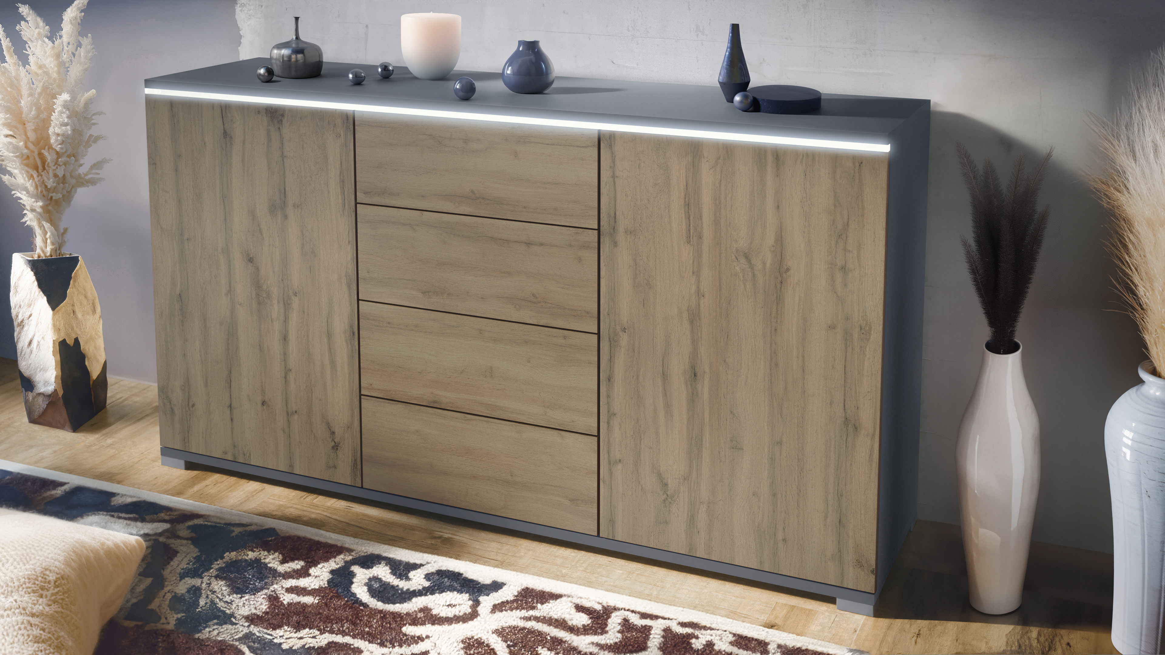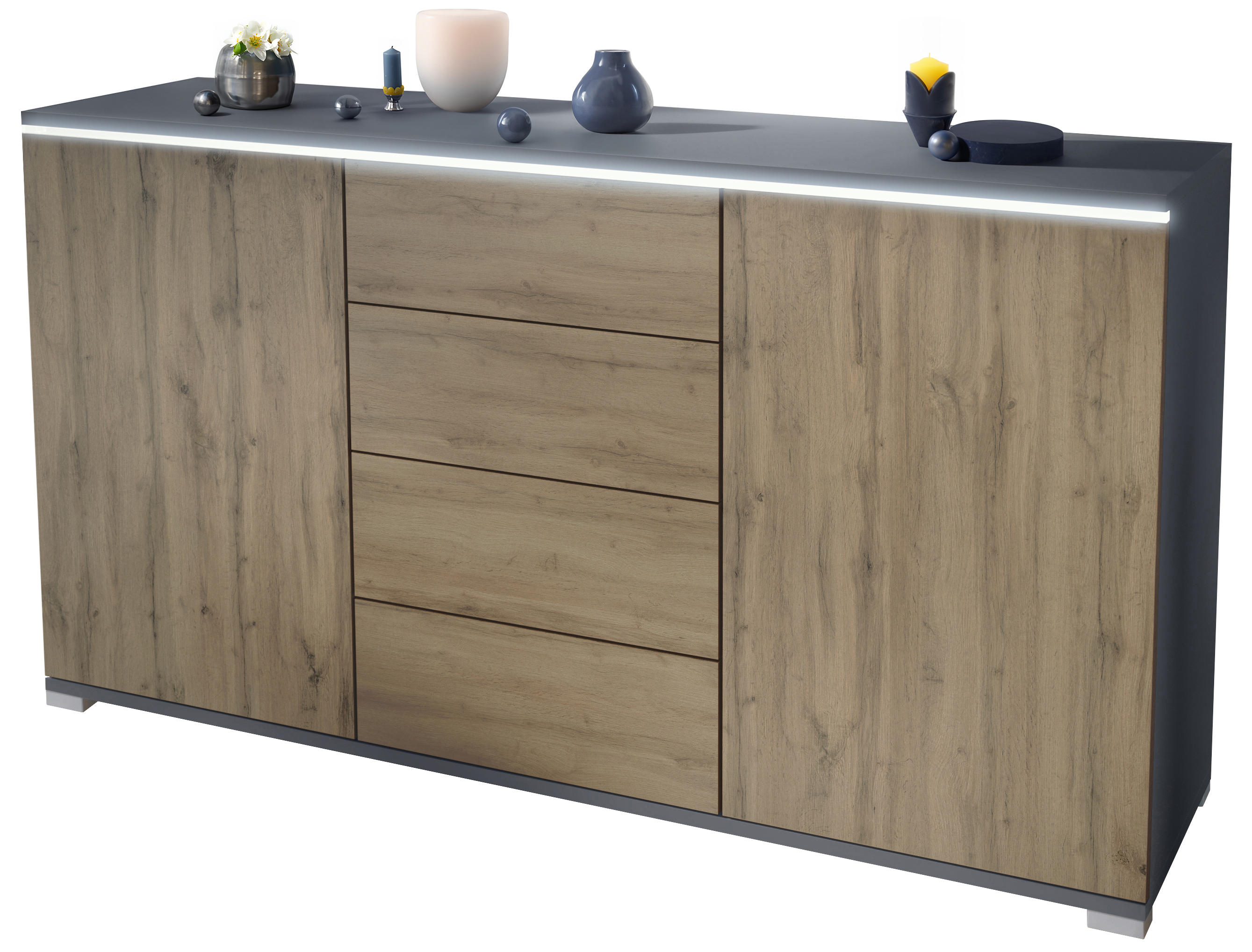 Produktinformationen "Sideboard Faro V1 Anthrazit Schrank mit LED Lichtleiste Anthrazit matt / Eiche Evoke (138,5 x 75,5 x 35)"
