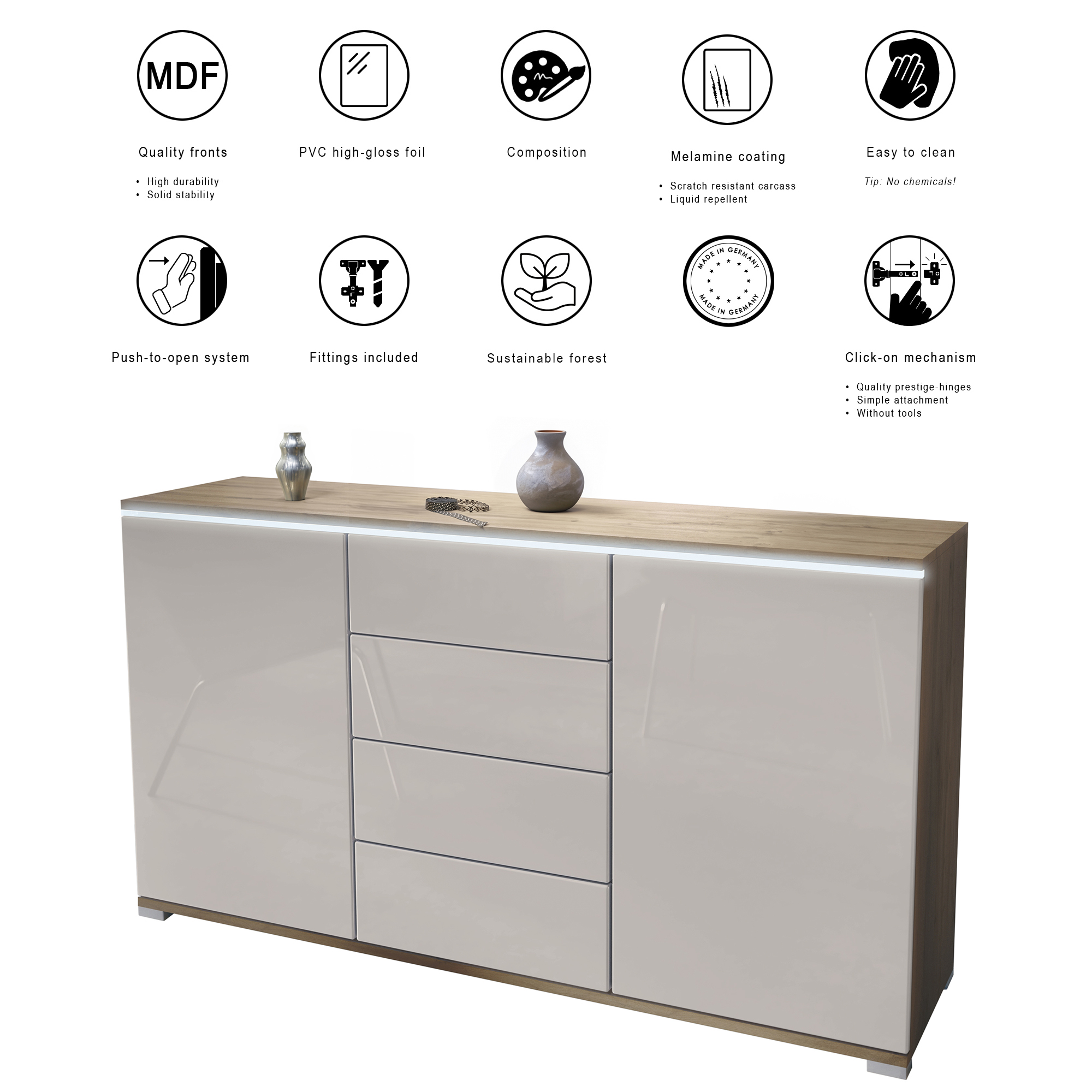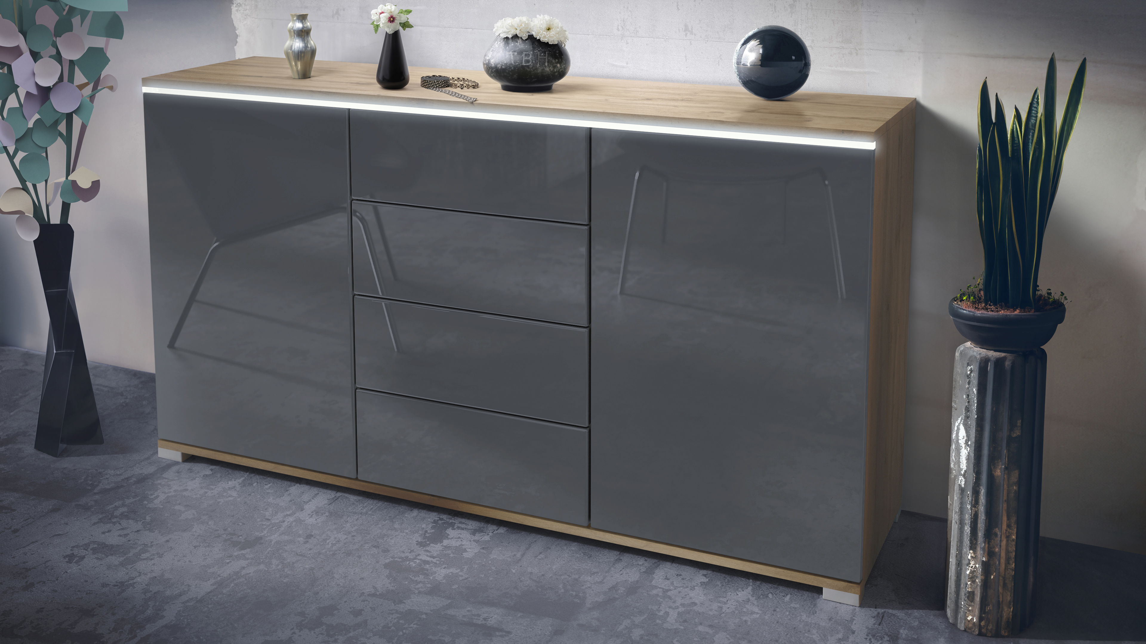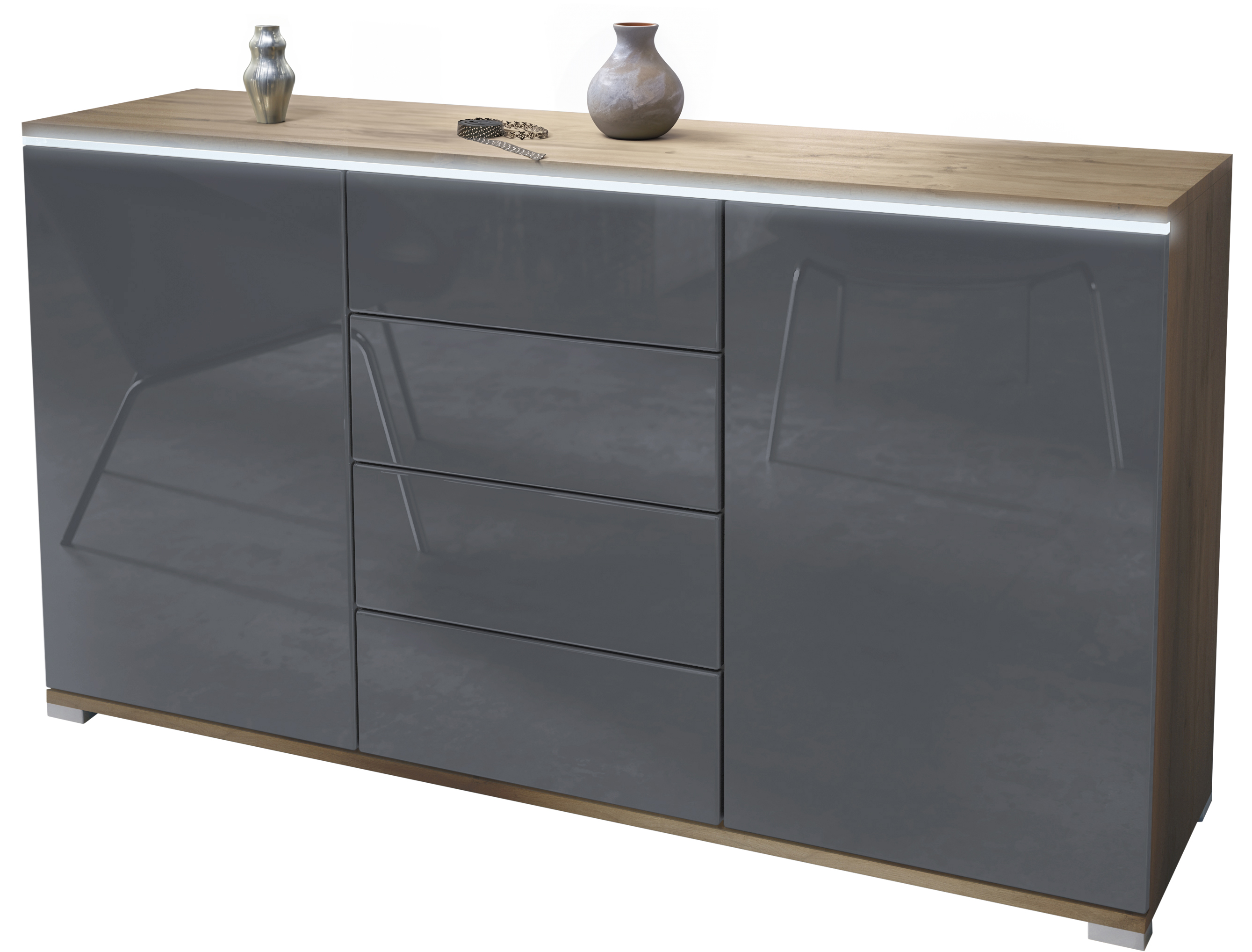 Produktinformationen "Sideboard Faro V1 Eiche Evoke Schrank mit LED Lichtleiste Eiche Evoke / Grau Hochglanz (138,5 x 75,5 x 35)"