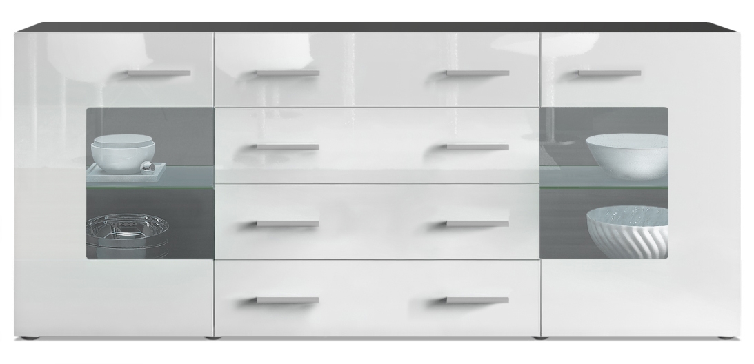 Produktinformationen "Sideboard Noah V2 4 Schubladen und 2 flexible Glaseinlegeböden Schwarz matt/Weiß Hochglanz (166 x 72 x 35)"