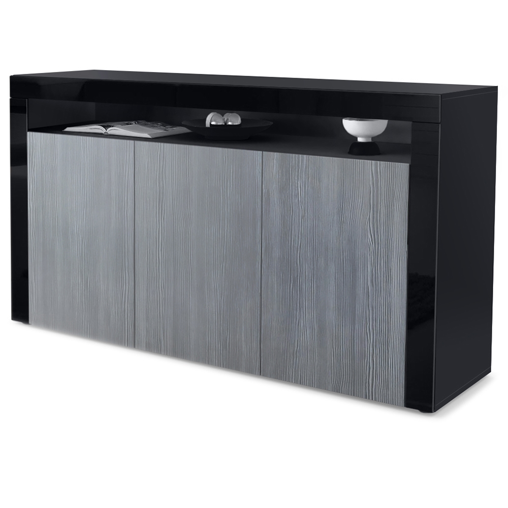 Produktinformationen "Sideboard Valencia mit 3 Türen und 1 offenem Fach Schwarz matt/Avola-Anthrazit/Schwarz Hochglanz (155 x 92 x 40 cm)"