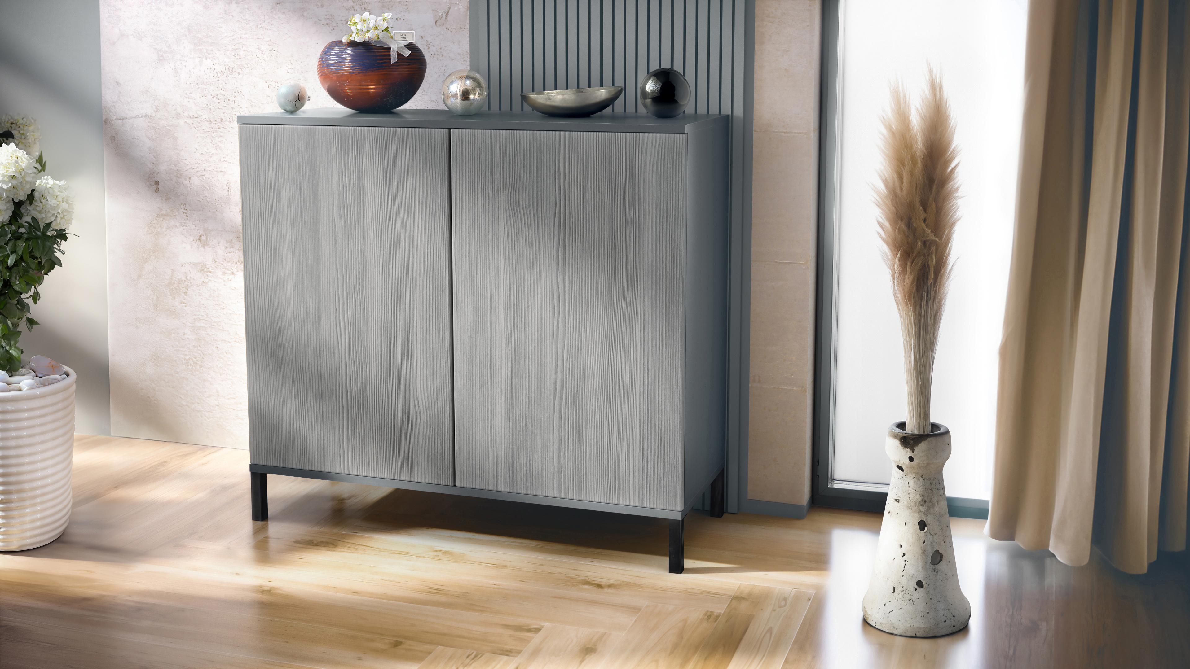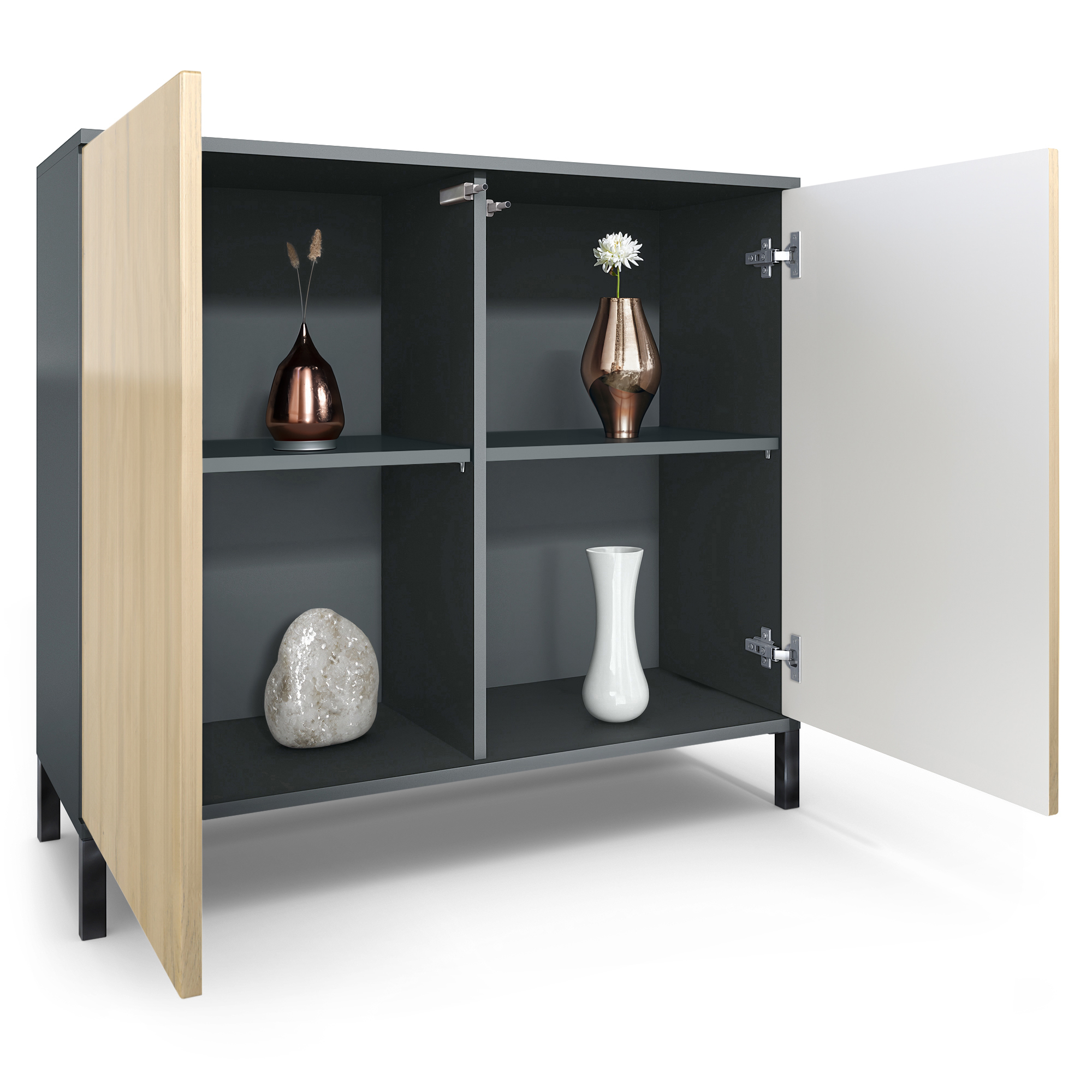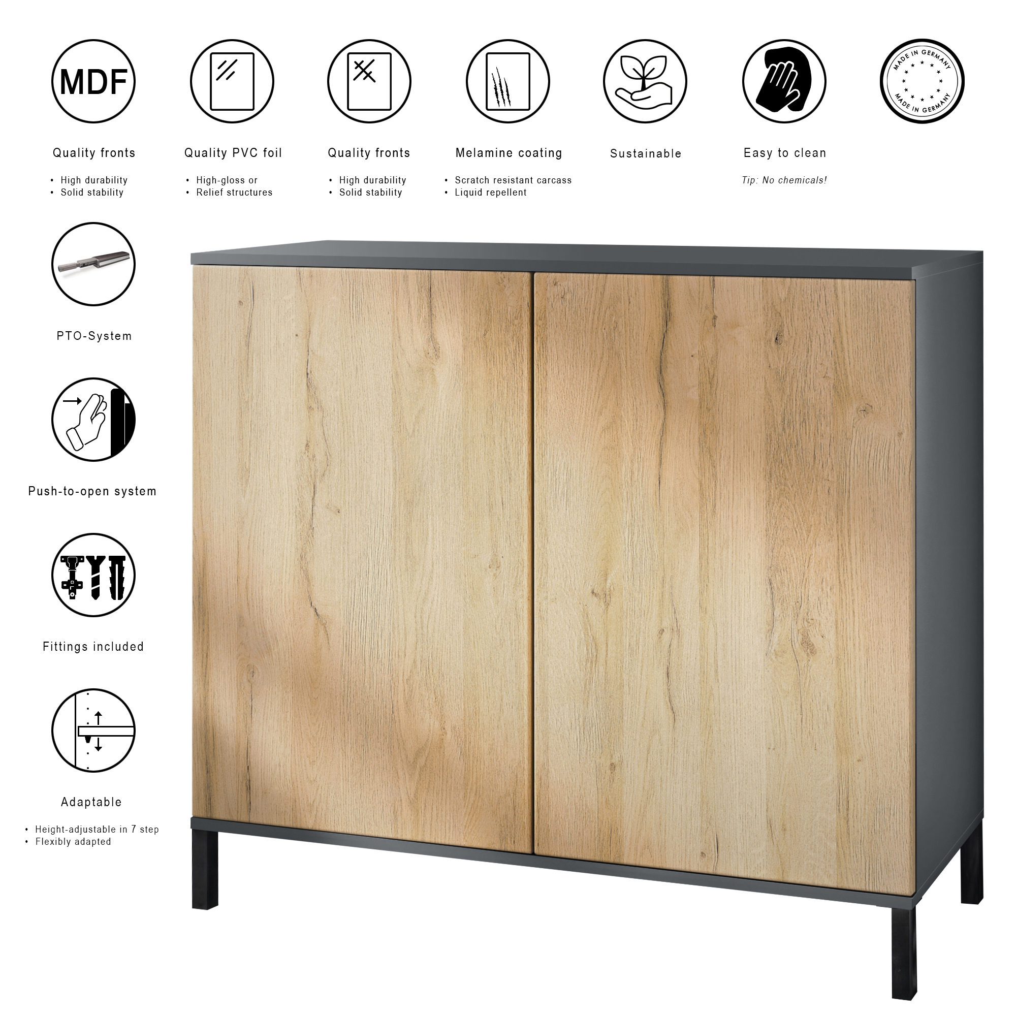 Produktinformationen "Skadu V3 Kommode Anthrazit mit 2 großen Türen Anthrazit matt / Avola-Anthrazit (92,5 x 83.5 x 35)"