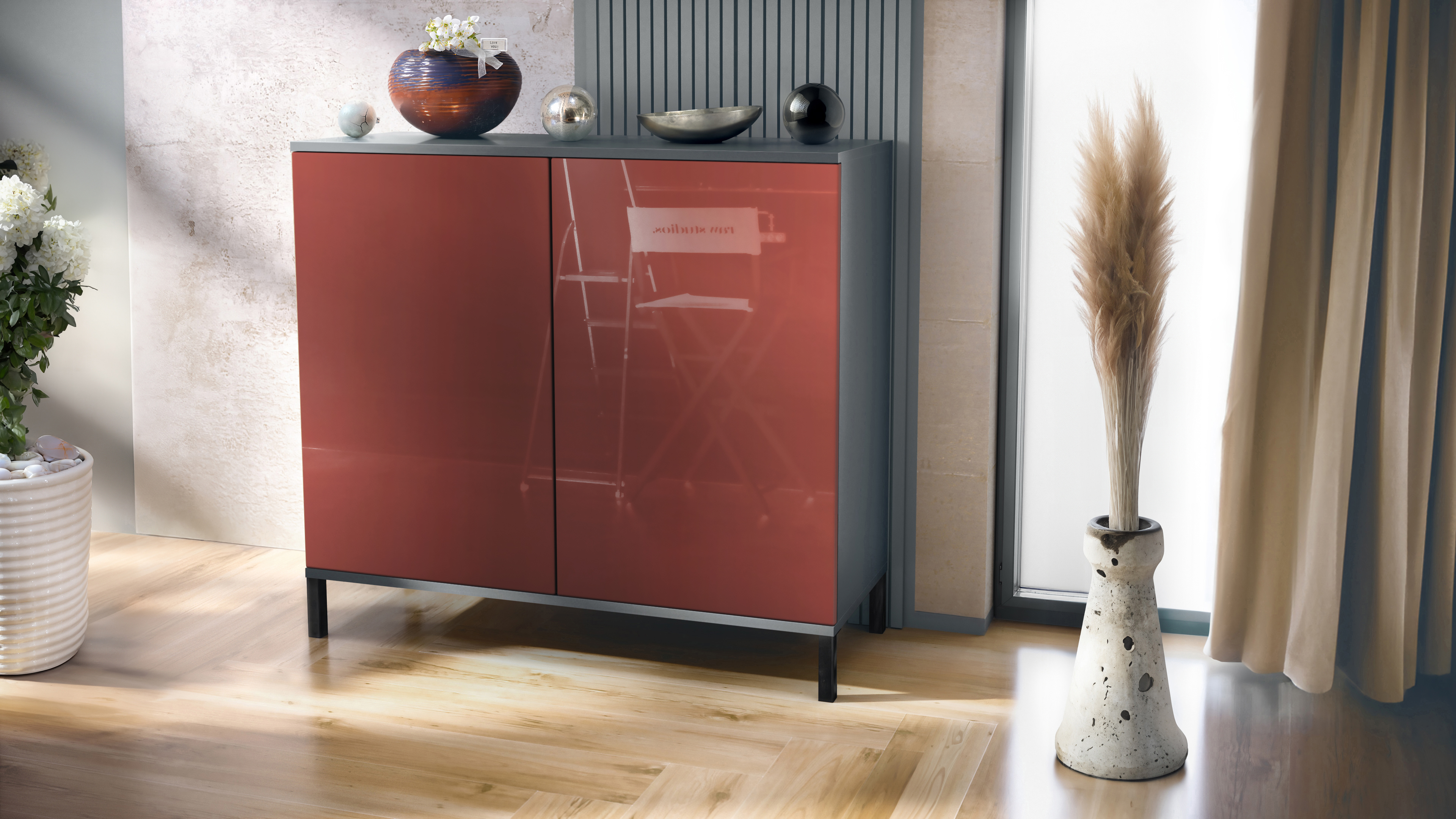 Produktinformationen "Skadu V3 Kommode Anthrazit mit 2 großen Türen Anthrazit matt / Bordeaux Hochglanz (92,5 x 83.5 x 35)"