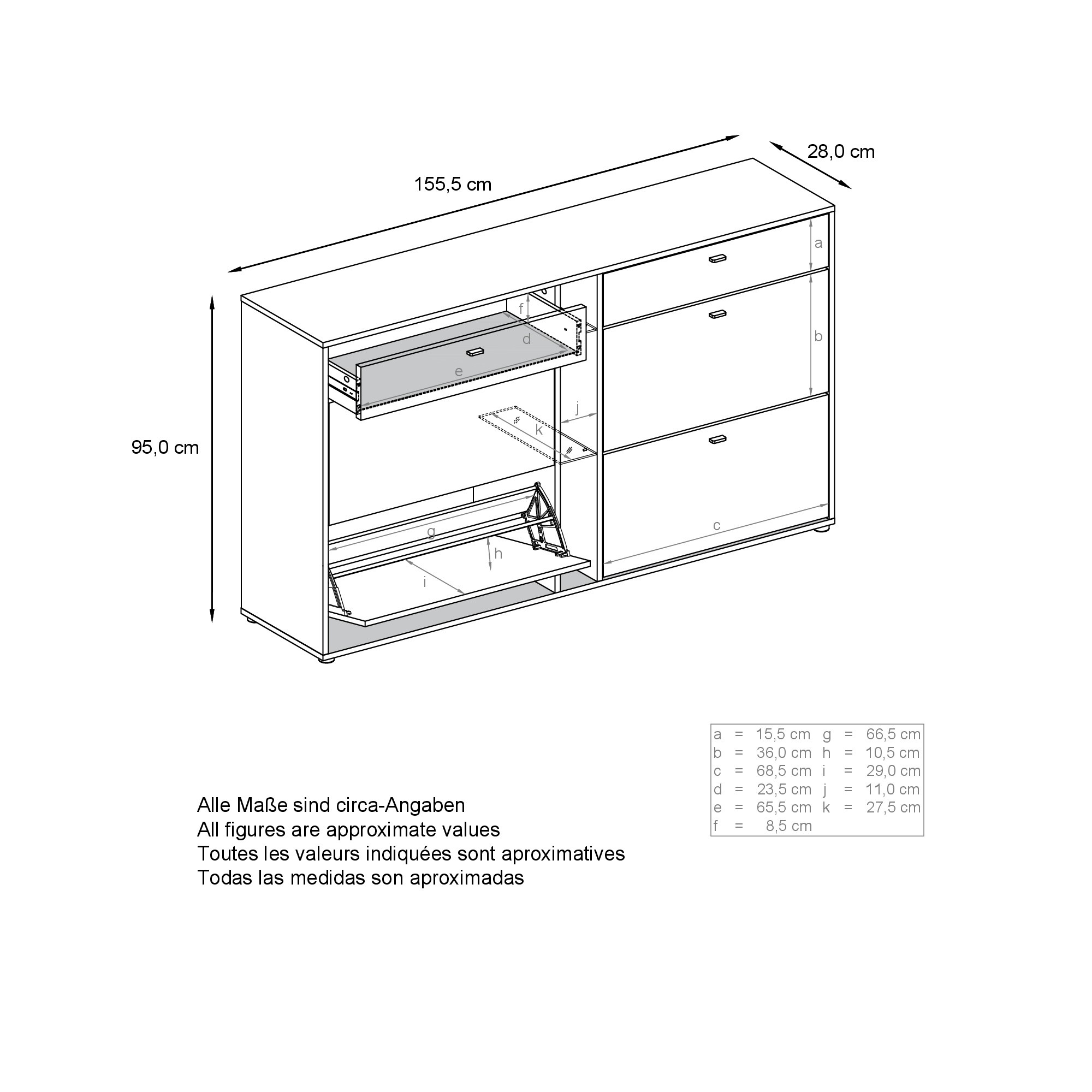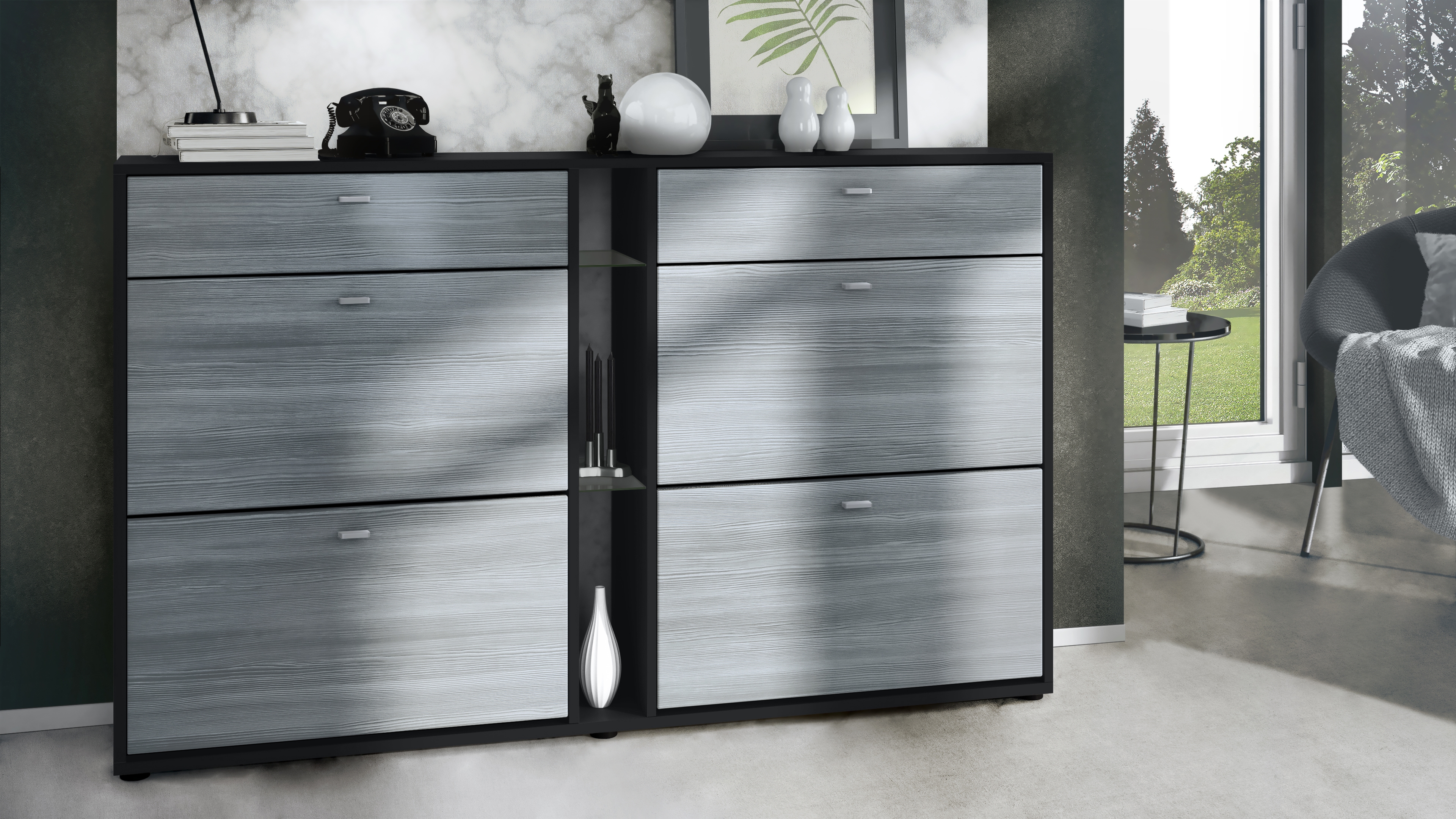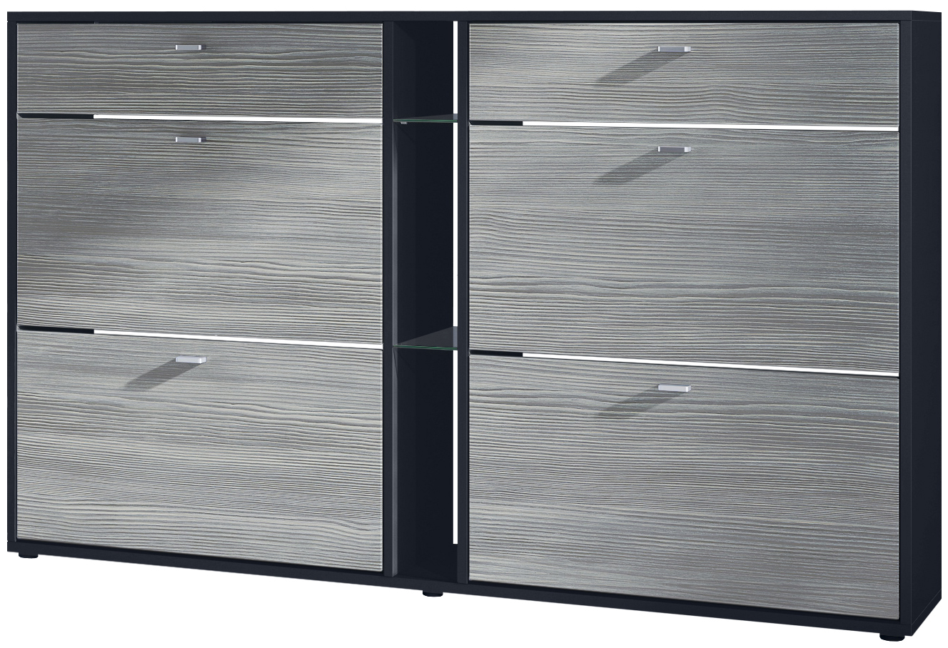 Produktinformationen "Today Schuhschrank 2 Schubladen und 3 offene Fächer Schwarz matt/Avola-Anthrazit (155,5 x 95 x 28 cm)"