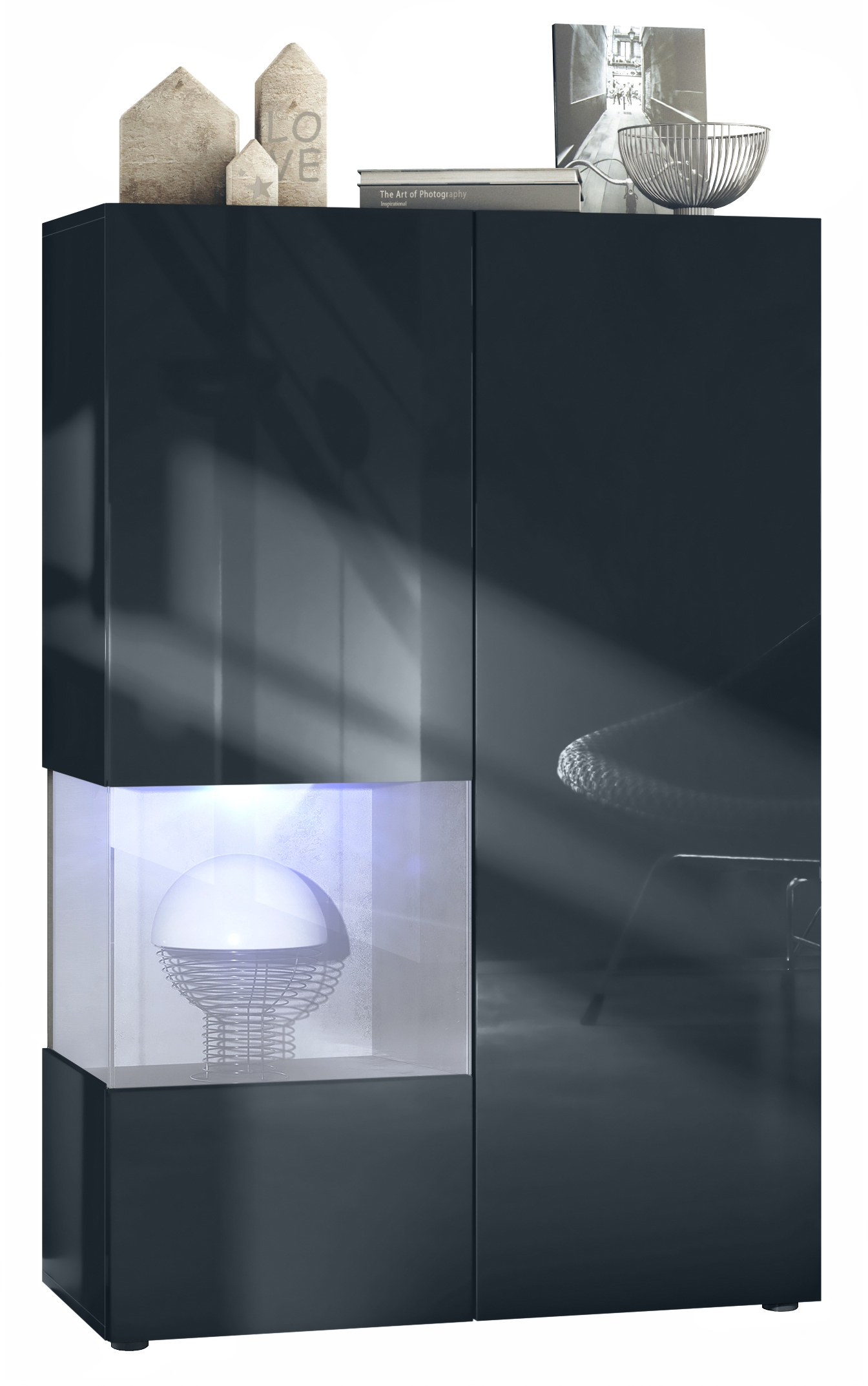 Produktinformationen "Vitrine Morena V2 mit 2 Türen und Glaseinsatz inkl. LED-Beleuchtung Schwarz matt/Schwarz Hochglanz/Beton Oxid Optik(91,5 x 136,5 x 37 cm)"