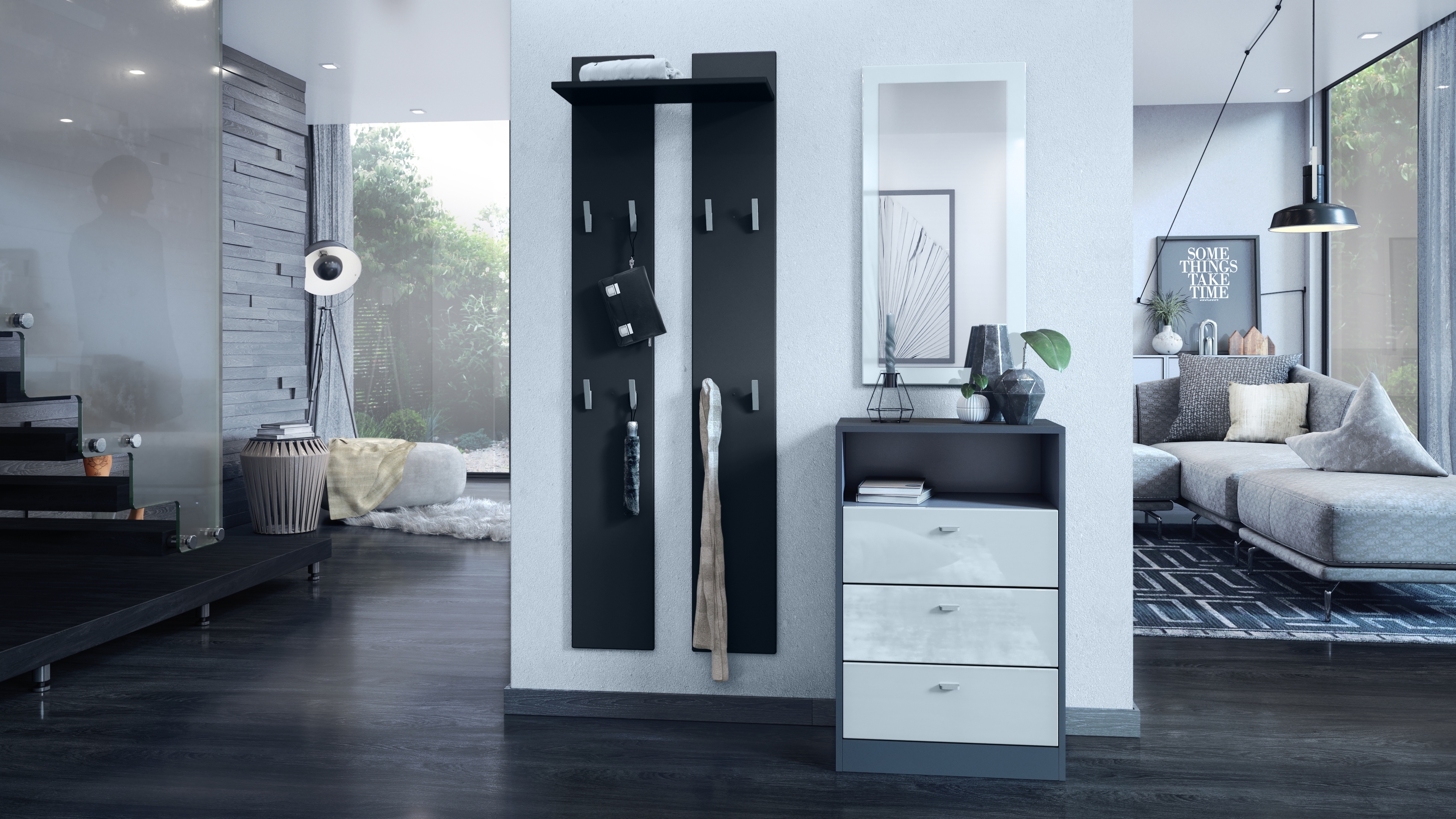 Für eine besondere Eleganz sorgen die Fronten des Garderobensets, erhältlich in vielen verschiedenen Farbvarianten, die Ihnen eine Vielzahl an Kombinationsmöglichkeiten bieten. Durch die Oberflächenbeschichtung der einzelnen Möbelstücke erhalten Sie besonders pflegeleichte Produkte. Für die Reinigung können Sie auf Chemie verzichten - es reicht ein leicht angefeuchtetes Tuch, um die wasserfesten Oberflächenangemessen zu reinigen.