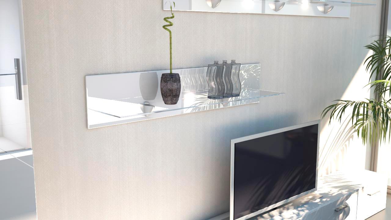 Mit seinem neuartigen und futuristischen Design ist das Bari Wandregal ein absolutes Highlight. Die integrierten Glasablagen verleihen ihm eine besondere optische Wirkung. Das Regal wird unsichtbar an der Wand montiert und verzichtet auf sichtbare Verschraubungen, was für ein ästhetisches Erscheinungsbild sorgt.