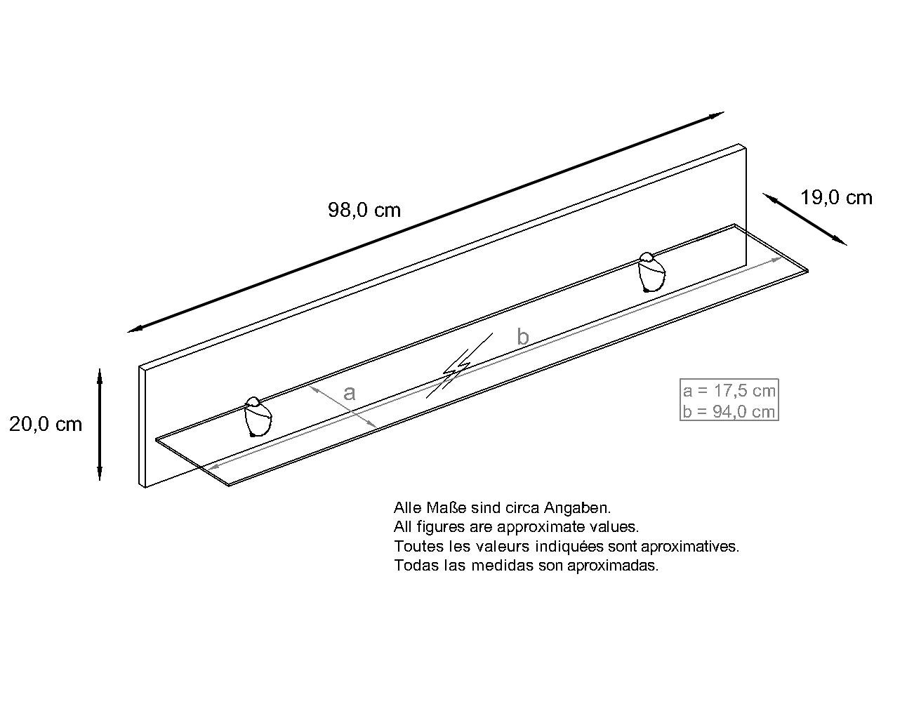 Die Maße des Regals betragen 98.0 x 20 x 19 cm (BxHxT). Das Bari Wandregal vereint modernes Design, praktische Stauraumfunktion und hochwertige Verarbeitung. Mit diesem Regal holen Sie sich ein stilvolles und funktionales Möbelstück nach Hause.