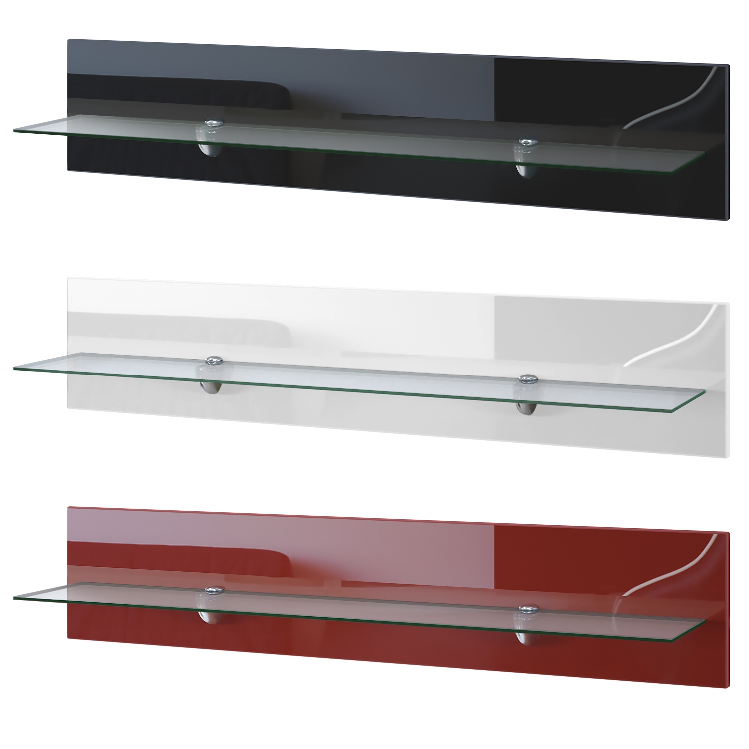 Produktinformationen "Wandregal Bari mit praktischer Glasablage Weiß Hochglanz (98 x 20 x 19 cm)"