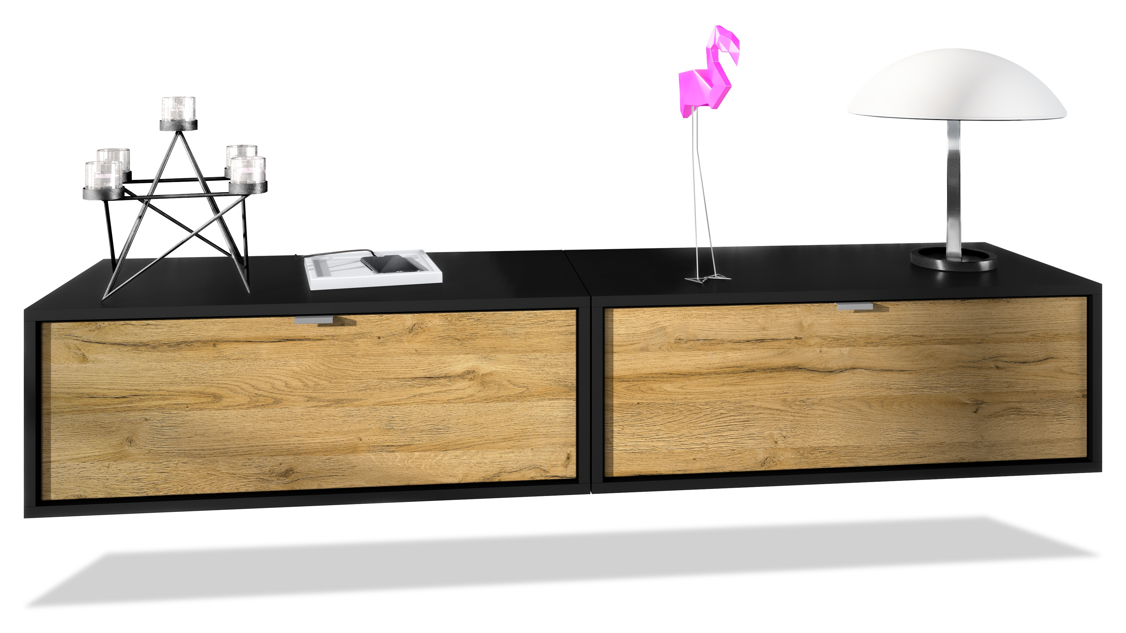 Lowboard Lana 800 2er-Set mit Klappe Schwarz matt/Eiche Natur (80 x 29 x 37 cm)