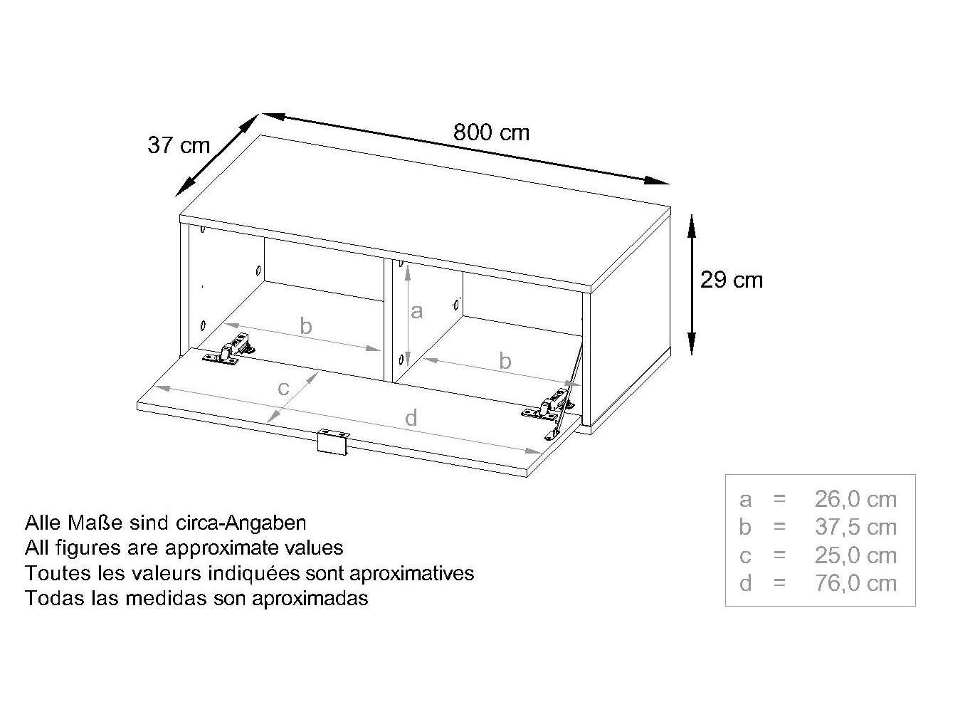 Maße eines einzelnen TV Boards (BxHxT): 80 x 29 x 37 cm