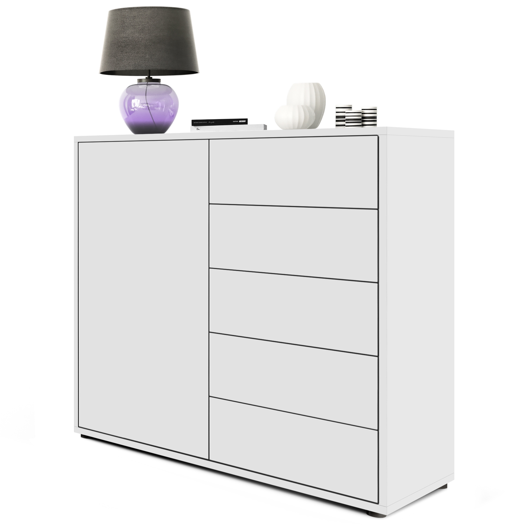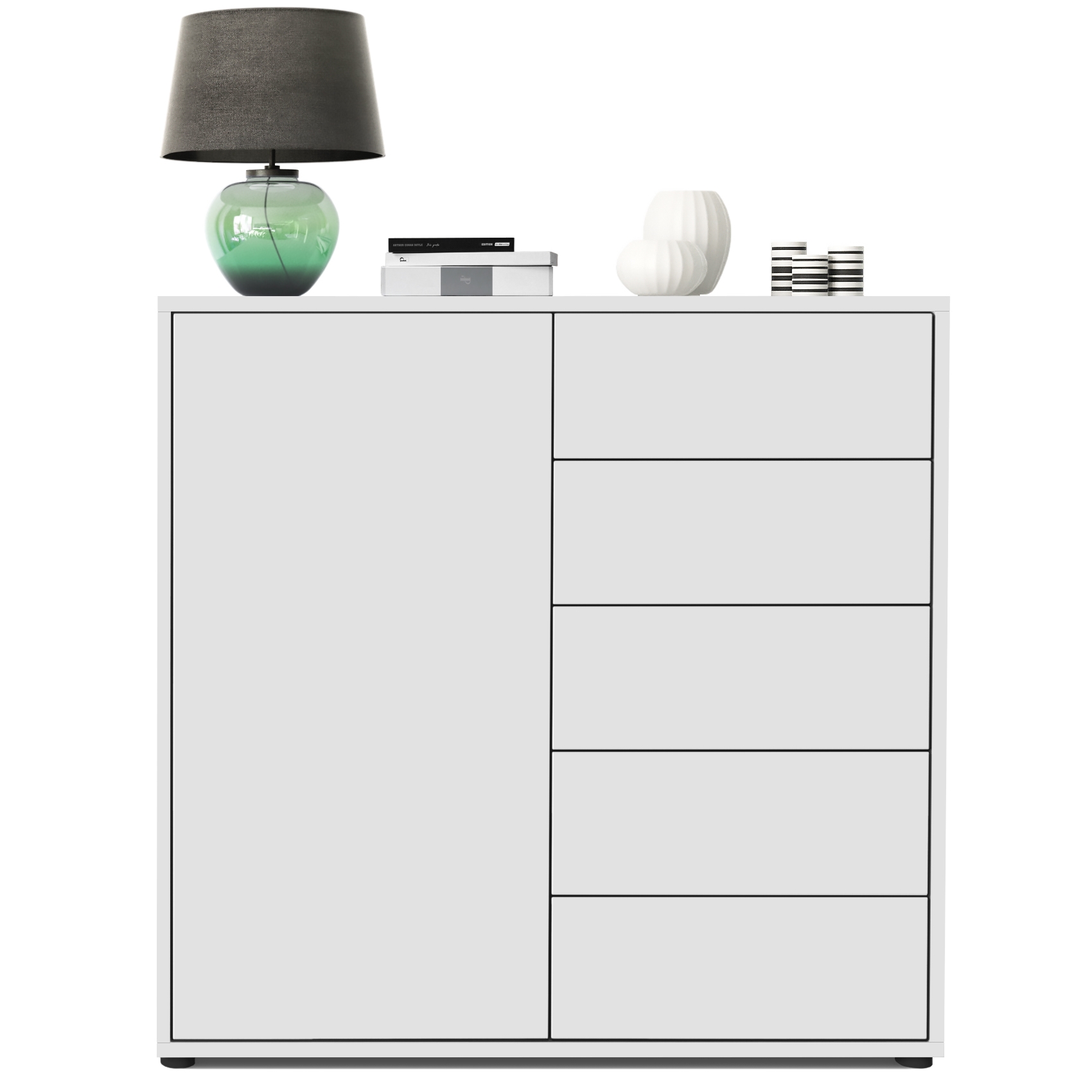 Produktinformationen "Kommode Ben V2 mit 1 Tür und 5 Schubladen Weiß matt/Weiß matt (79 x 74 x 36 cm)"