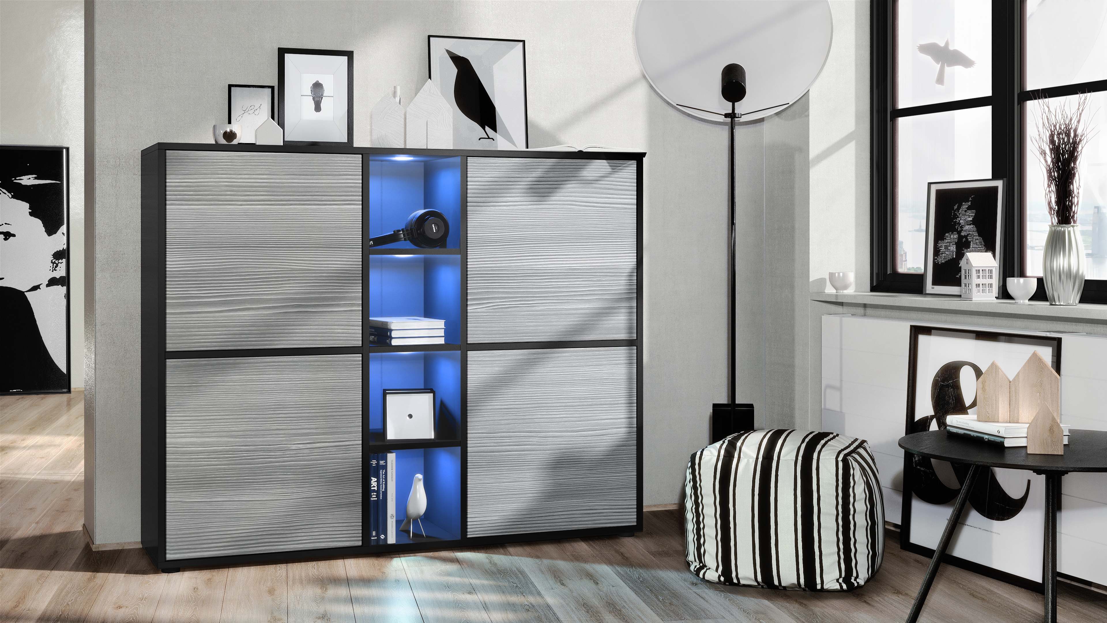 Vladon Möbel ist Ihr vertrauenswürdiger Partner für zeitlose Möbel, die Ihrem Zuhause eine persönliche Note verleihen. Unsere vielfältige Auswahl an Wohnzimmer-Sets und Highboards ermöglicht es Ihnen, Ihren Raum nach Ihren Wünschen zu gestalten. Egal, ob Sie einen modernen, minimalistischen Stil oder einen klassischen, zeitlosen Look bevorzugen – bei uns finden Sie die perfekte Lösung.