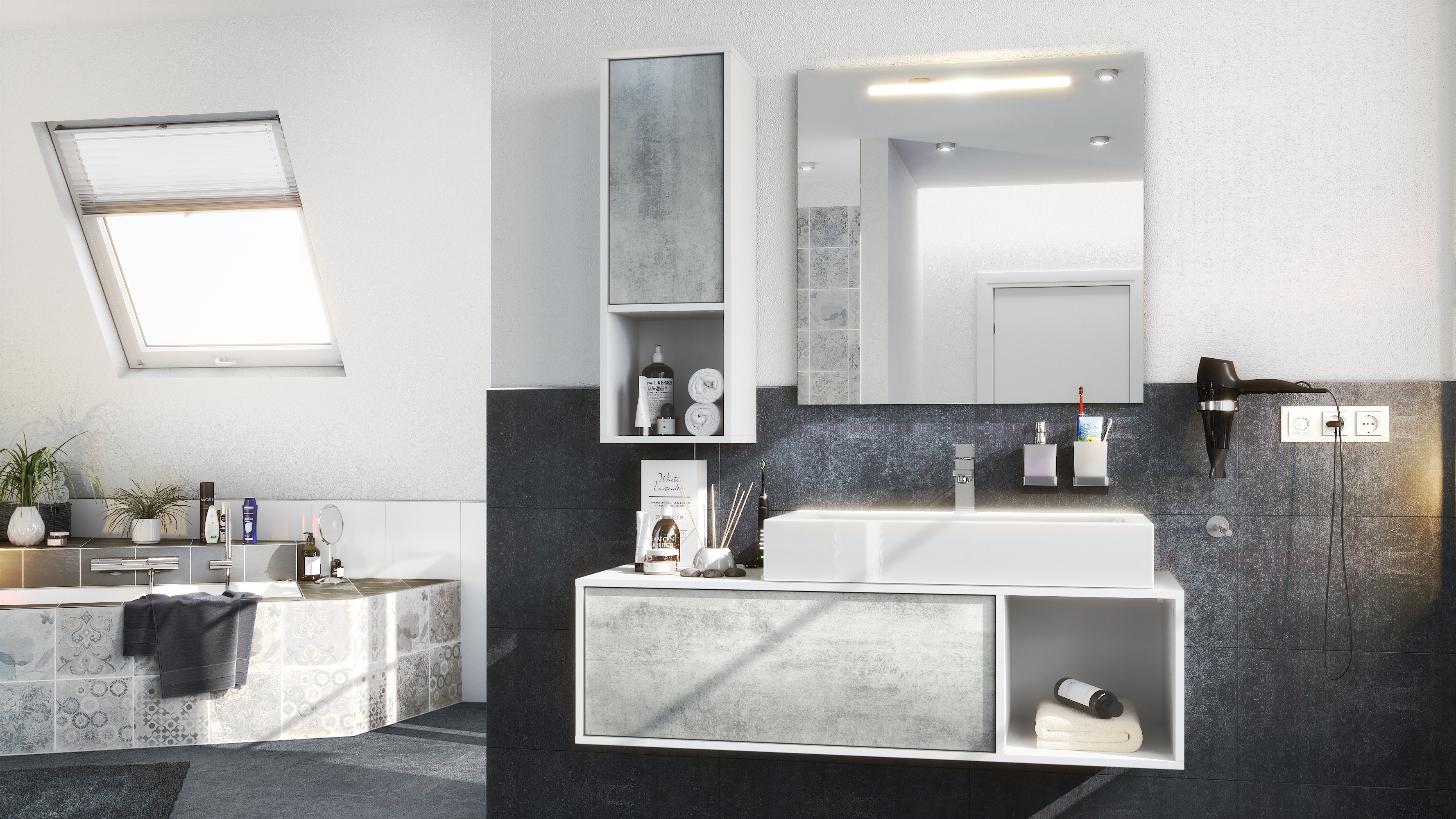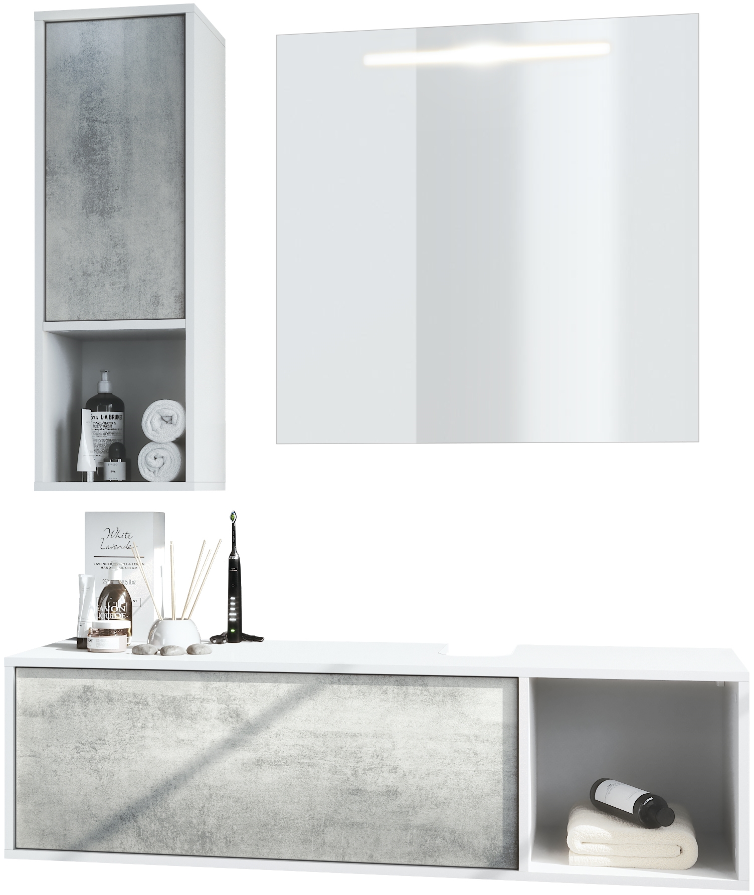 Produktinformationen "Badmöbel-Set La Costa 1 Unterschrank und 1 LED-Spiegel Korpus Weiß matt/Fronten Beton Oxid Optik (126,5 x 195 x 46 cm)"