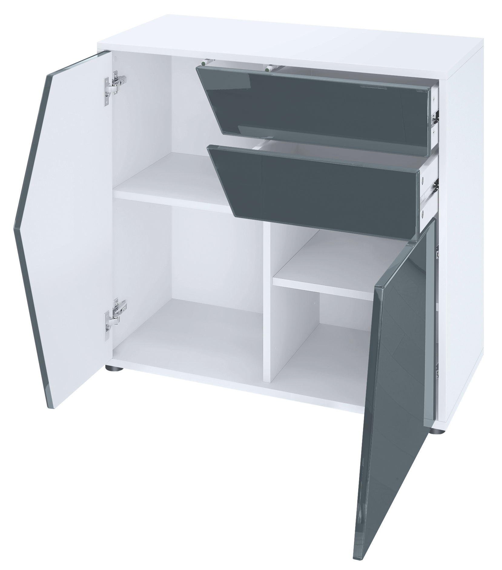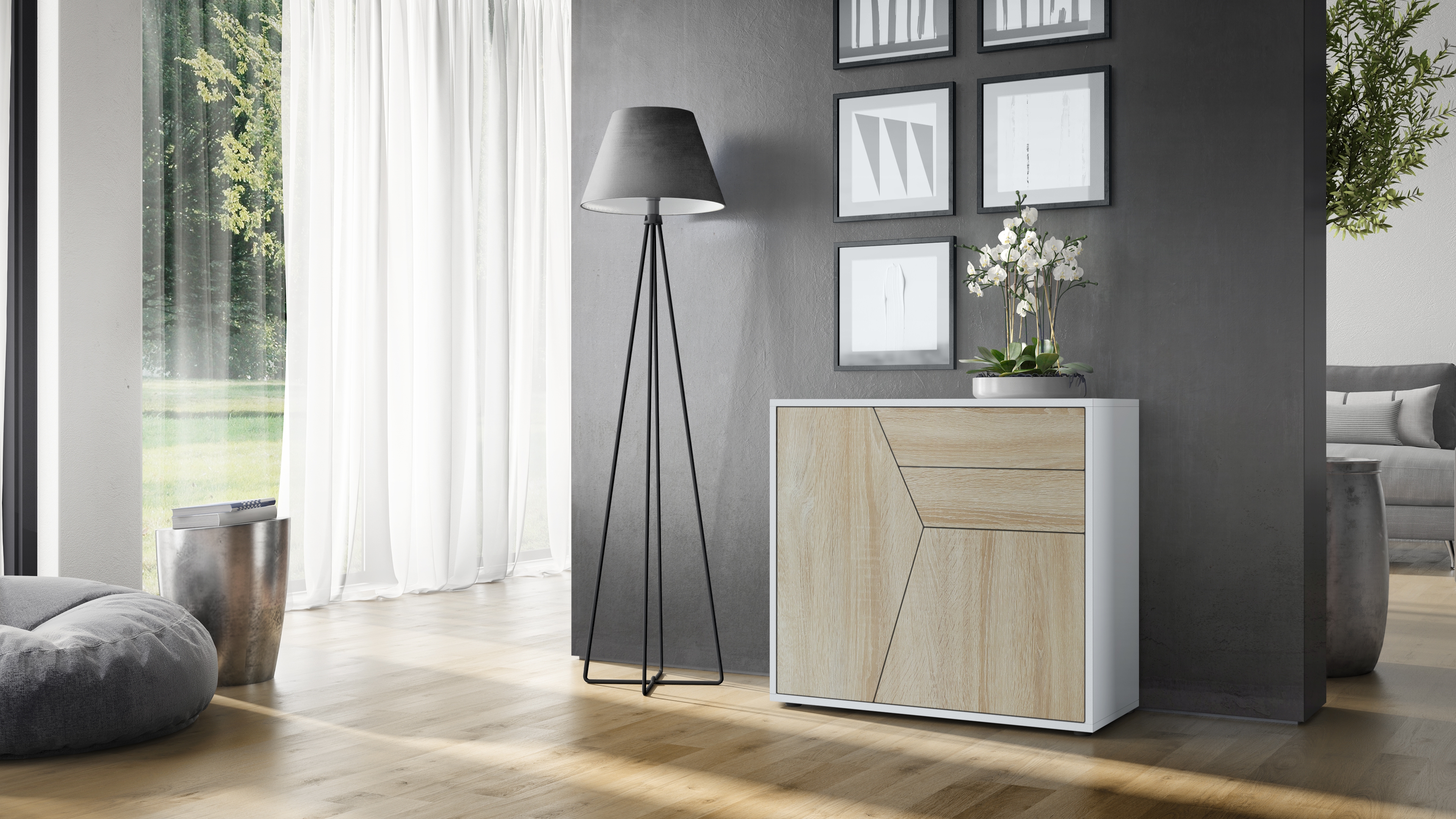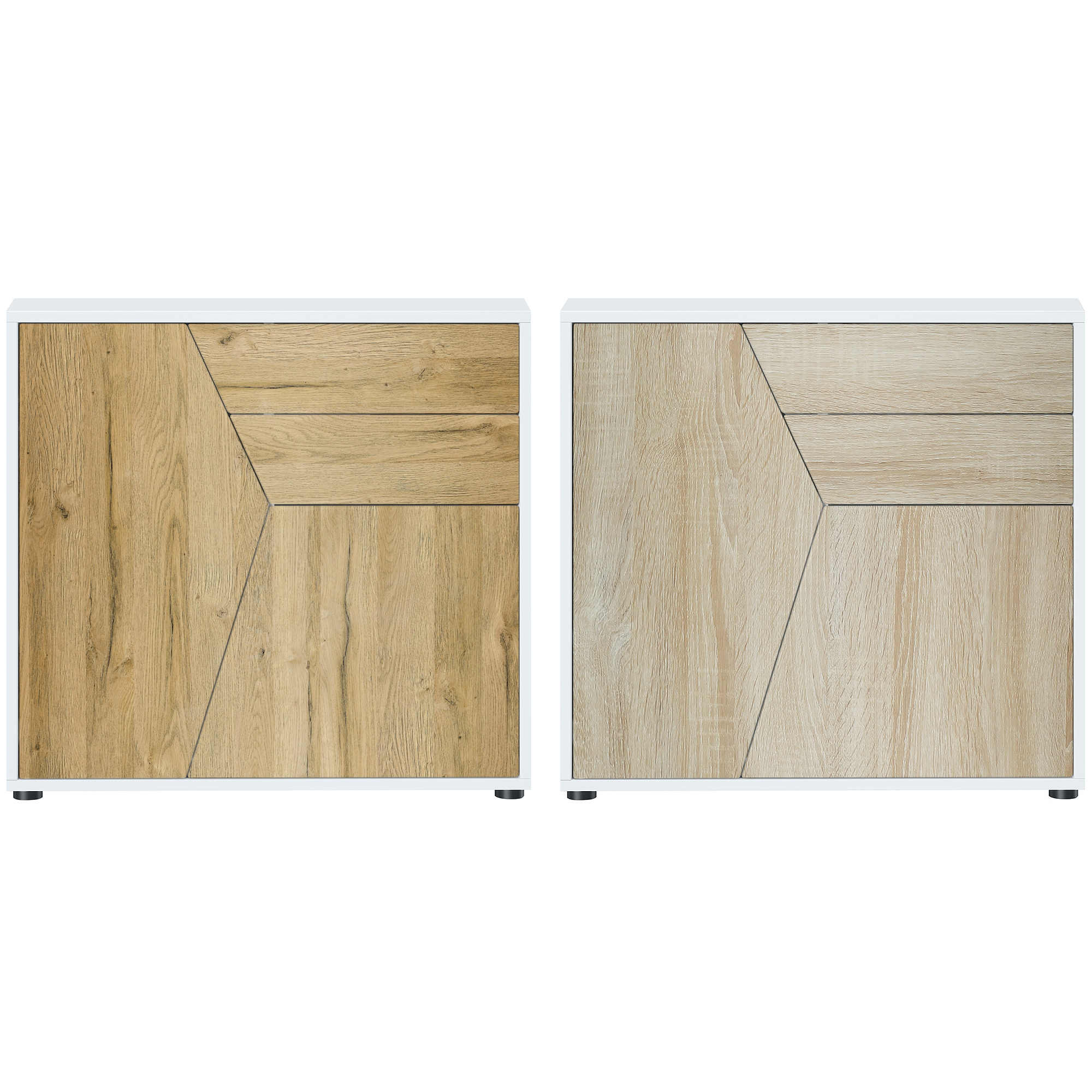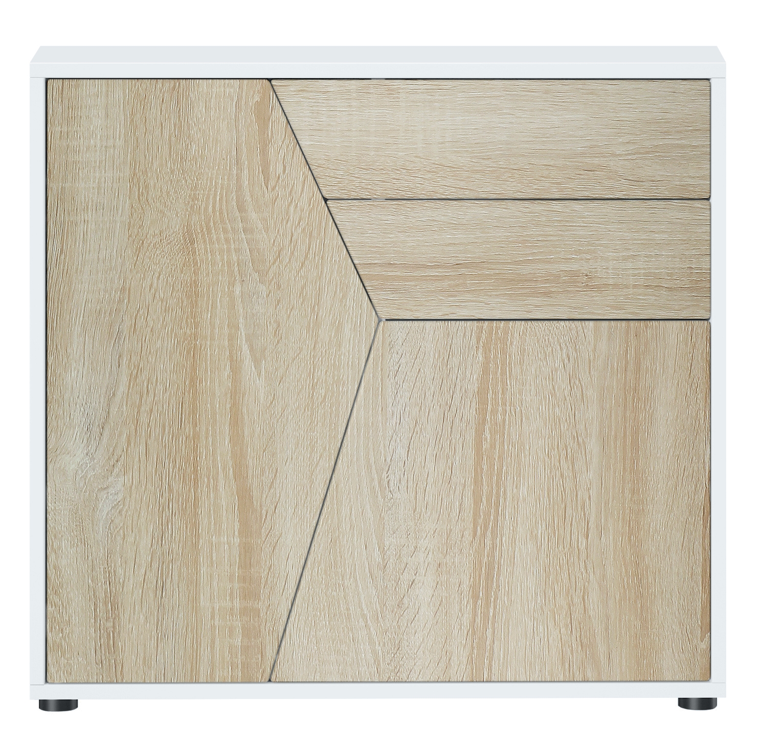 Produktinformationen "Benny Kommode mit 2 Türen und 2 Schubladen Weiß matt/Eiche sägerau (79 x 74 x 36 cm)"