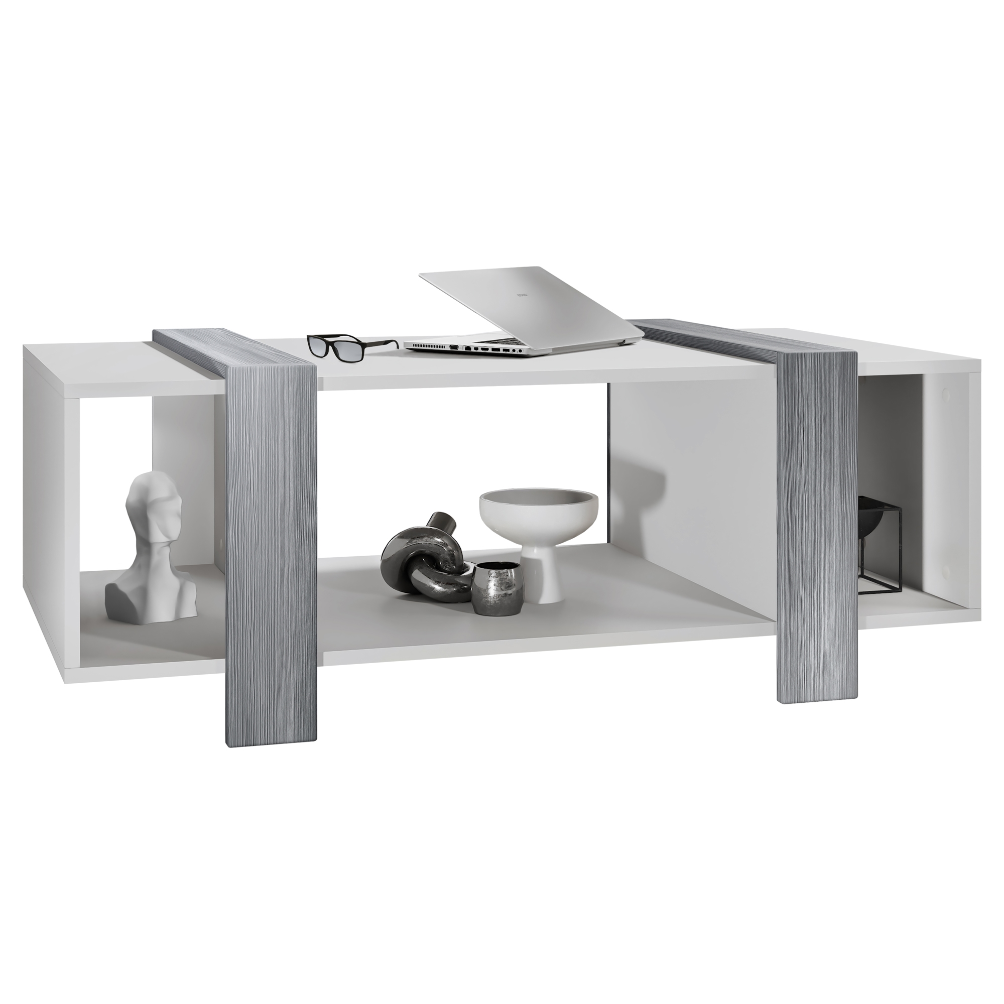 Produktinformationen "Couchtisch Ida mit drei Fächern Weiß matt/Avola-Anthrazit (110,5 x 42 x 56,5 cm)"