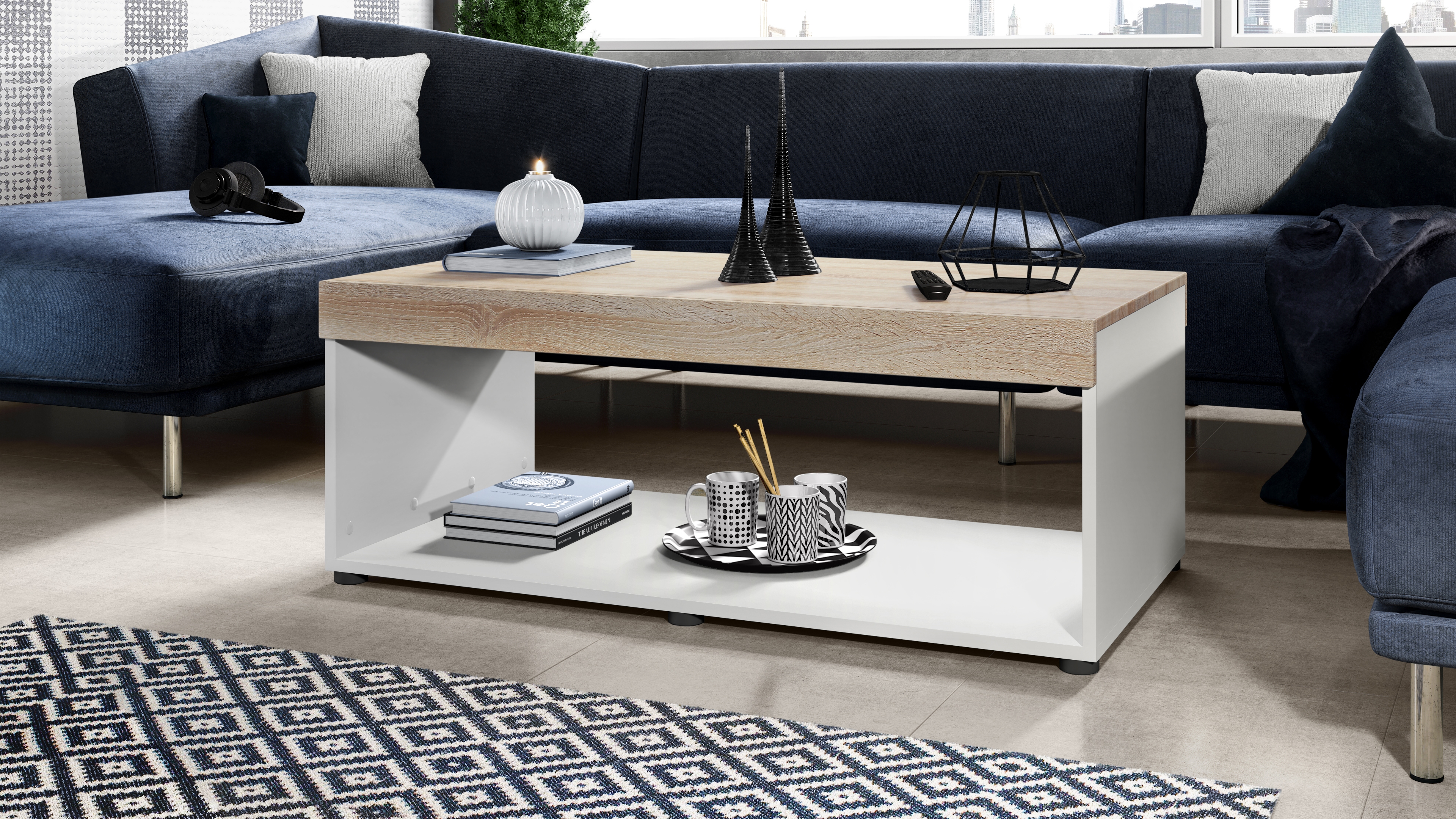 Durch das schlichte, moderne Design lässt sich der Beistelltisch mit vielen verschiedenen Einrichtungsstilen kombinieren und sowohl im Wohnzimmer, als auch in anderen Wohnräumen einsetzen. Für eine besondere Eleganz sorgen die Blenden und die Tischplatte des Sofatischs, erhältlich in vielen verschiedenen Farbvarianten, die Ihnen eine Vielzahl an Kombinationsmöglichkeiten bieten. Durch die Oberflächenbeschichtung erhalten Sie ein pflegeleichtes Produkt. Für die Reinigung können Sie auf Chemie verzichten - es reicht ein leicht angefeuchtetes Tuch, um die wasserfeste Oberflä;che angemessen zu reinigen. Achten Sie darauf, die Tischplatte keiner starken Hitze auszusetzen, da es zu Empfindlichkeiten der Oberfläche kommen kann.